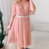 Prześliczna sukienka uszyta w rozmiarze plus size. Dekolt w serek zapinany na guziczki, umożliwiać będzie karmienie piersią. W talii znajduje się gumka. Dół sukienki uszyty jest na kole.