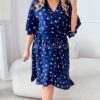 Sukienka jest odpowiedzią na wasze prośby uszycia krótszej wersji modelu Ewa. Góra jest kopią dłuższego modelu, posiada rozpinane guziki i elastyczną gumkę w talii a dół jest szyty na kole i ma dodatkowo wszyte falbany z materiału dzieki czemu Ewa mini nabrała lekkości i zwiewności. Rękawy sa zakończone gumka którą można wedle uznania podciągnąć wyżej. Materiał nadaje się do prania w pralce i suszenia w suszarce oraz nie gniecie się. Jesli guziki w sukience rozchodzą się – spróbuj owinąć gumkę dwukrotnie wokół guzika – pozwoli to zachować je na miejscu 🙂