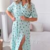 Sukienka jest odpowiedzią na wasze prośby uszycia krótszej wersji modelu Ewa. Góra jest kopią dłuższego modelu, posiada rozpinane guziki i elastyczną gumkę w talii a dół jest szyty na kole i ma dodatkowo wszyte falbany z materiału dzieki czemu Ewa mini nabrała lekkości i zwiewności. Rękawy sa zakończone gumka którą można wedle uznania podciągnąć wyżej. Materiał nadaje się do prania w pralce i suszenia w suszarce oraz nie gniecie się. Jesli guziki w sukience rozchodzą się – spróbuj owinąć gumkę dwukrotnie wokół guzika – pozwoli to zachować je na miejscu 🙂