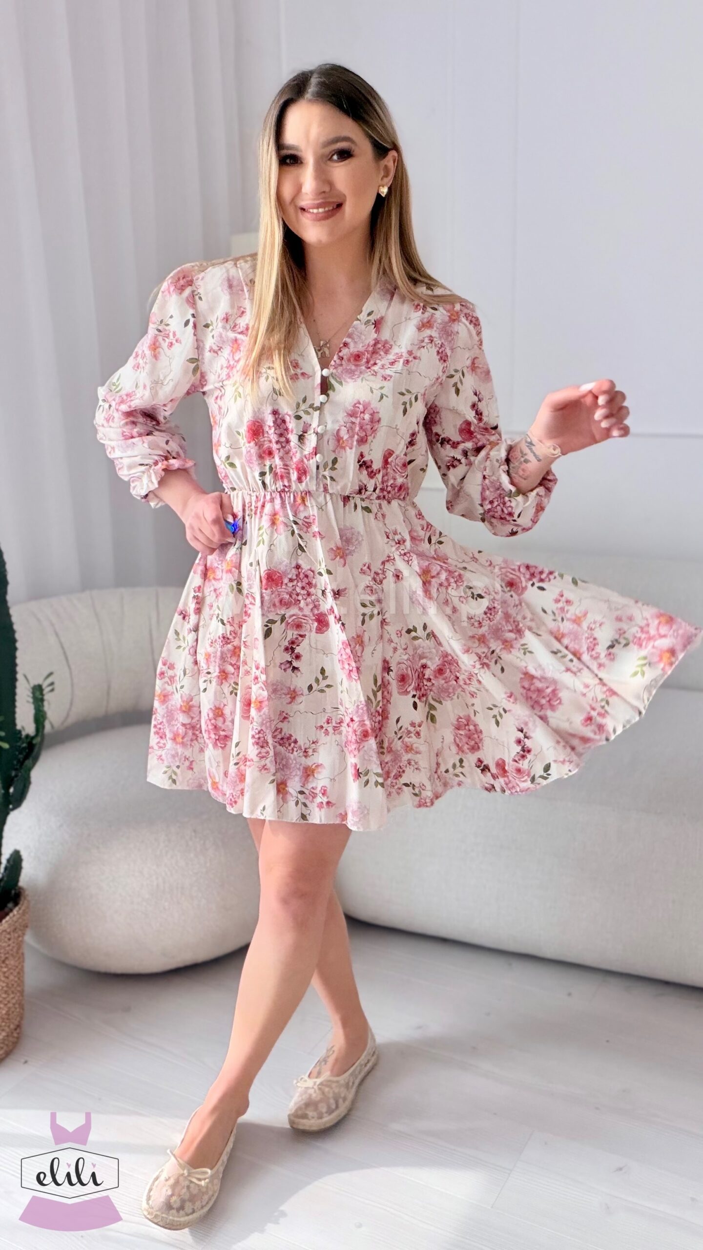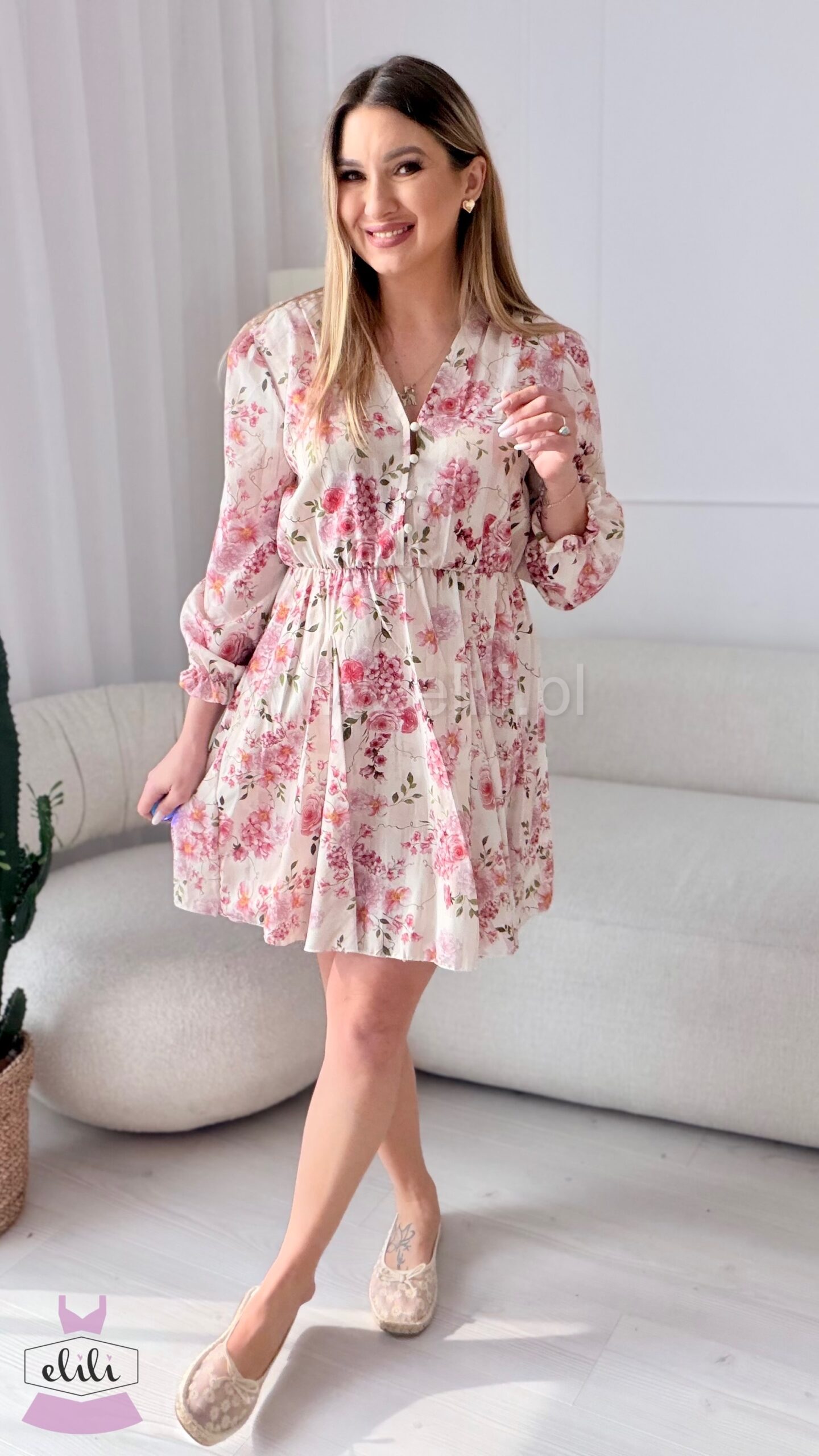 Sukienka jest odpowiedzią na wasze prośby uszycia krótszej wersji modelu Ewa. Góra jest kopią dłuższego modelu, posiada rozpinane guziki i elastyczną gumkę w talii a dół jest szyty na kole i ma dodatkowo wszyte falbany z materiału dzieki czemu Ewa mini nabrała lekkości i zwiewności. Rękawy sa zakończone gumka którą można wedle uznania podciągnąć wyżej. Materiał nadaje się do prania w pralce i suszenia w suszarce oraz nie gniecie się. Jesli guziki w sukience rozchodzą się – spróbuj owinąć gumkę dwukrotnie wokół guzika – pozwoli to zachować je na miejscu 🙂