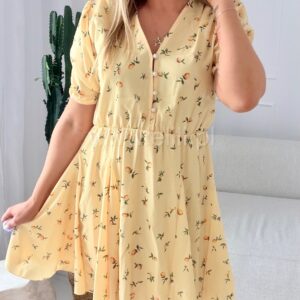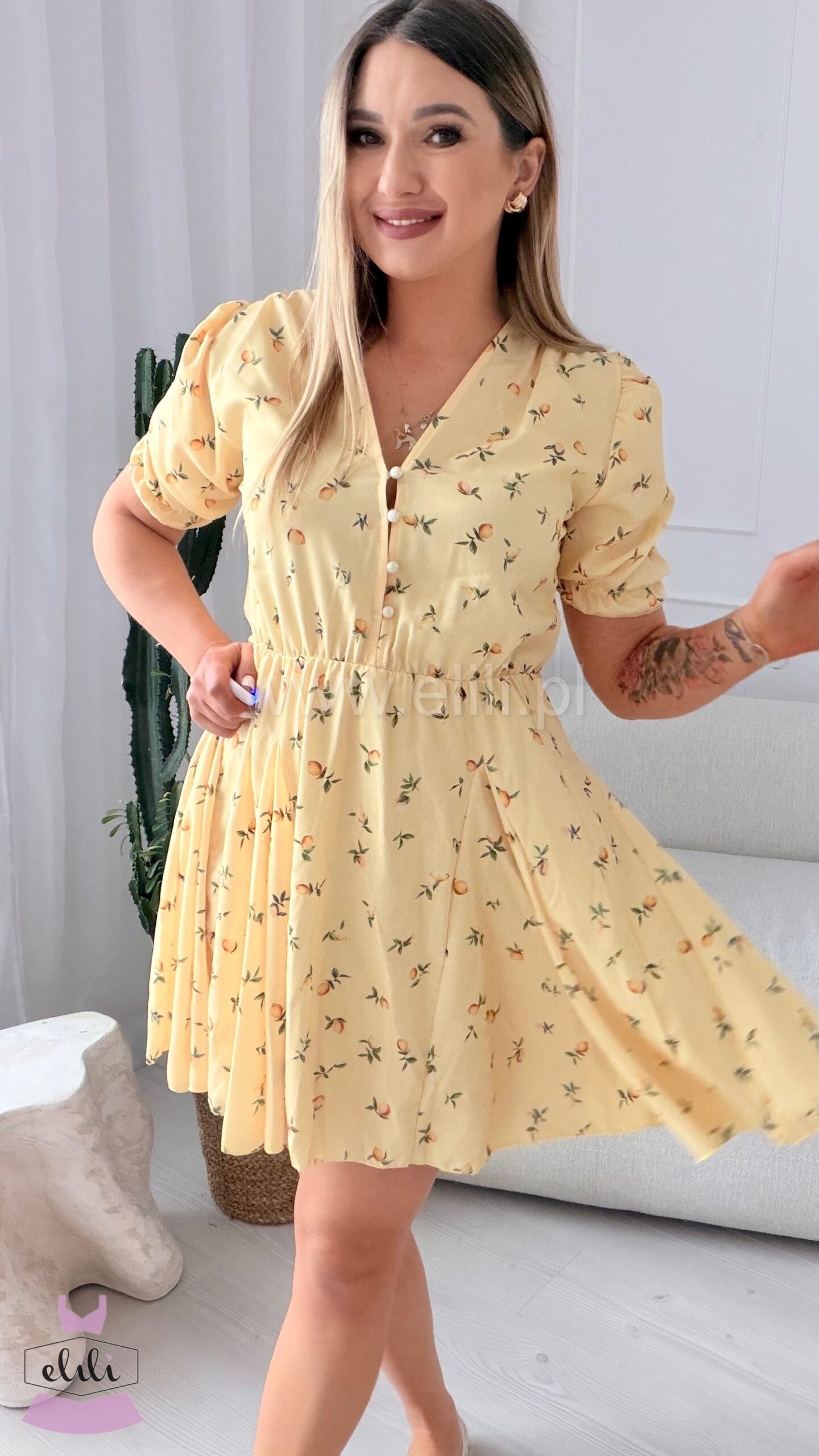 Sukienka jest odpowiedzią na wasze prośby uszycia krótszej wersji modelu Ewa. Góra jest kopią dłuższego modelu, posiada rozpinane guziki i elastyczną gumkę w talii a dół jest szyty na kole i ma dodatkowo wszyte falbany z materiału dzieki czemu Ewa mini nabrała lekkości i zwiewności. Rękawy sa zakończone gumka którą można wedle uznania podciągnąć wyżej. Materiał nadaje się do prania w pralce i suszenia w suszarce oraz nie gniecie się. Jesli guziki w sukience rozchodzą się – spróbuj owinąć gumkę dwukrotnie wokół guzika – pozwoli to zachować je na miejscu 🙂