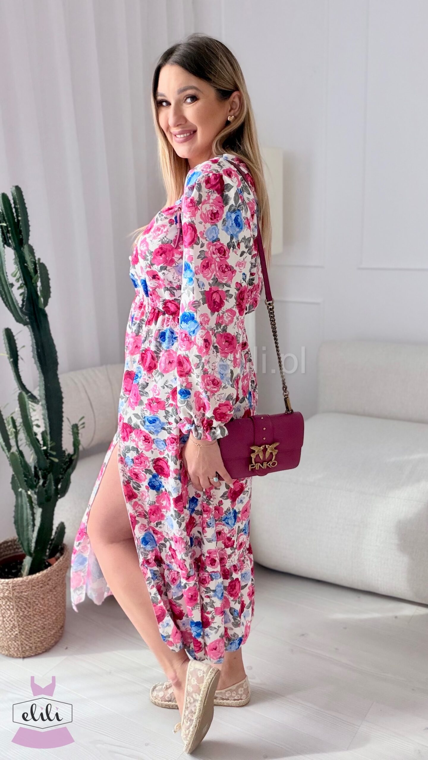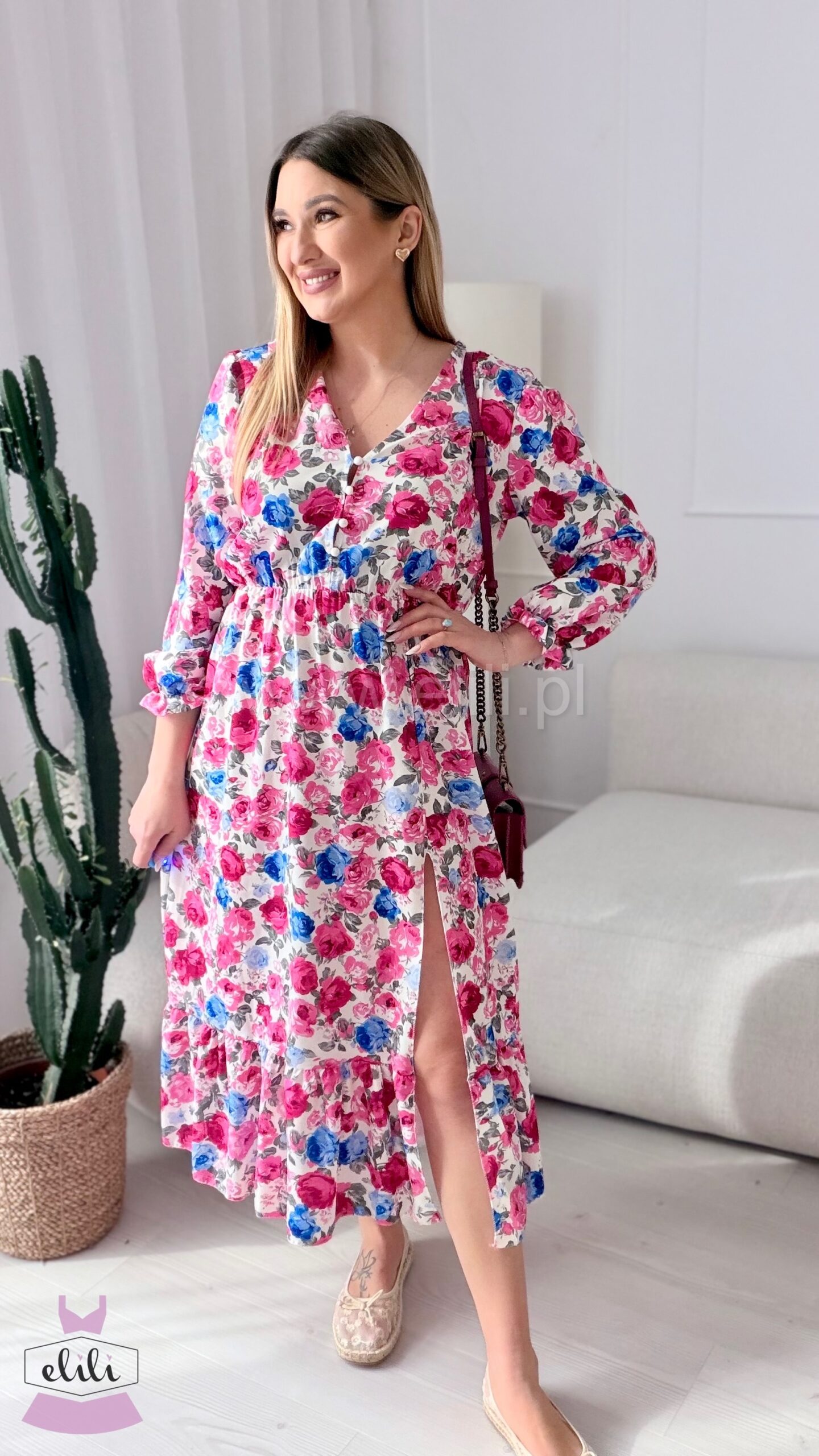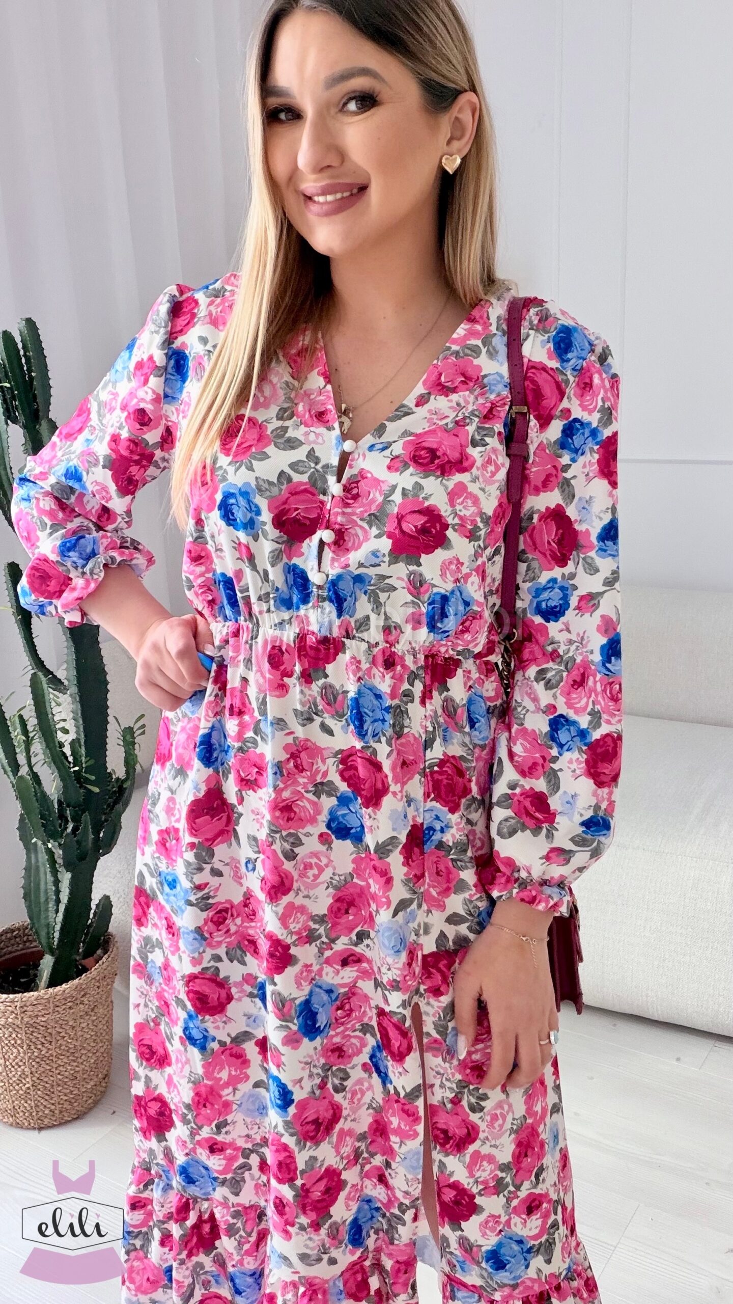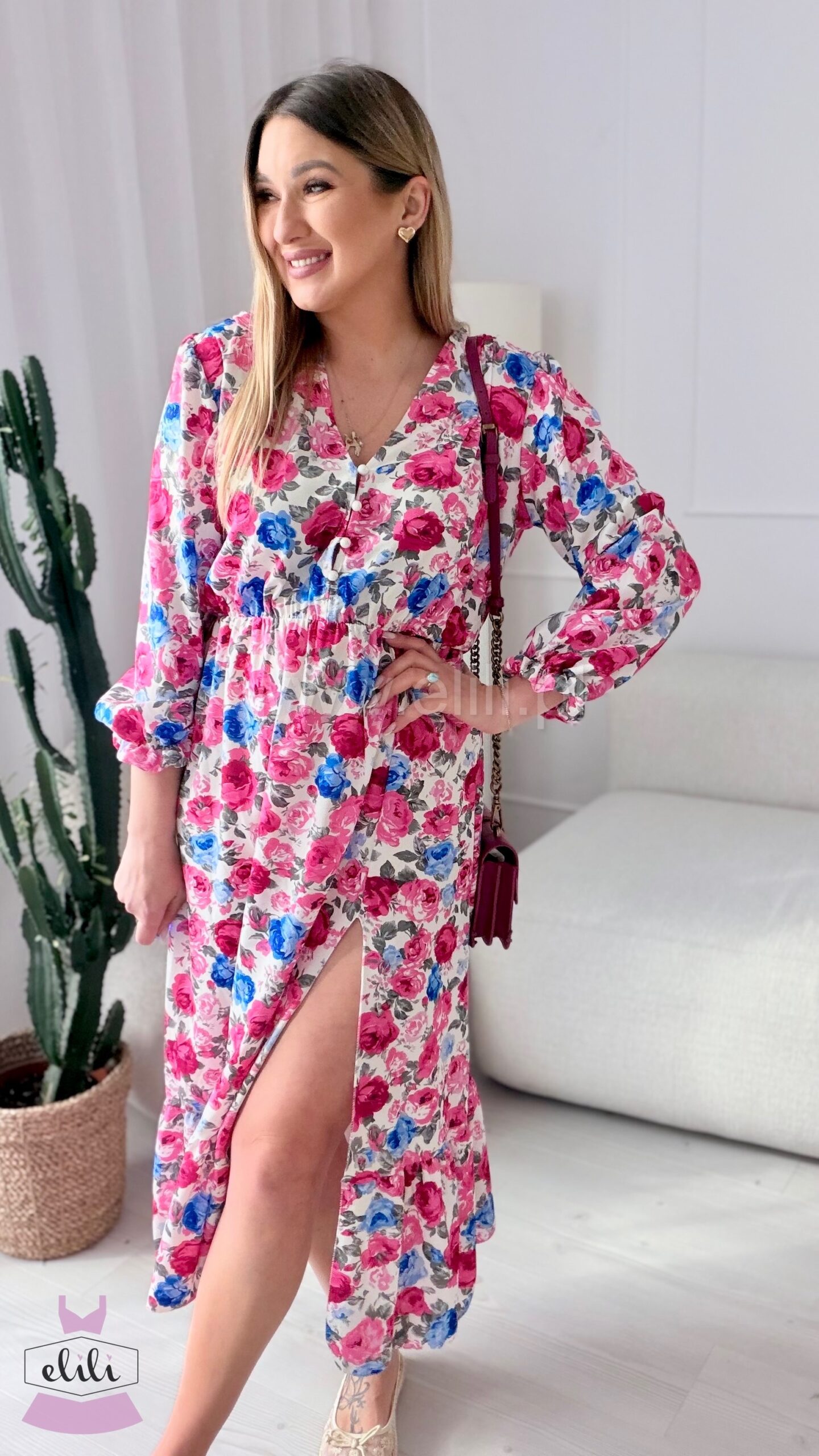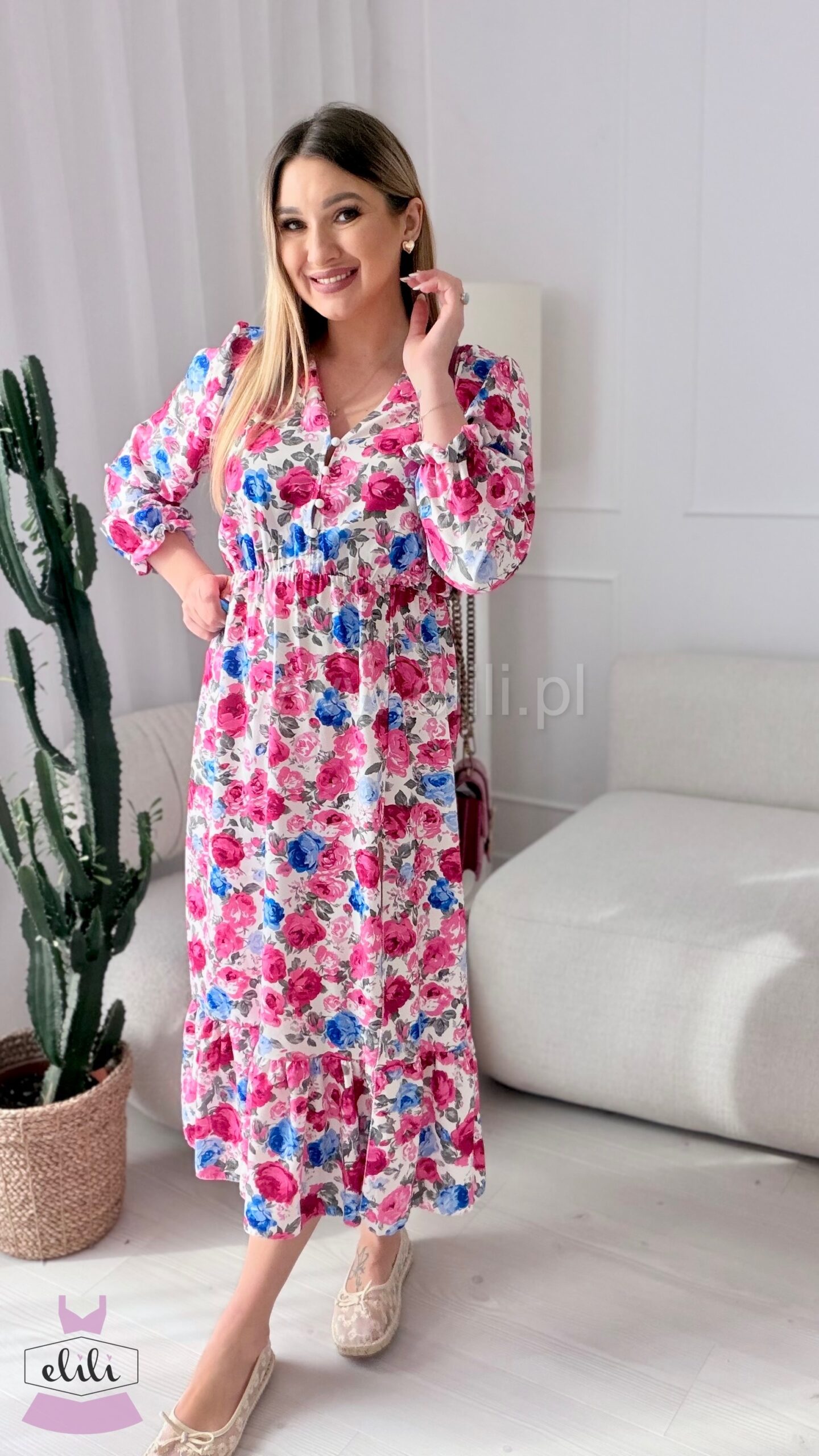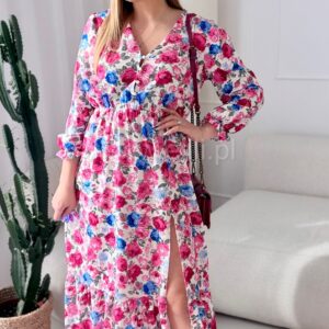 Sukienka Ewa niebiesko-czerwone kwiaty