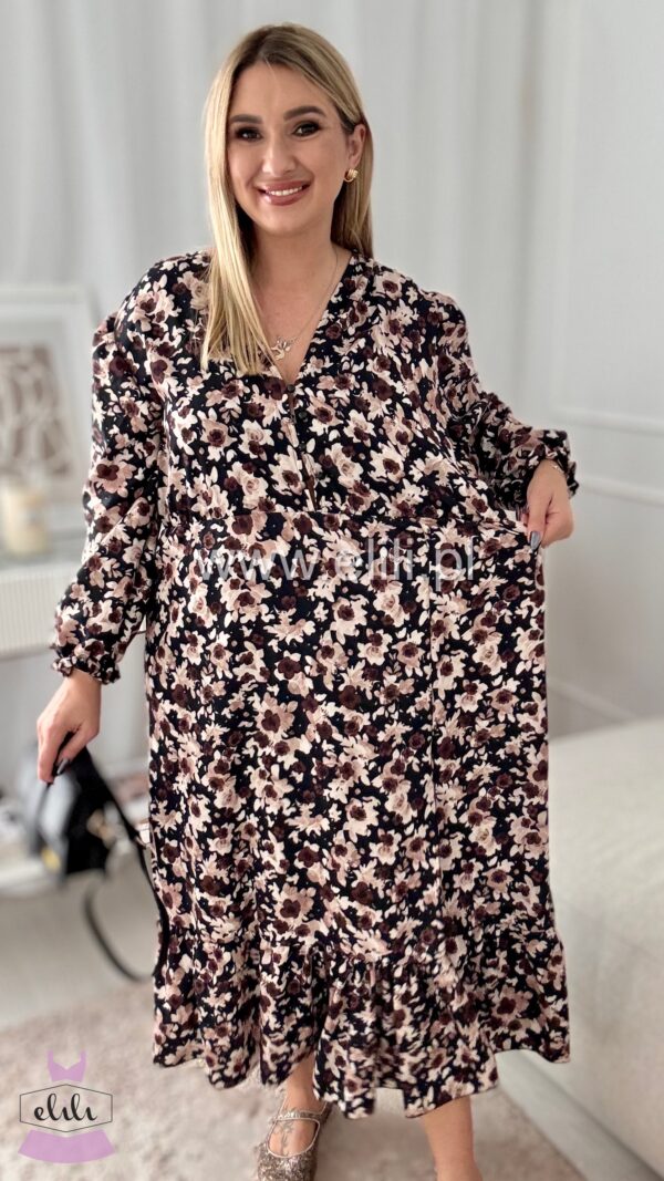 Sukienka Ewa plus size czarne kwiaty