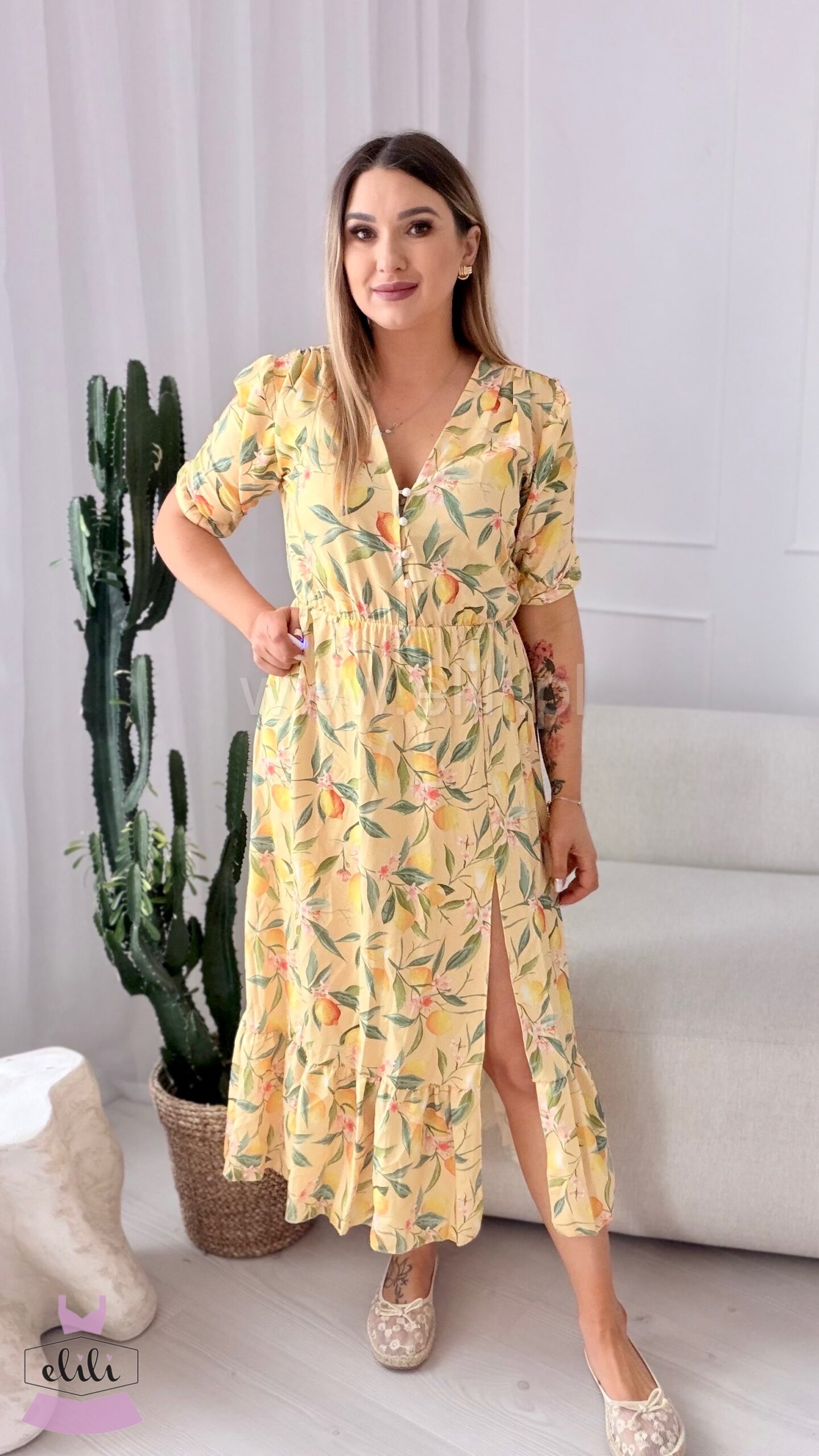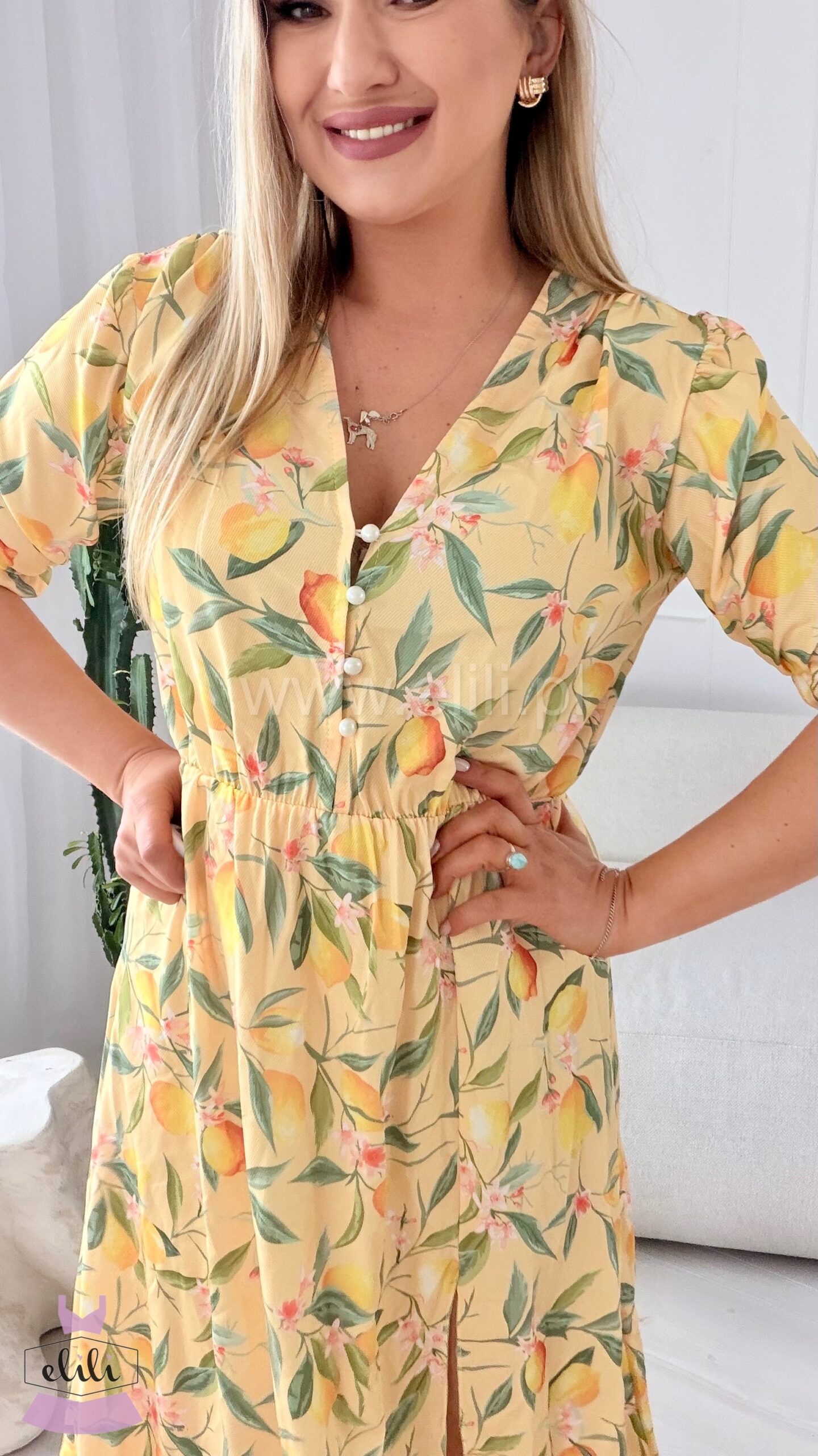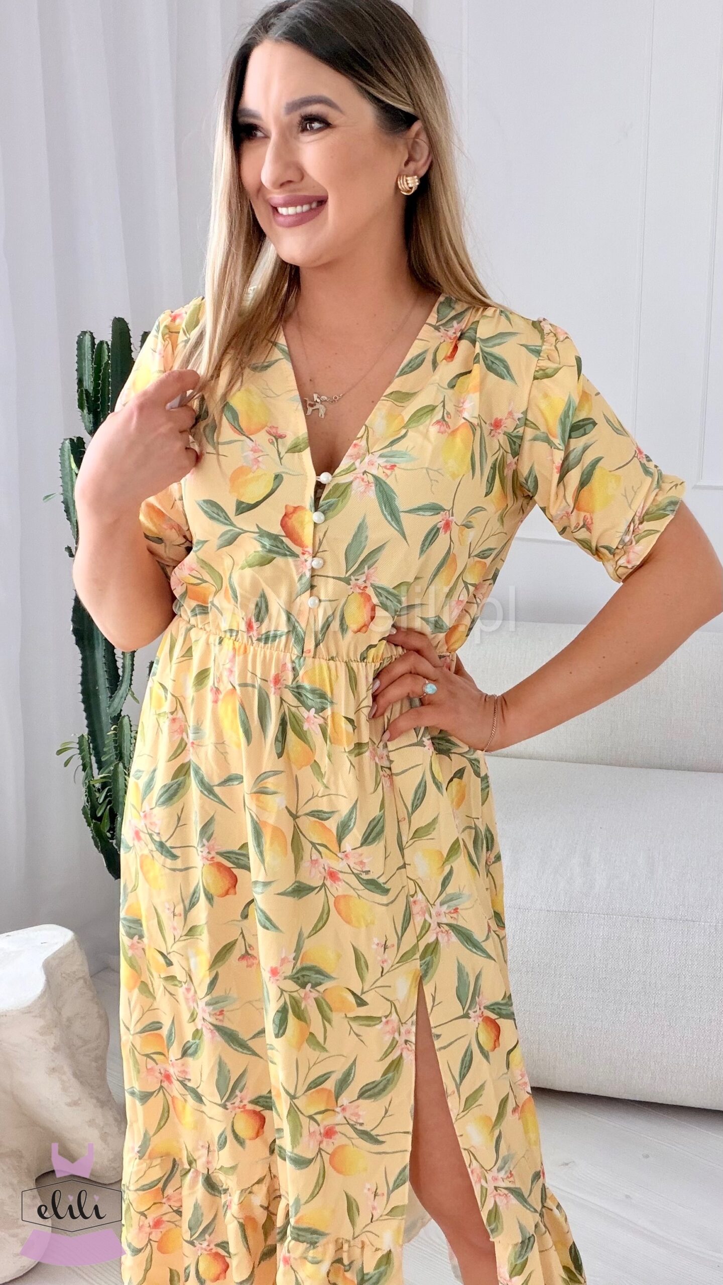 Wersja midi z rozpinanymi guzikami pozwala dopasować dekolt tak, jak lubisz.