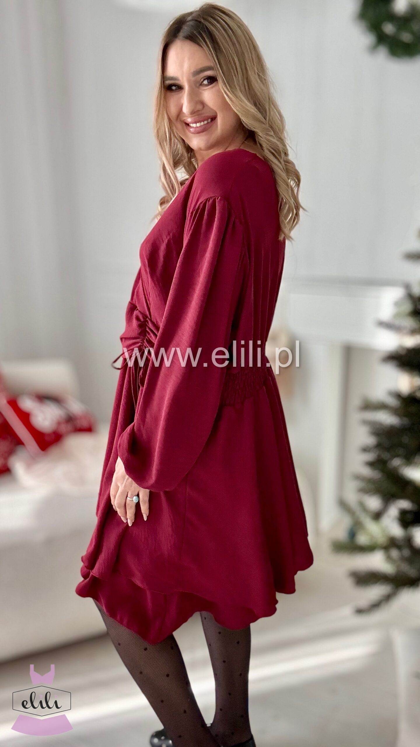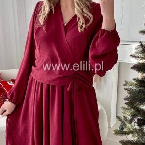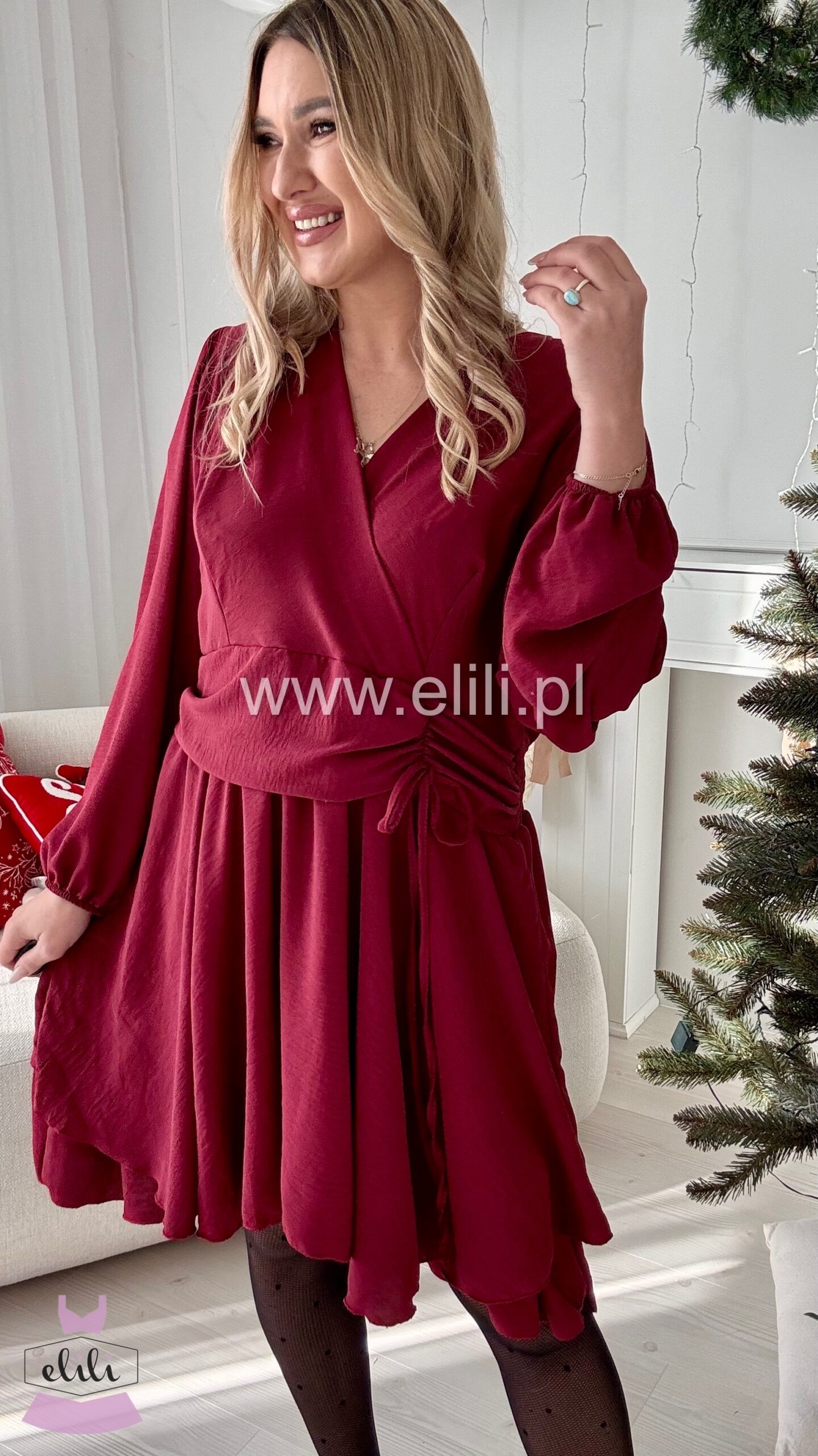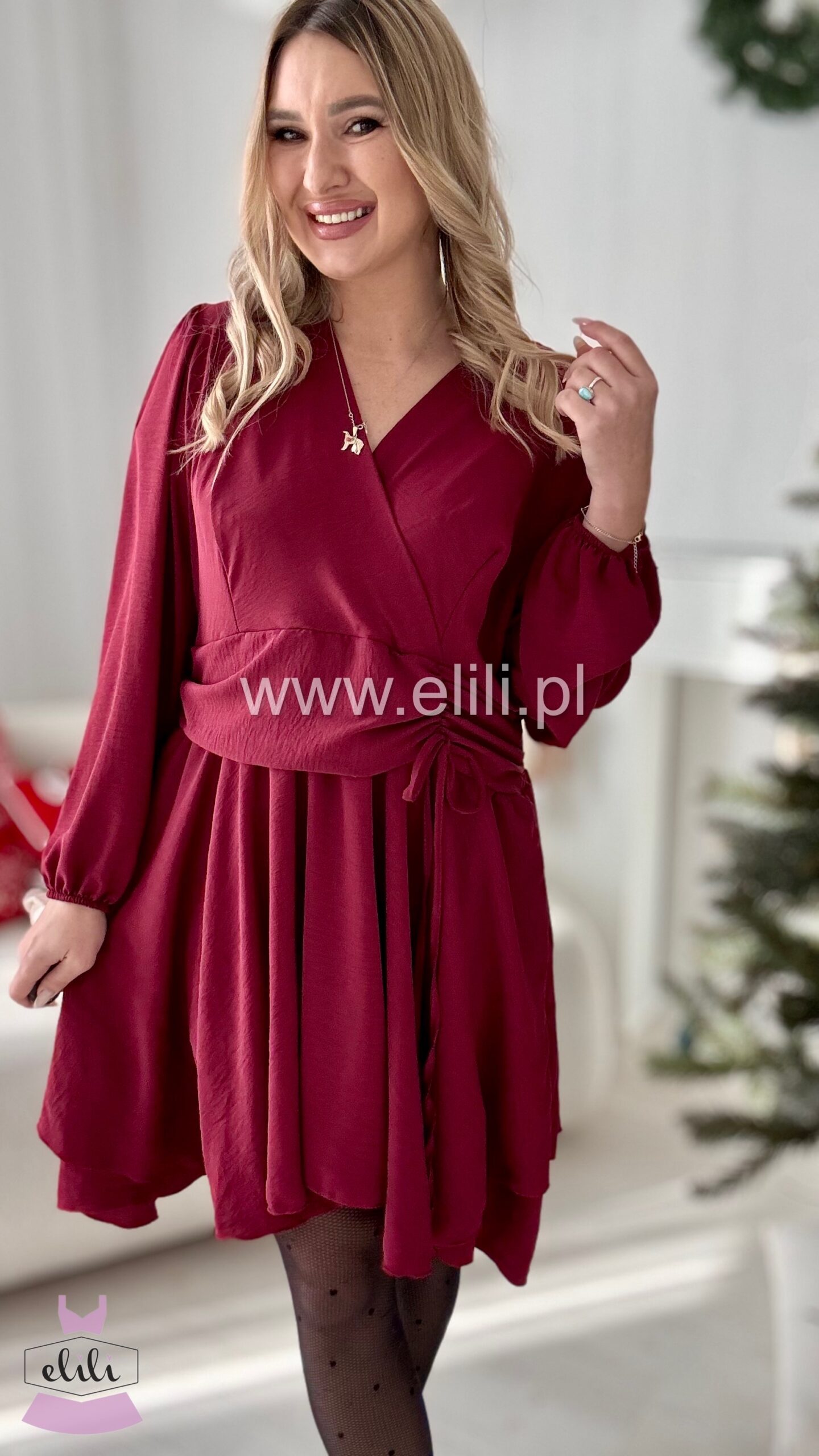 Gładka sukienka plus size to połączenie elegancji i kobiecego wdzięku, stworzone z myślą o komforcie i podkreśleniu atutów sylwetki. Kopertowy dekolt pięknie eksponuje biust i wysmukla szyję, nadając całości subtelnego charakteru. Talia jest wyraźnie zaakcentowana, co doskonale modeluje figurę i podkreśla kobiece kształty. Szerokie rękawy dodają sukience lekkości i swobody, a falbankowy dół szyty na kole zapewnia zwiewność i efektowne wykończenie. To doskonały wybór na eleganckie przyjęcia, rodzinne spotkania czy romantyczne wyjścia, gwarantujący nie tylko stylowy wygląd, ale i wygodę noszenia.