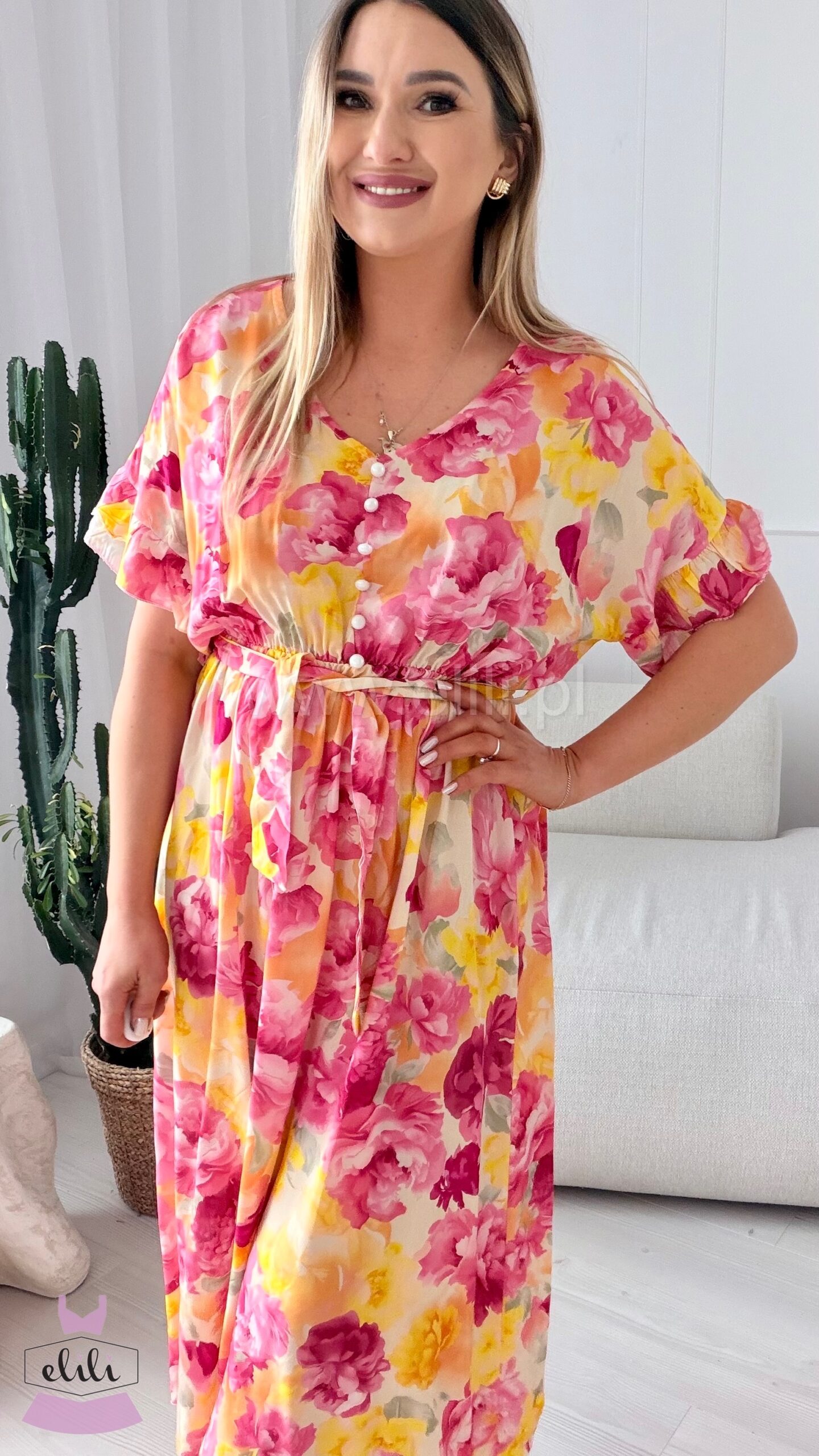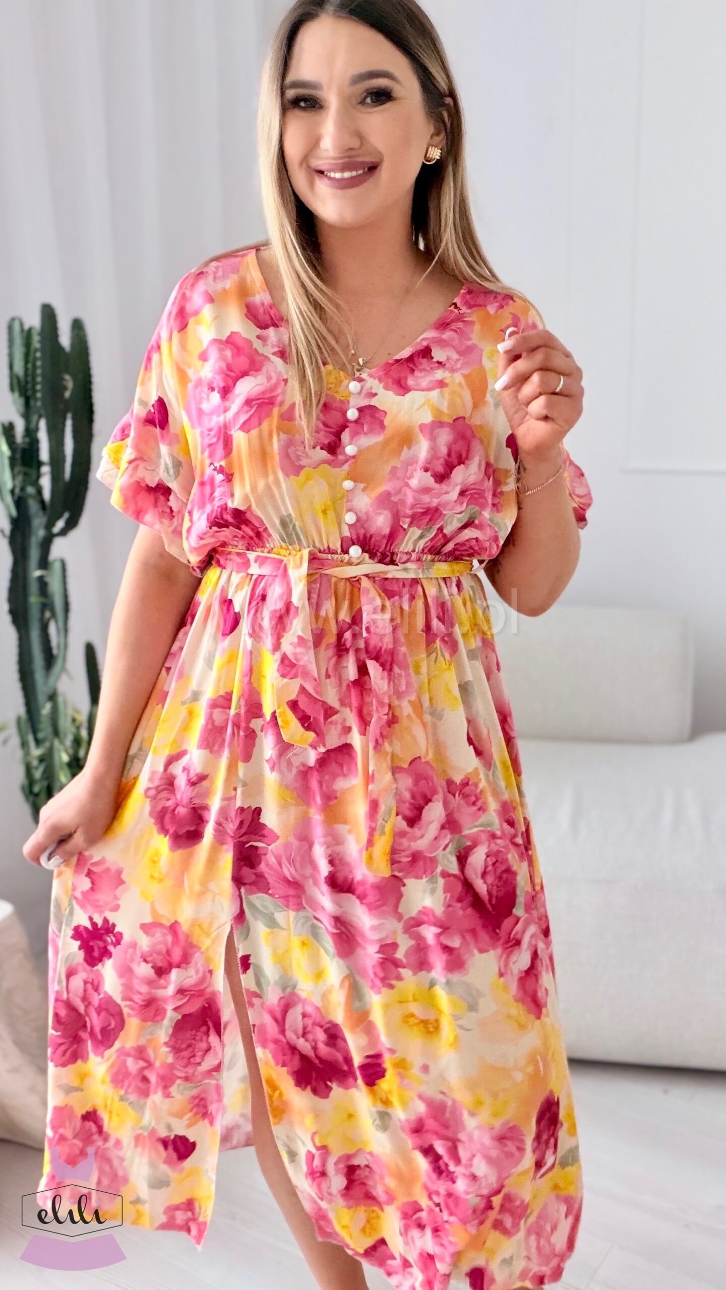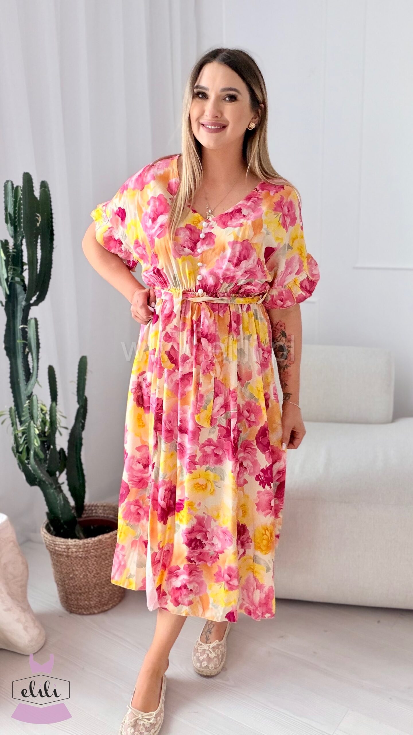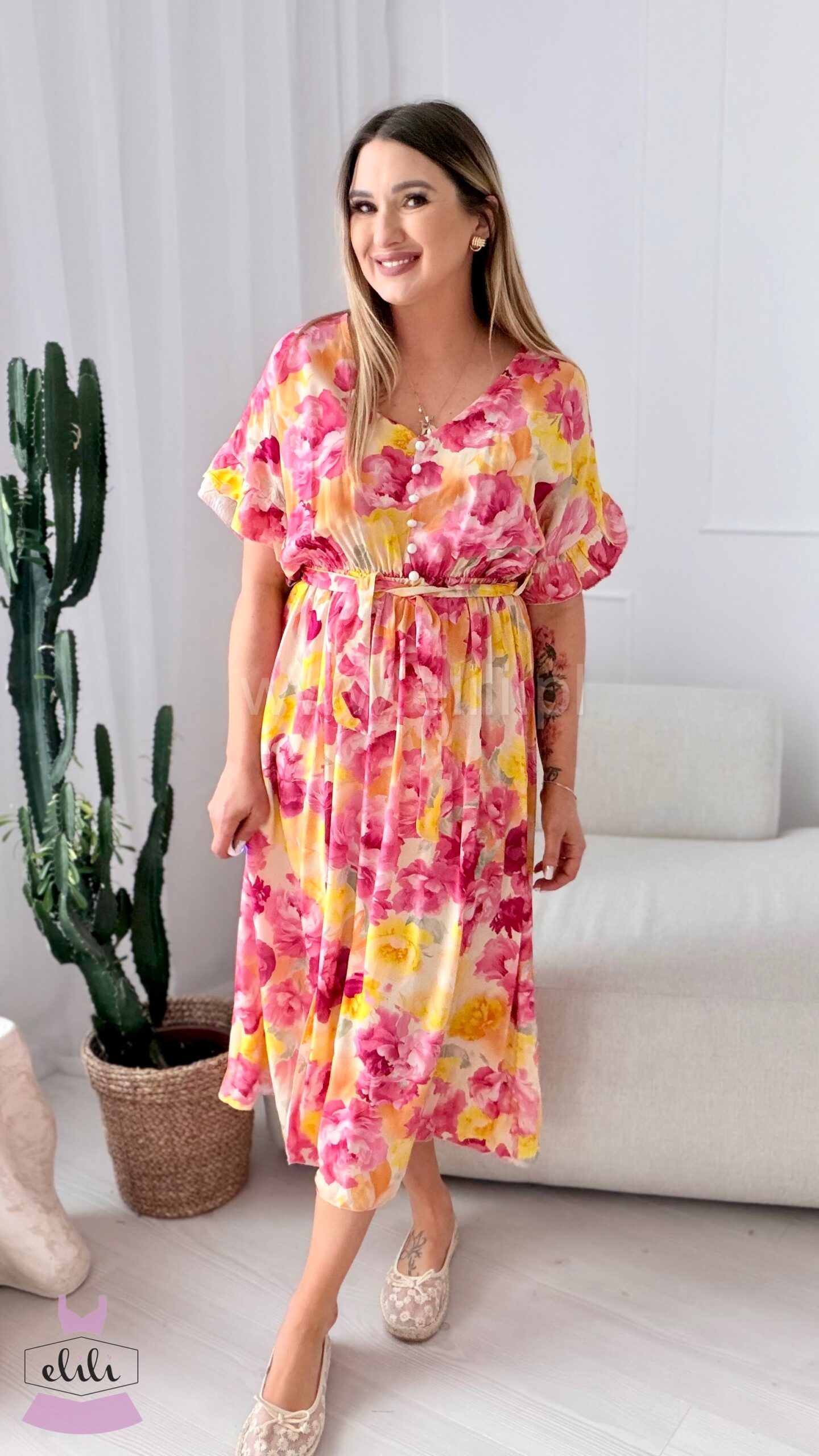 Sukienka Juli to wyjątkowo kobiecy model midi, który łączy komfort noszenia z subtelną elegancją. Wykonana z przewiewnej, przyjemnej w dotyku wiskozy, doskonale sprawdzi się zarówno na co dzień, jak i na bardziej wyjątkowe okazje.