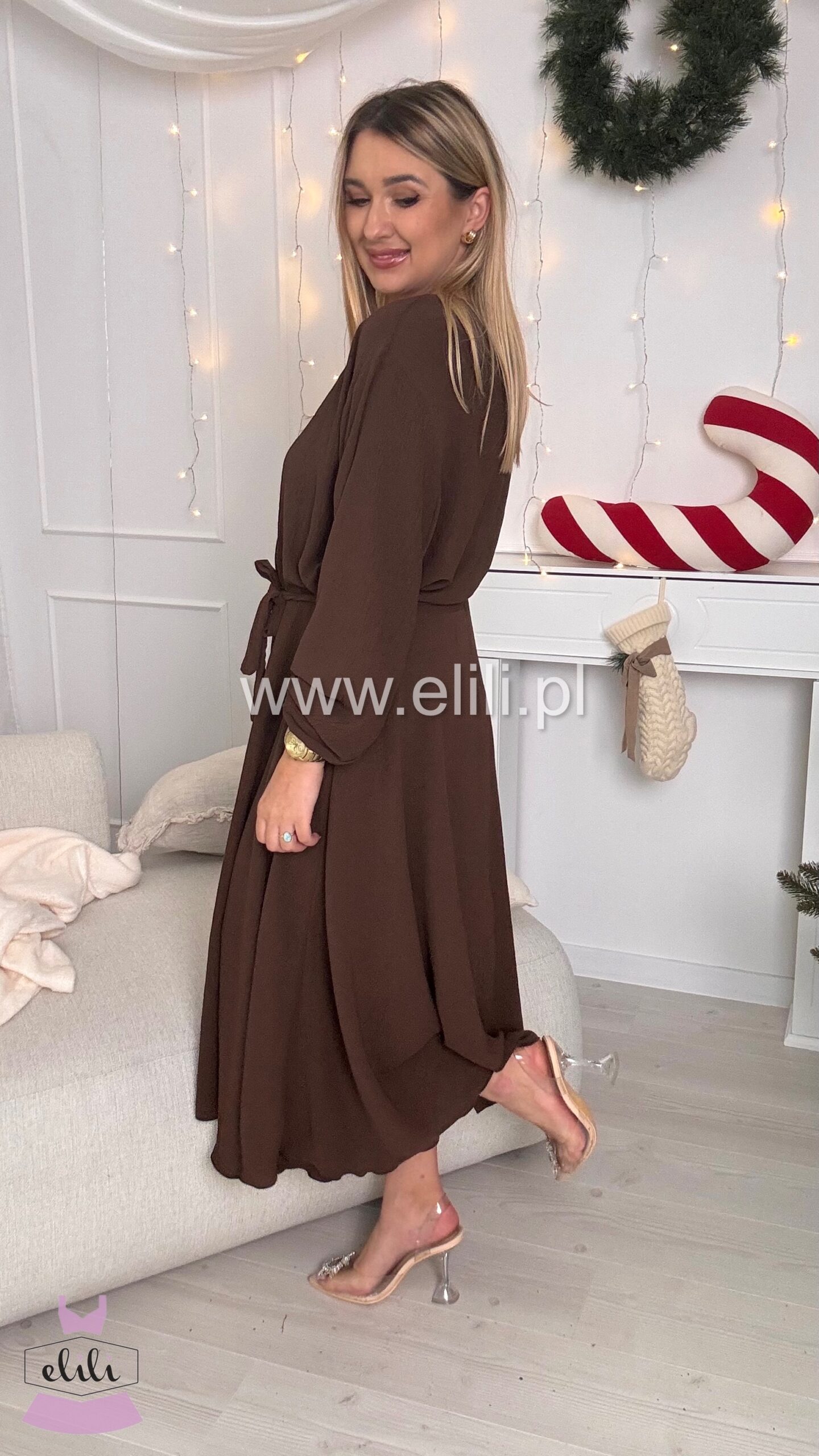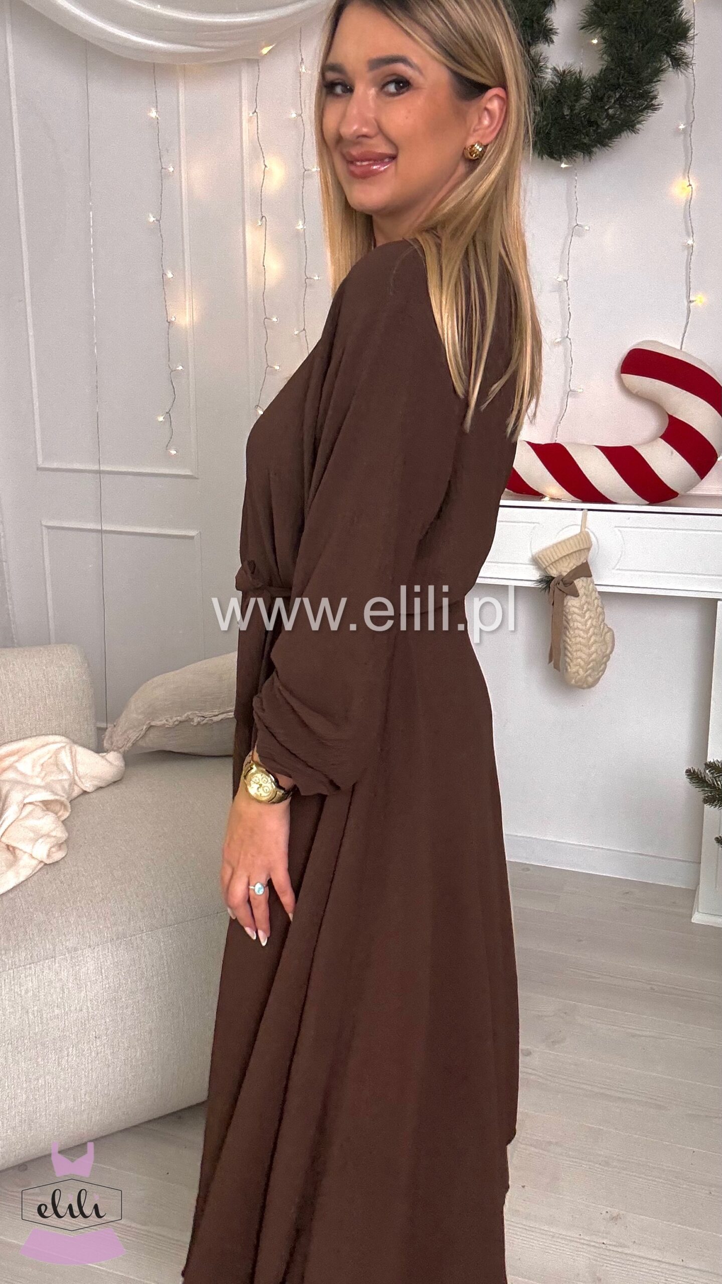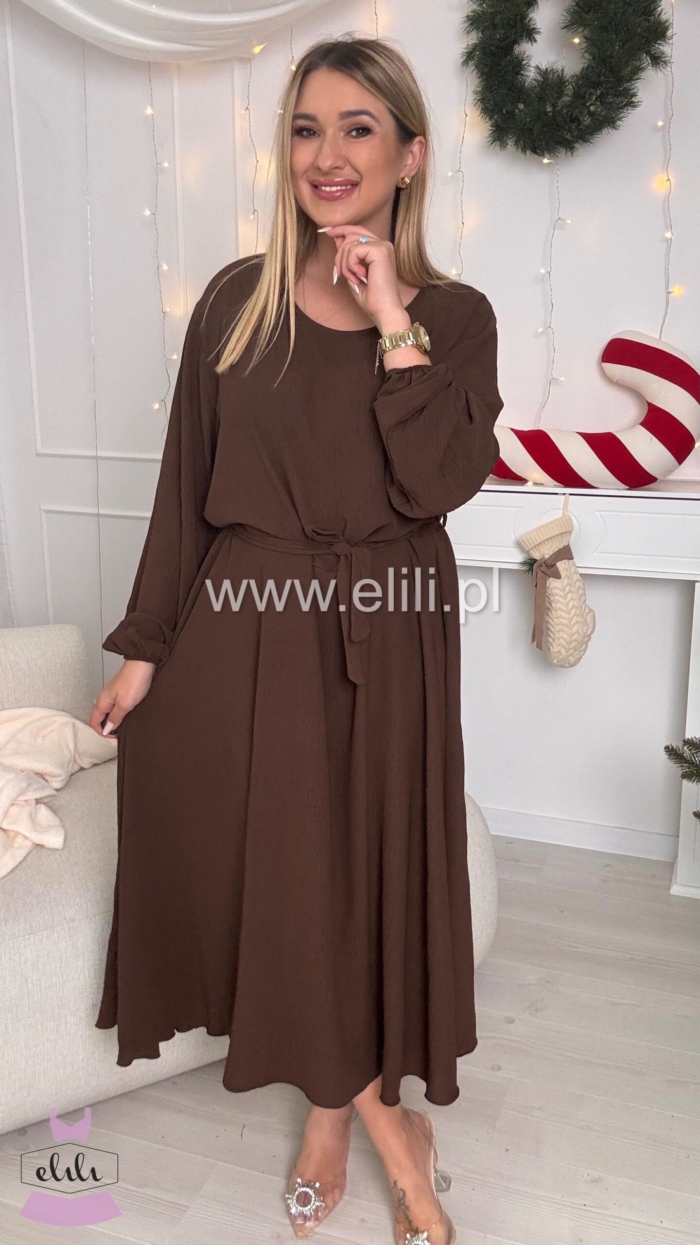 Sukienka Kama long czekolada