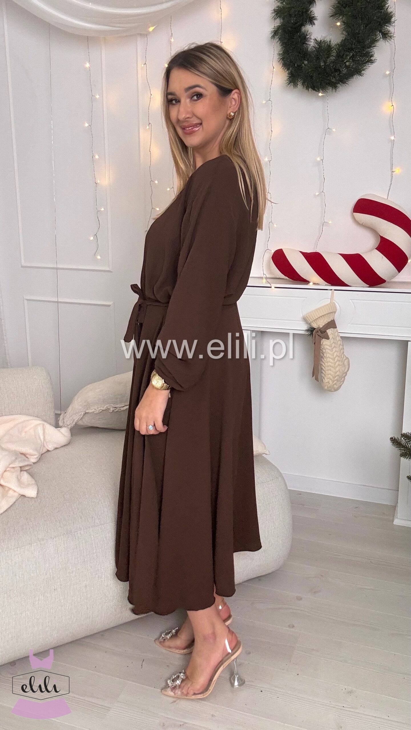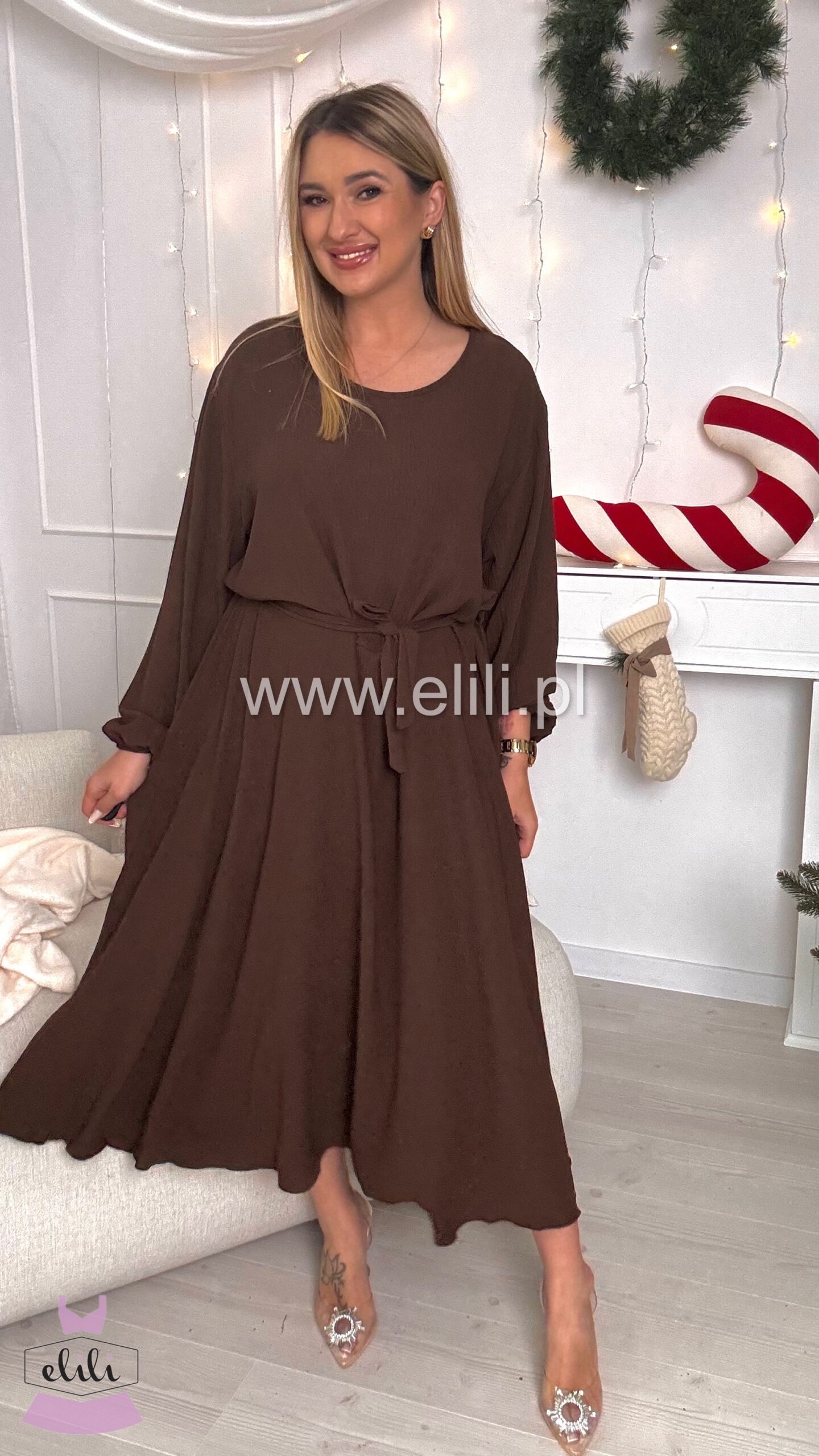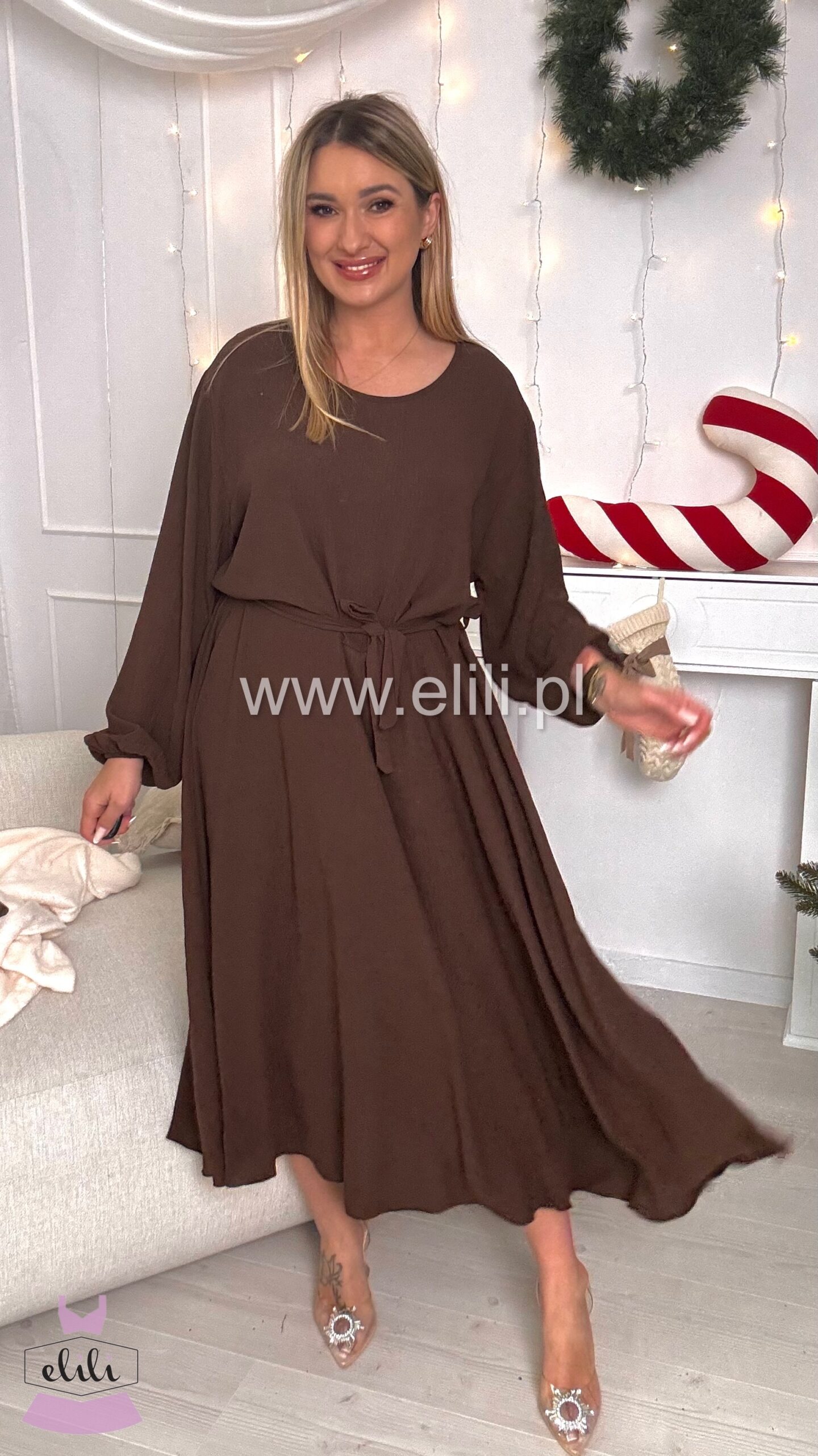 Sukienka Kama long czekolada