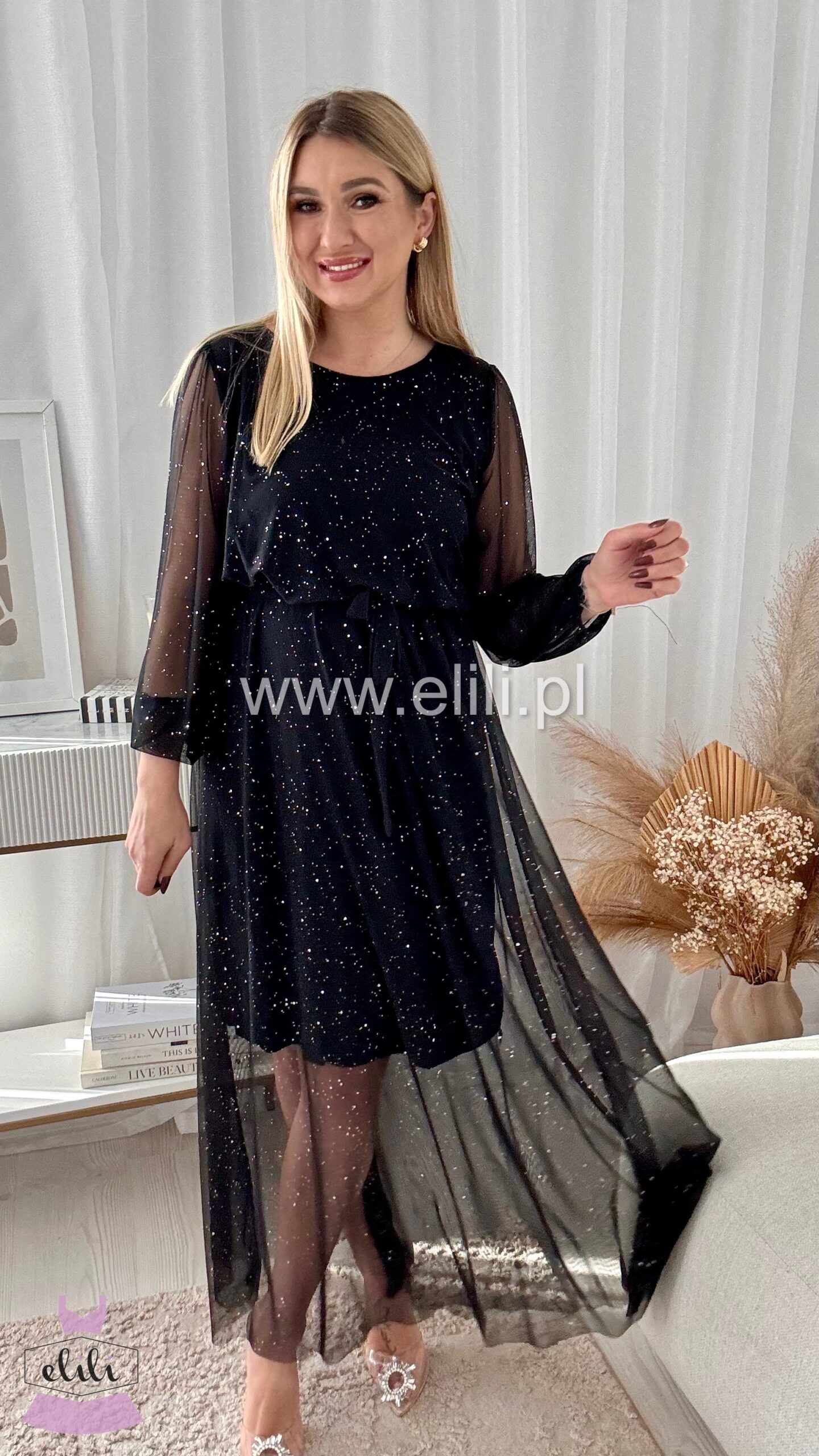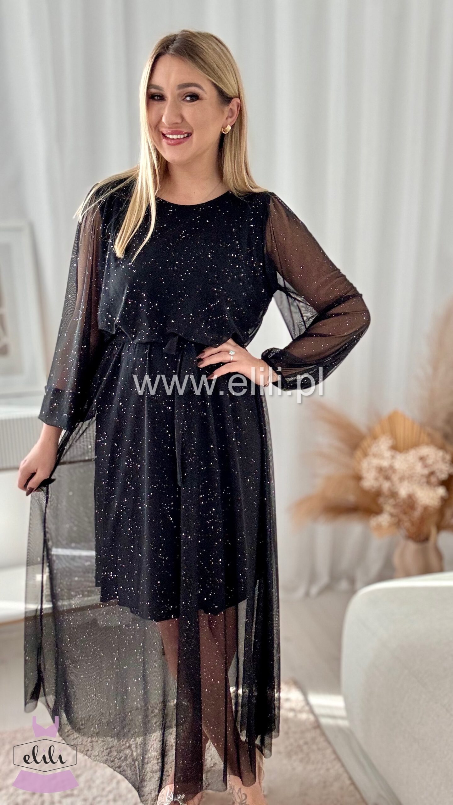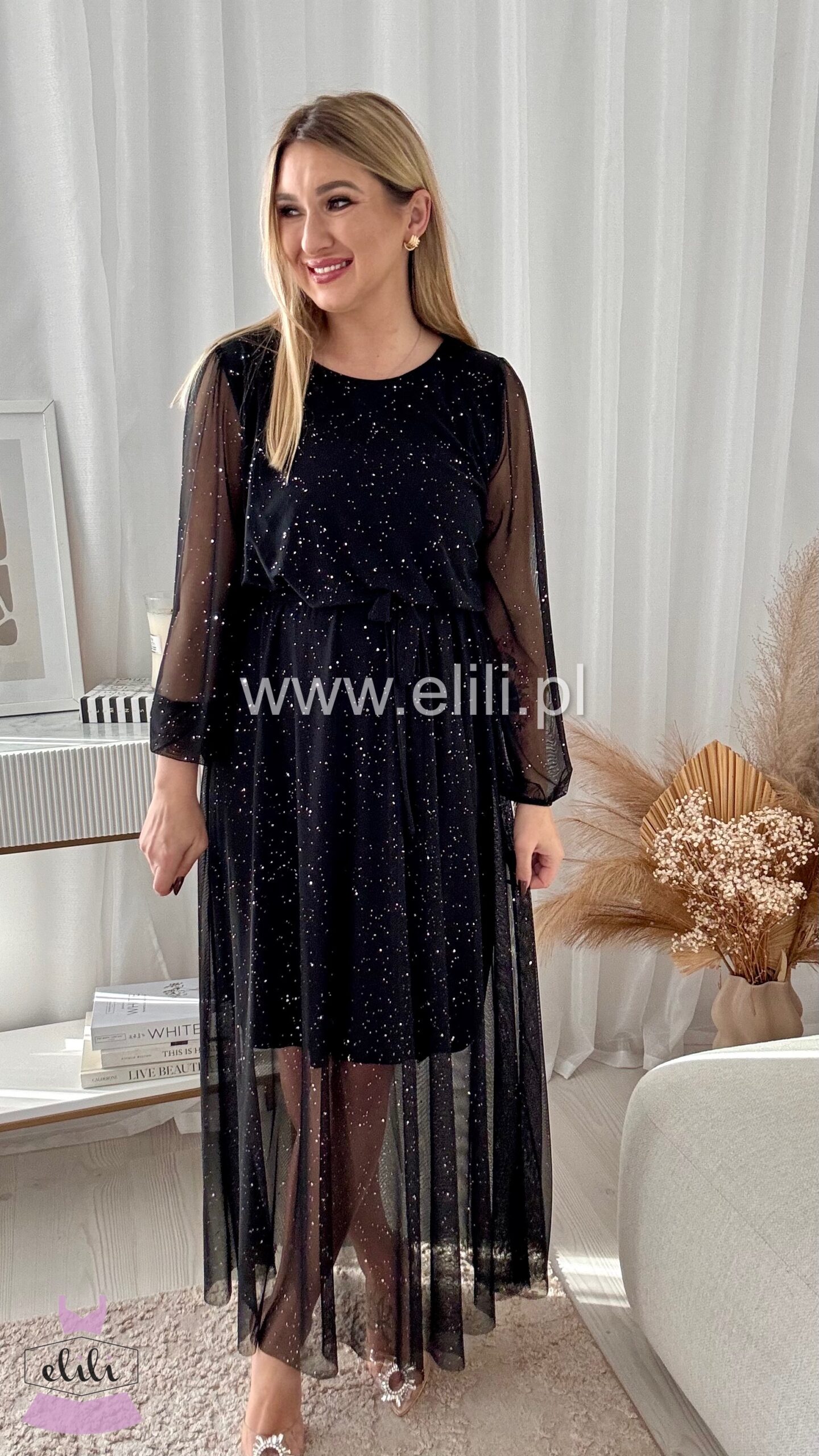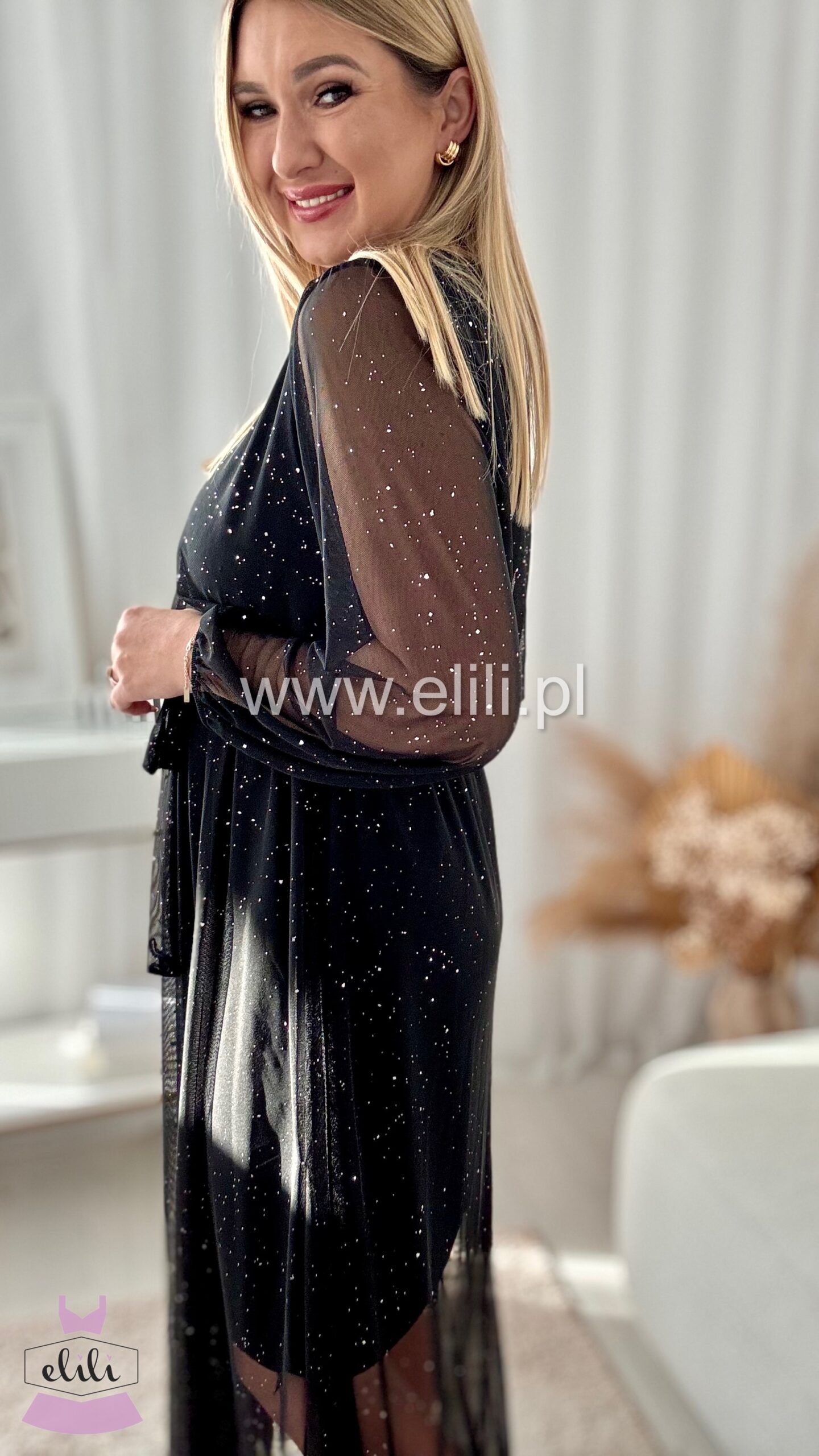 Model maxi na wiskozowej podszewce z błyszczącego materiału. Posiada gumkę w talii oraz pasek