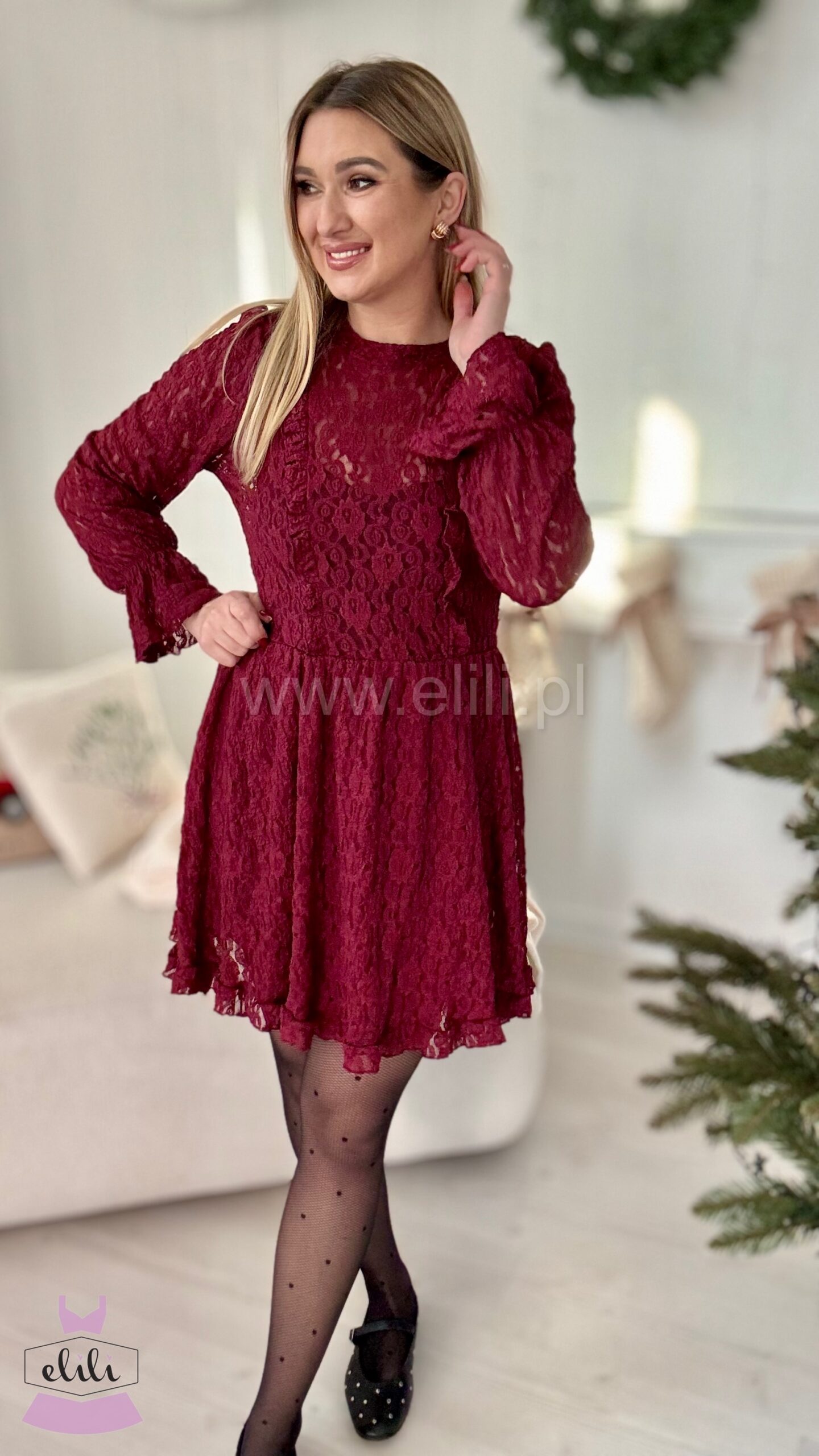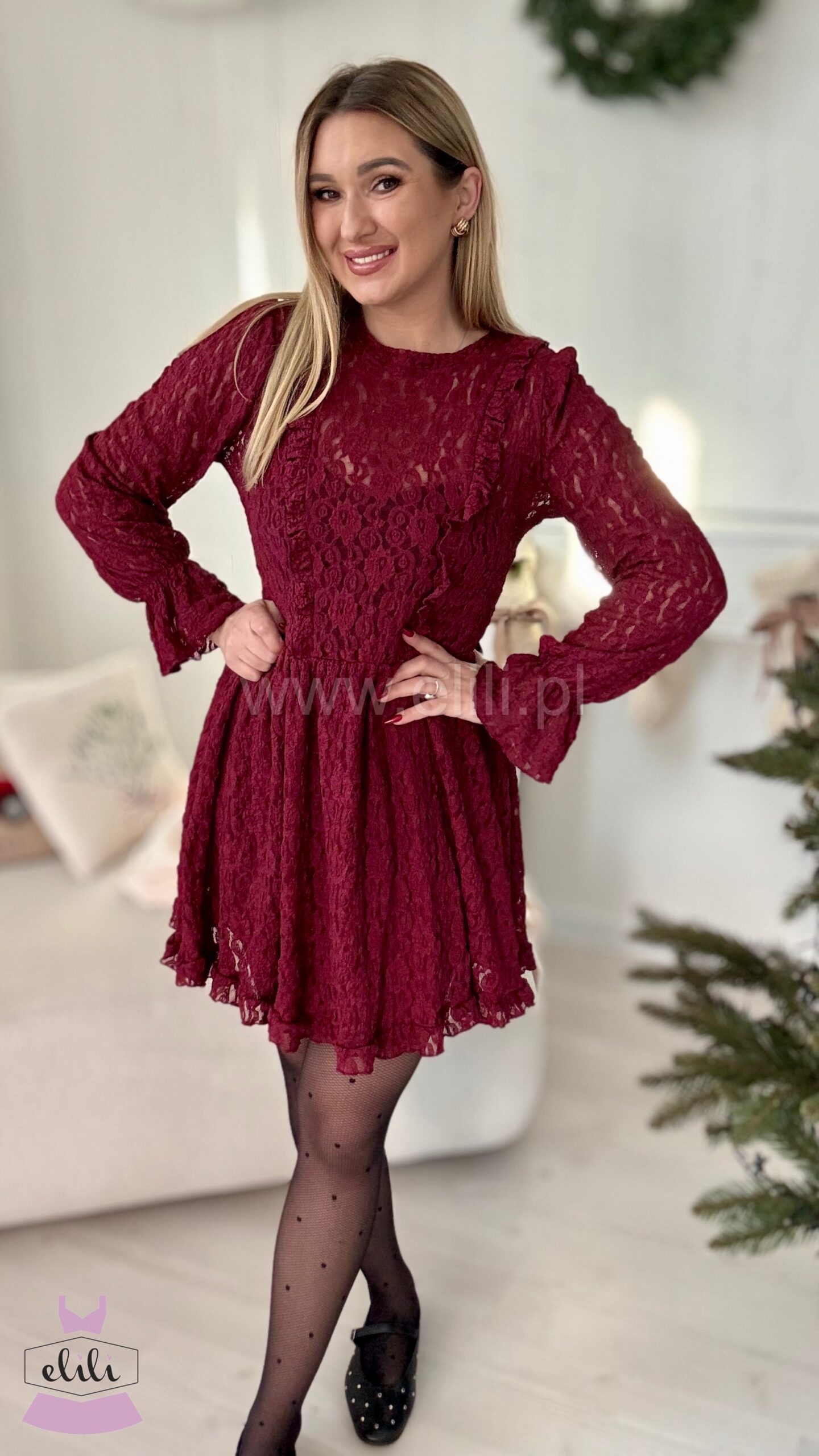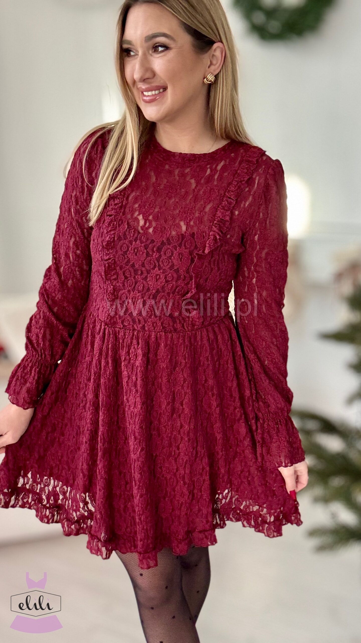Model uszyty z bardzo elastycznej koronki z rozkloszowanym dołem. Gora sukienki nie posiada podszewki