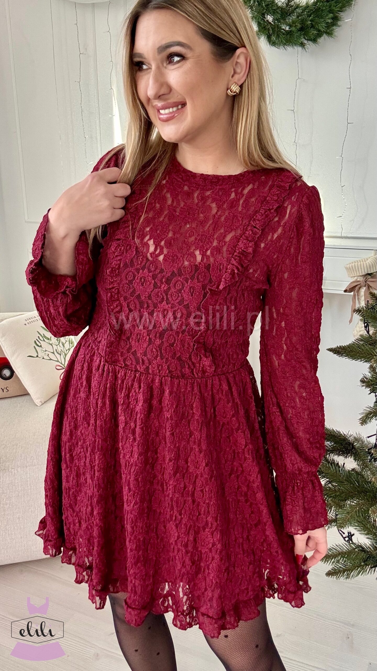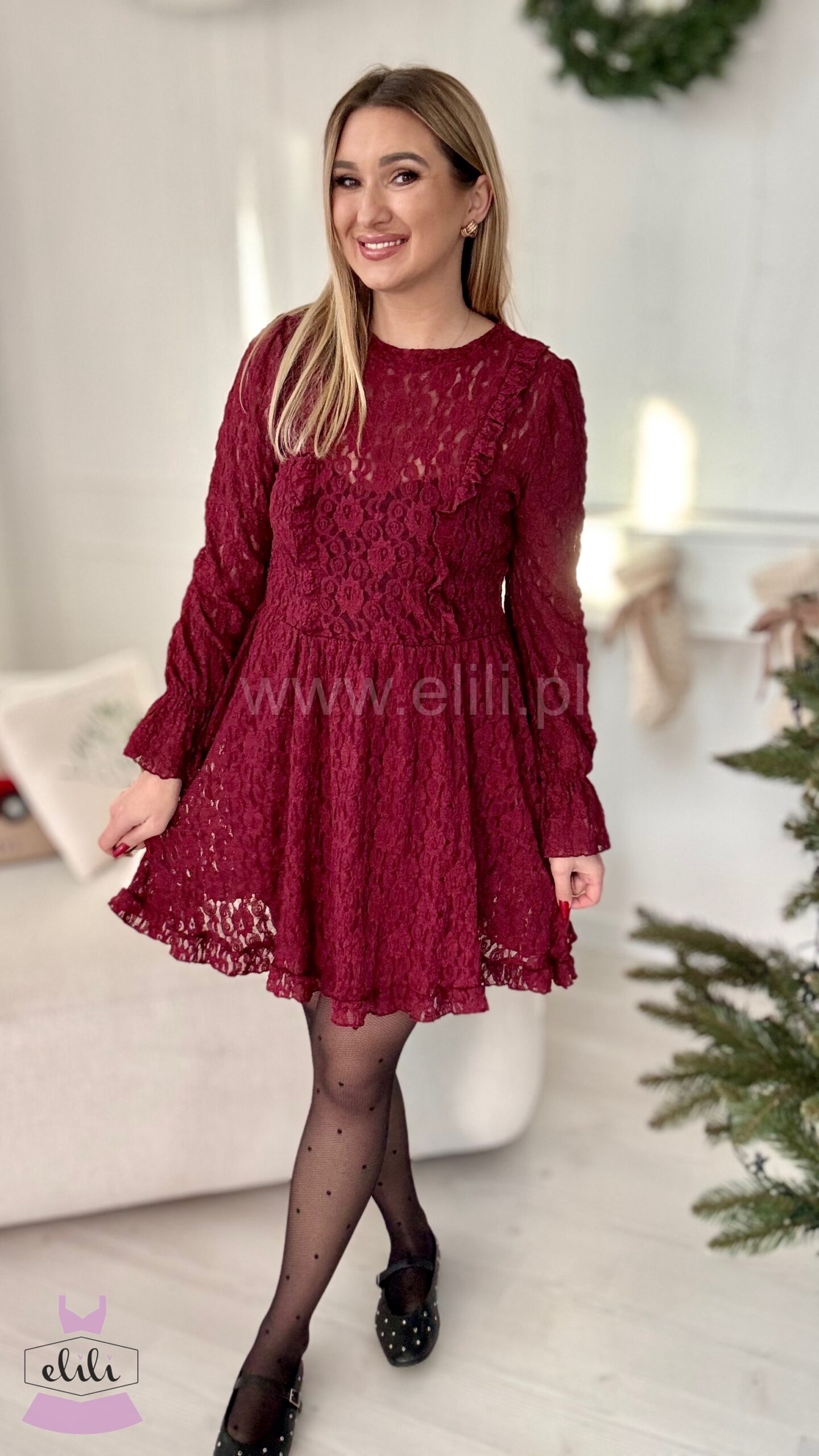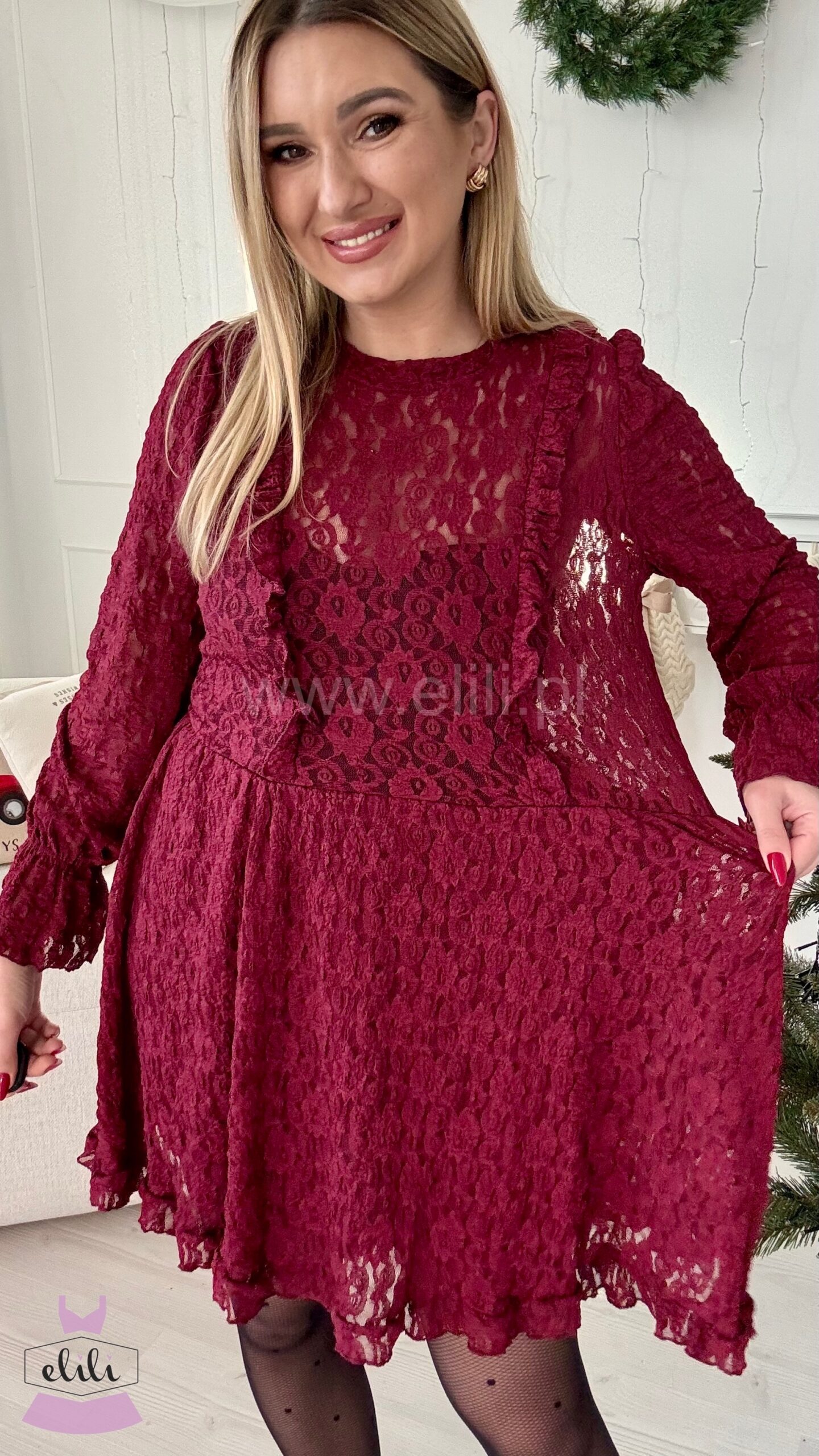 Model uszyty z bardzo elastycznej koronki z rozkloszowanym dołem. Gora sukienki nie posiada podszewki
