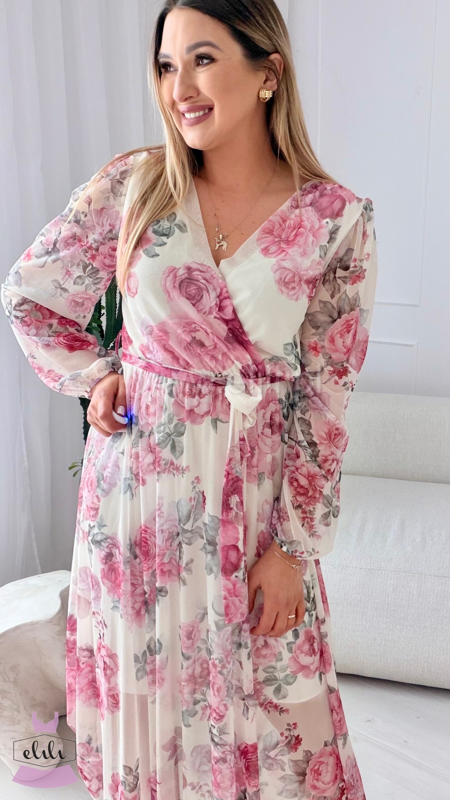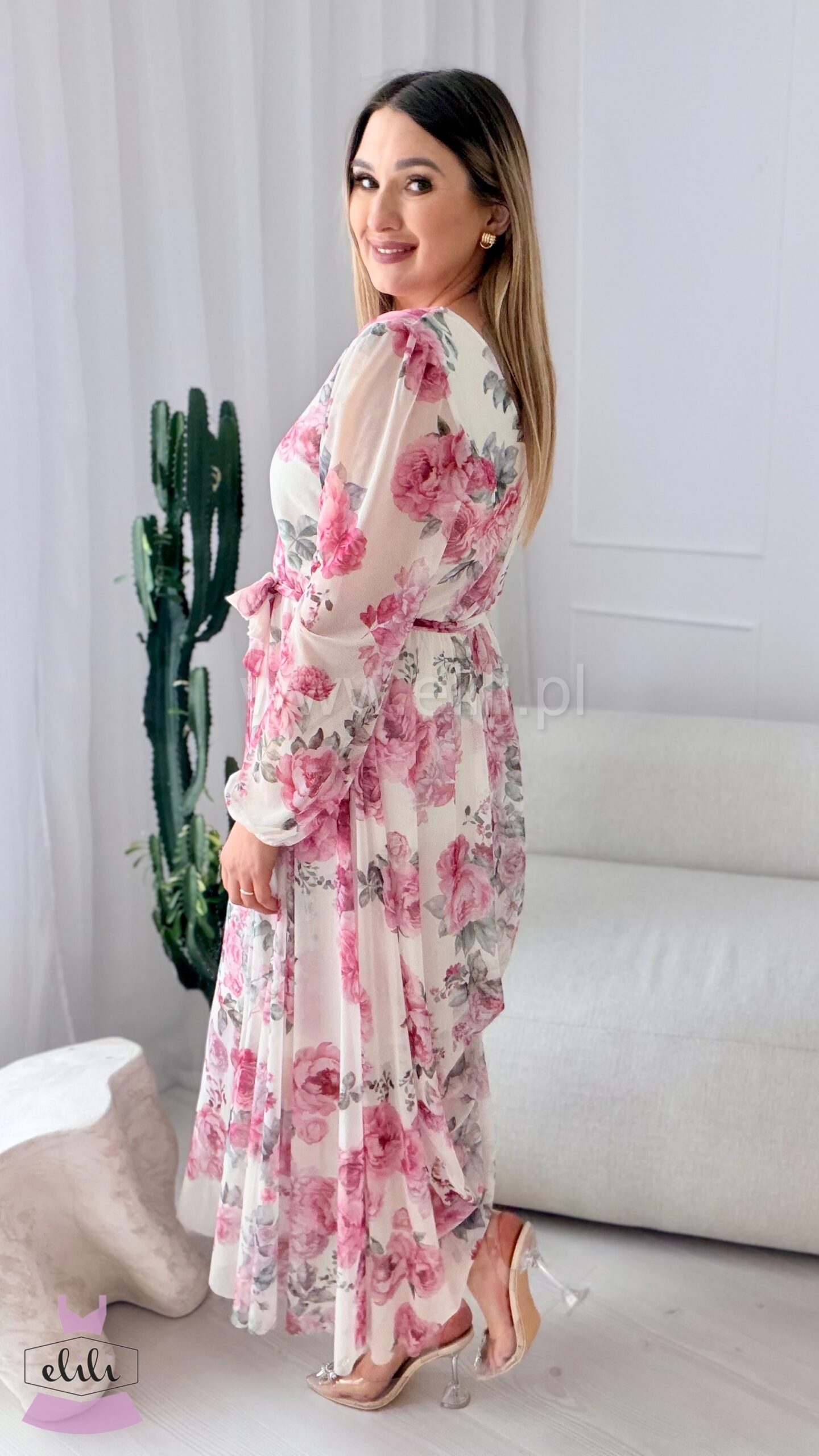 Długość maxi sprawia, że sukienka prezentuje się niezwykle kobieco i elegancko – idealna zarówno na większe wyjścia, jak i letnie wieczory.