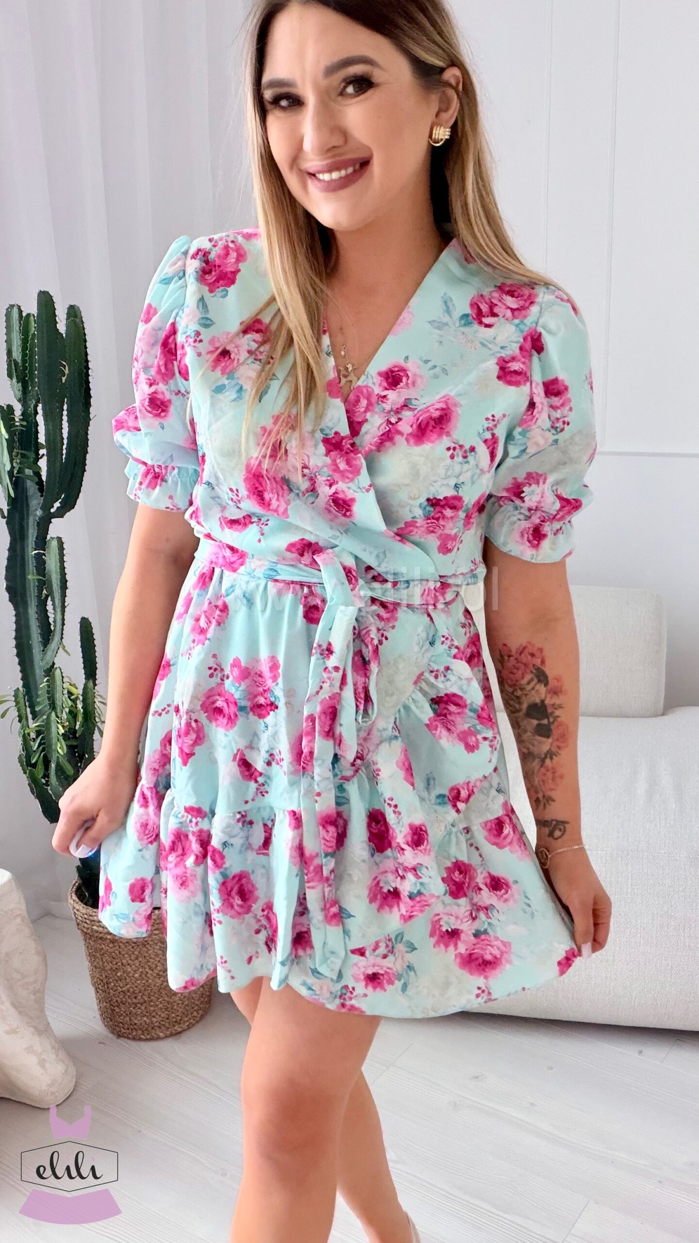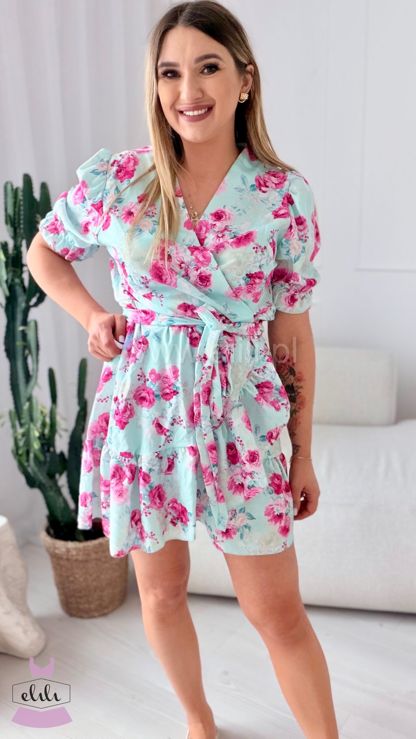 Urocza sukienka typu “wrap dress” zakładana kopertowo. Wersja letnia z krótkim rękawkiem z delikatnymi bufkami. Sukienke można zawiązać na wiele sposobów w zależności od upodobań. Materiał nie gniecie się, mozna ją prać w pralce i suszyc w suszarce. Idealna na co dzień oraz na wieksze wyjścia – możesz łatwo zmienić jej charakter różnymi dodatkami. Model laura to jeden z naszych bestsellerów – zadowolenie z tego modelu możemy potwierdzic tysiącami sprzedanych sztuk.