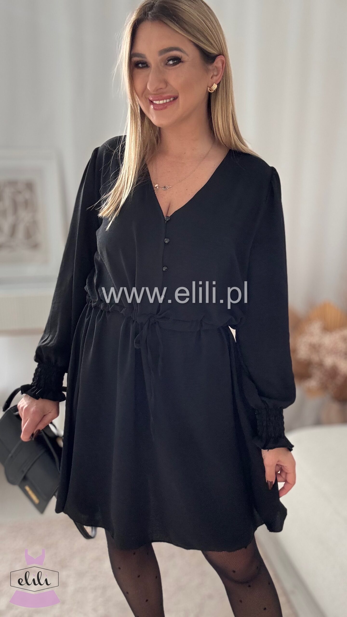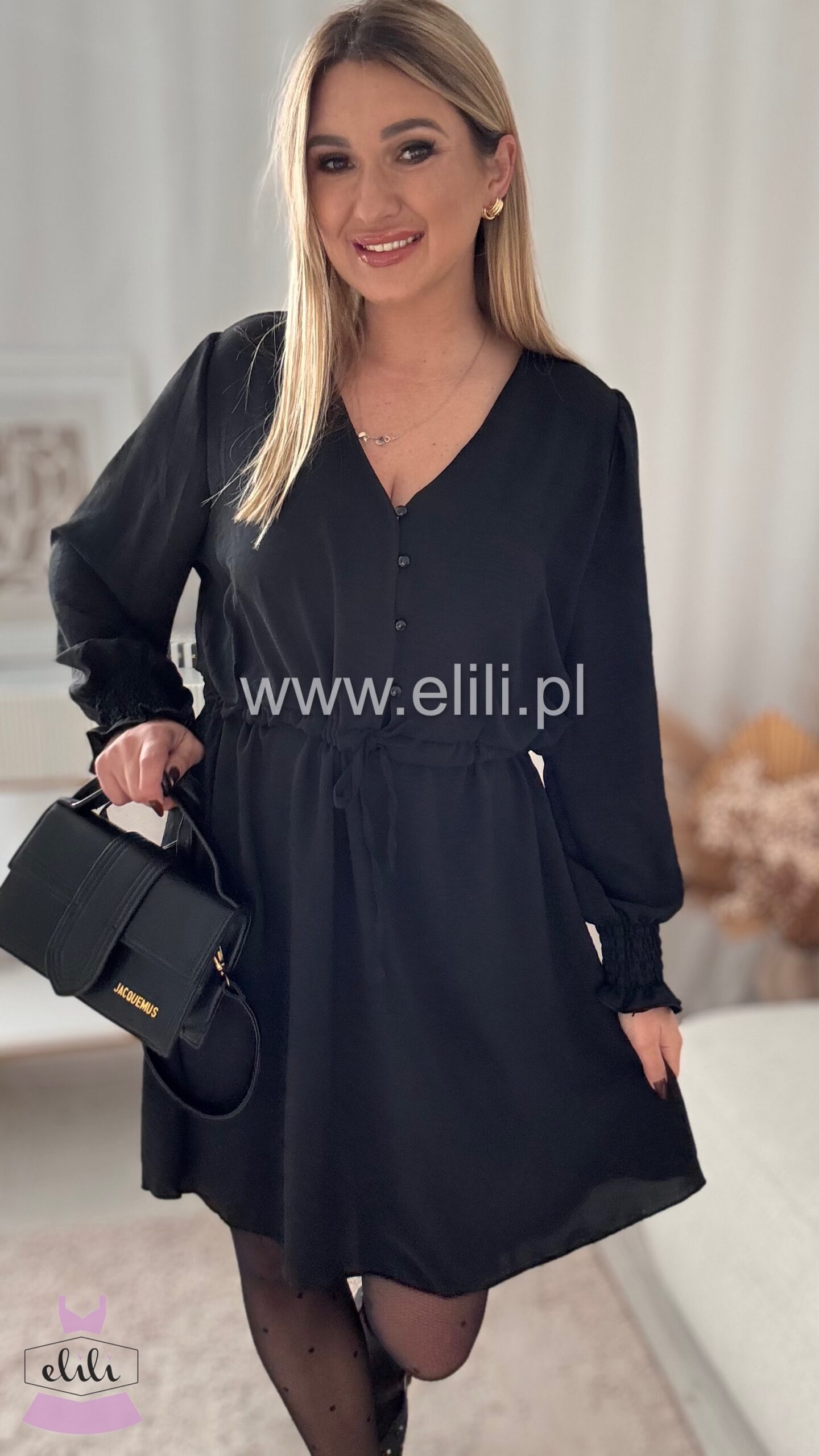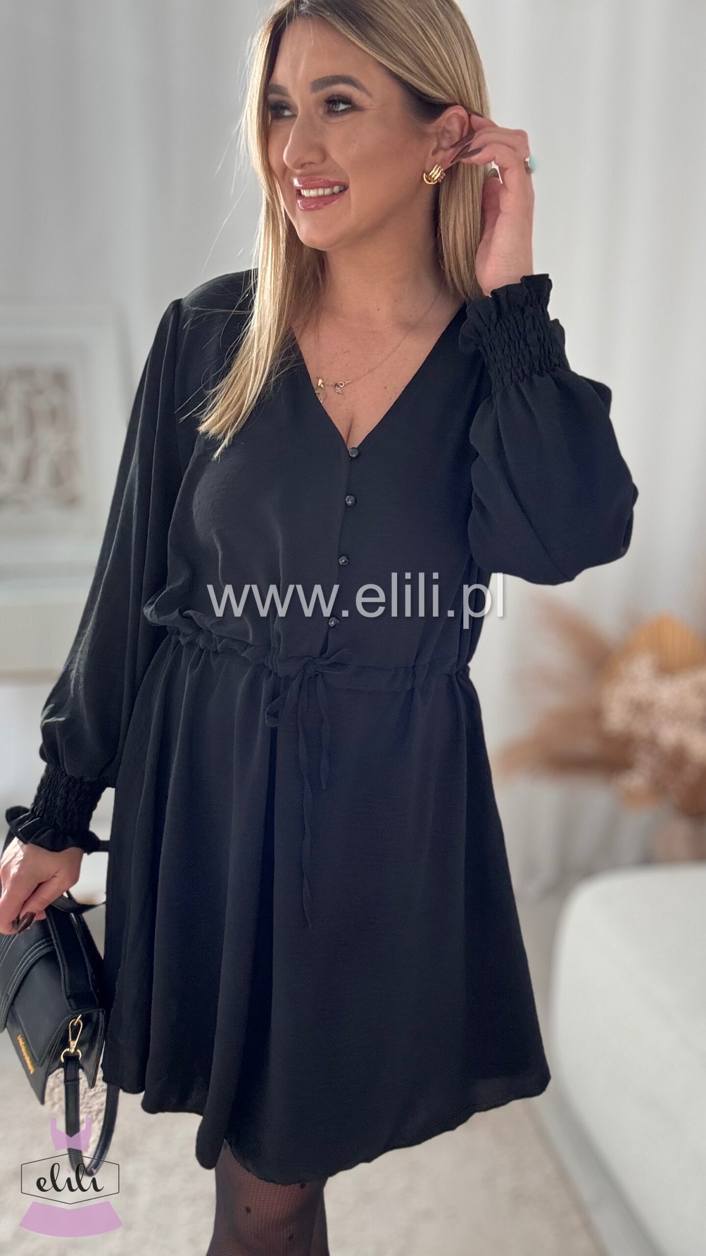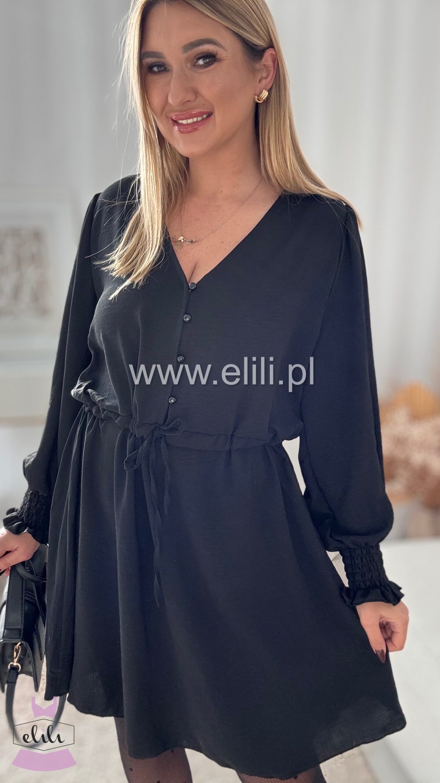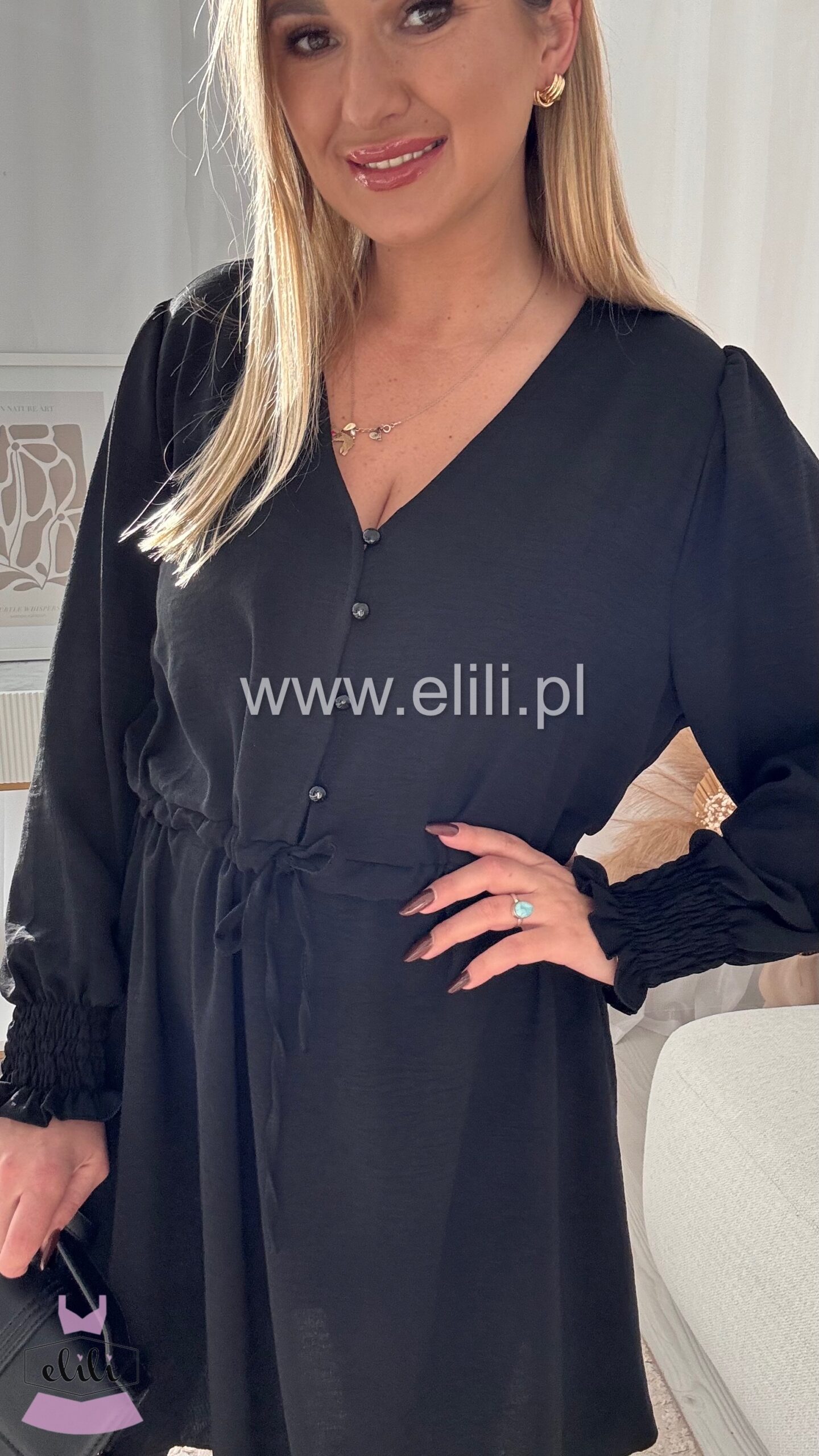 Sukienka z rozpinanymi guzikami oraz troczkiem w talii
