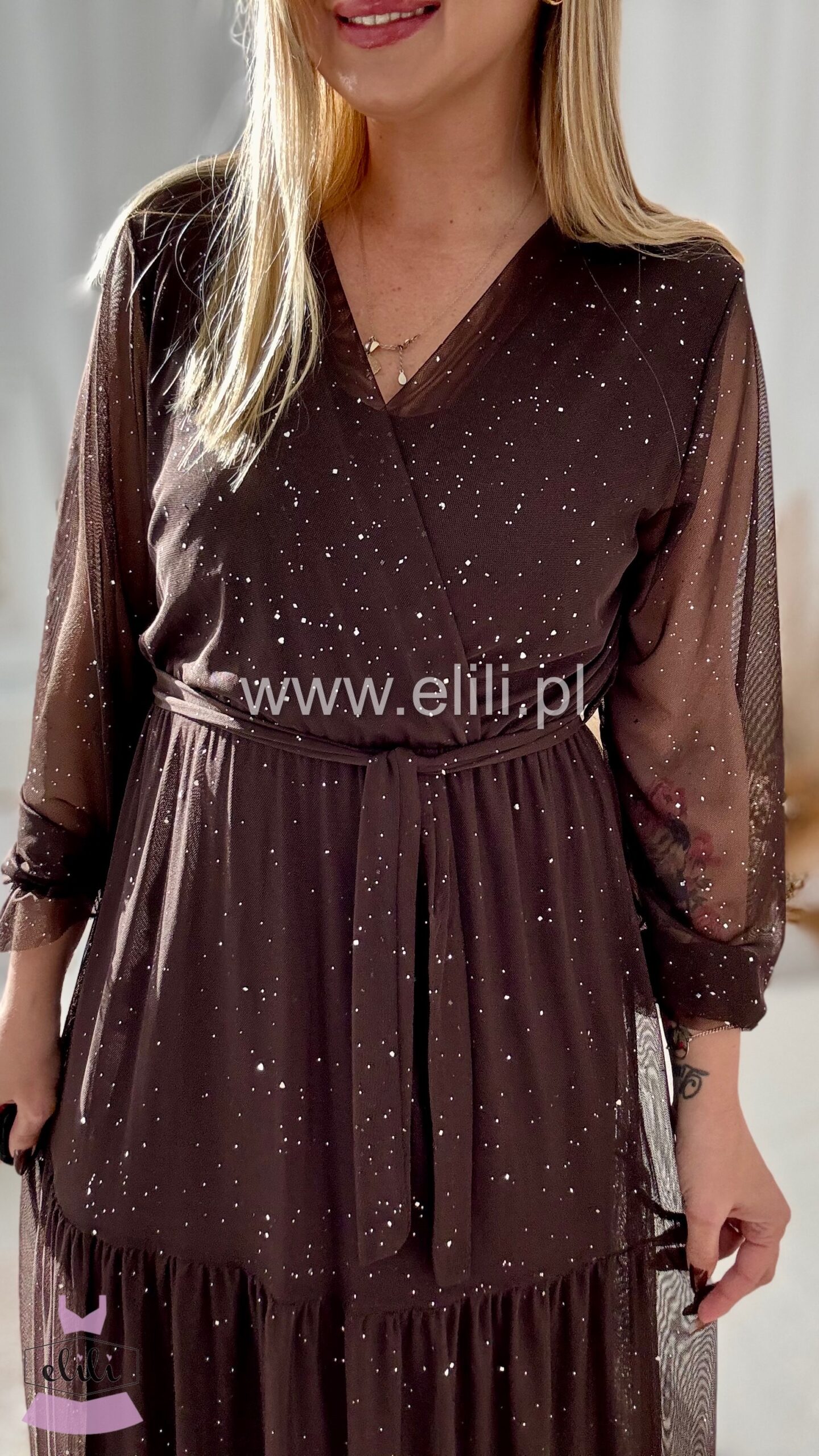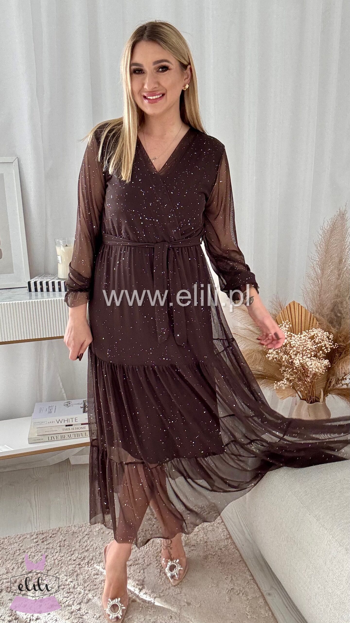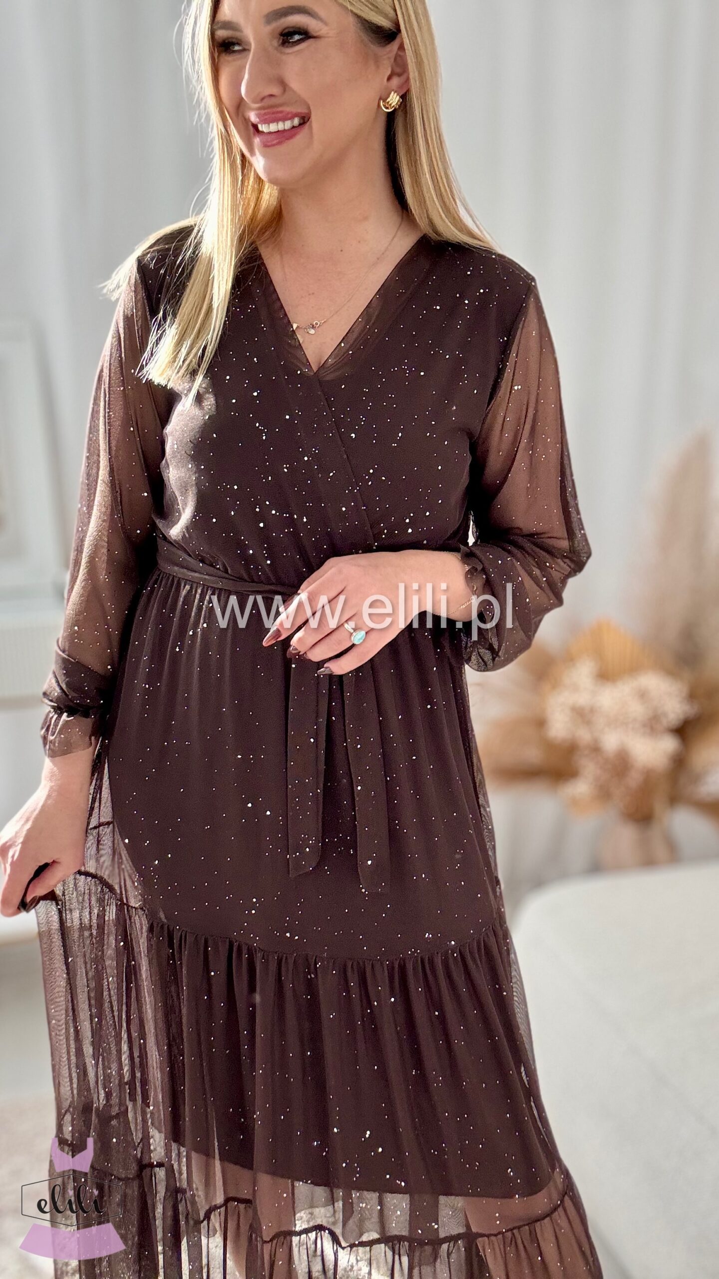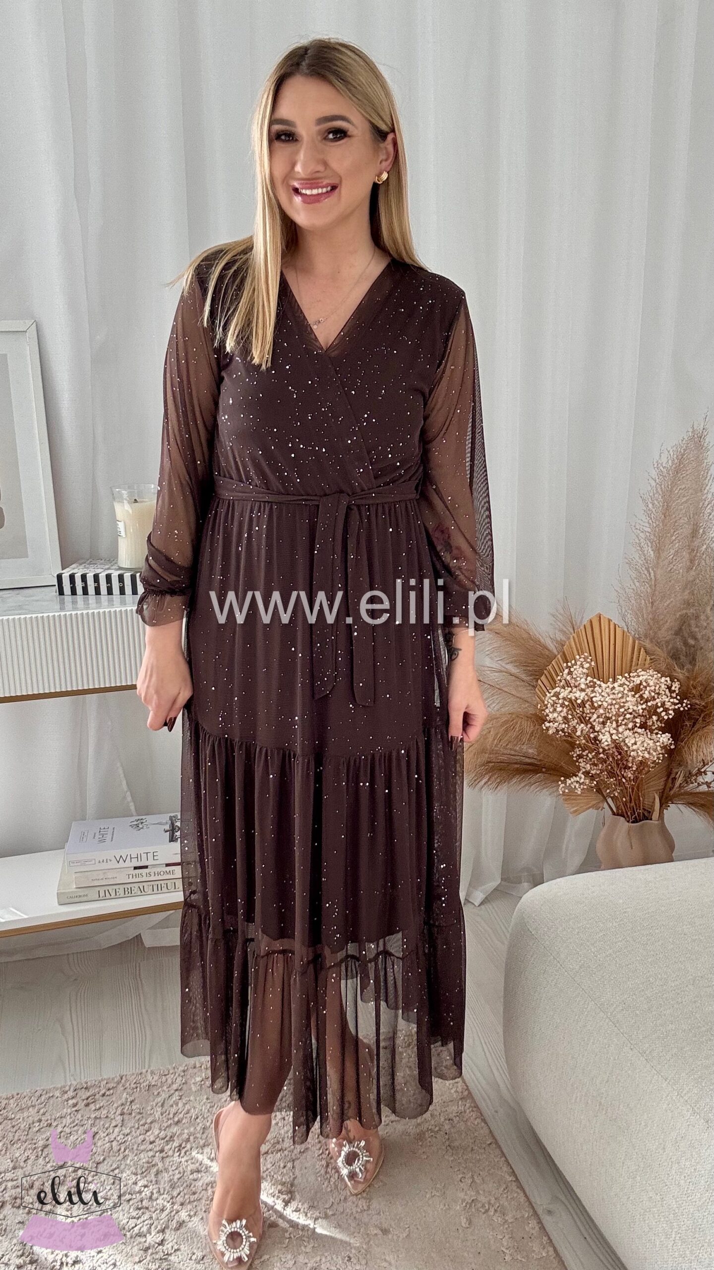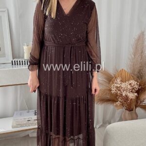 Model maxi na wiskozowej podszewce z błyszczącego materiału