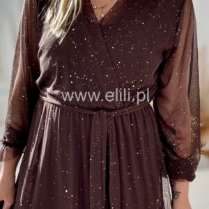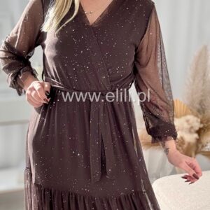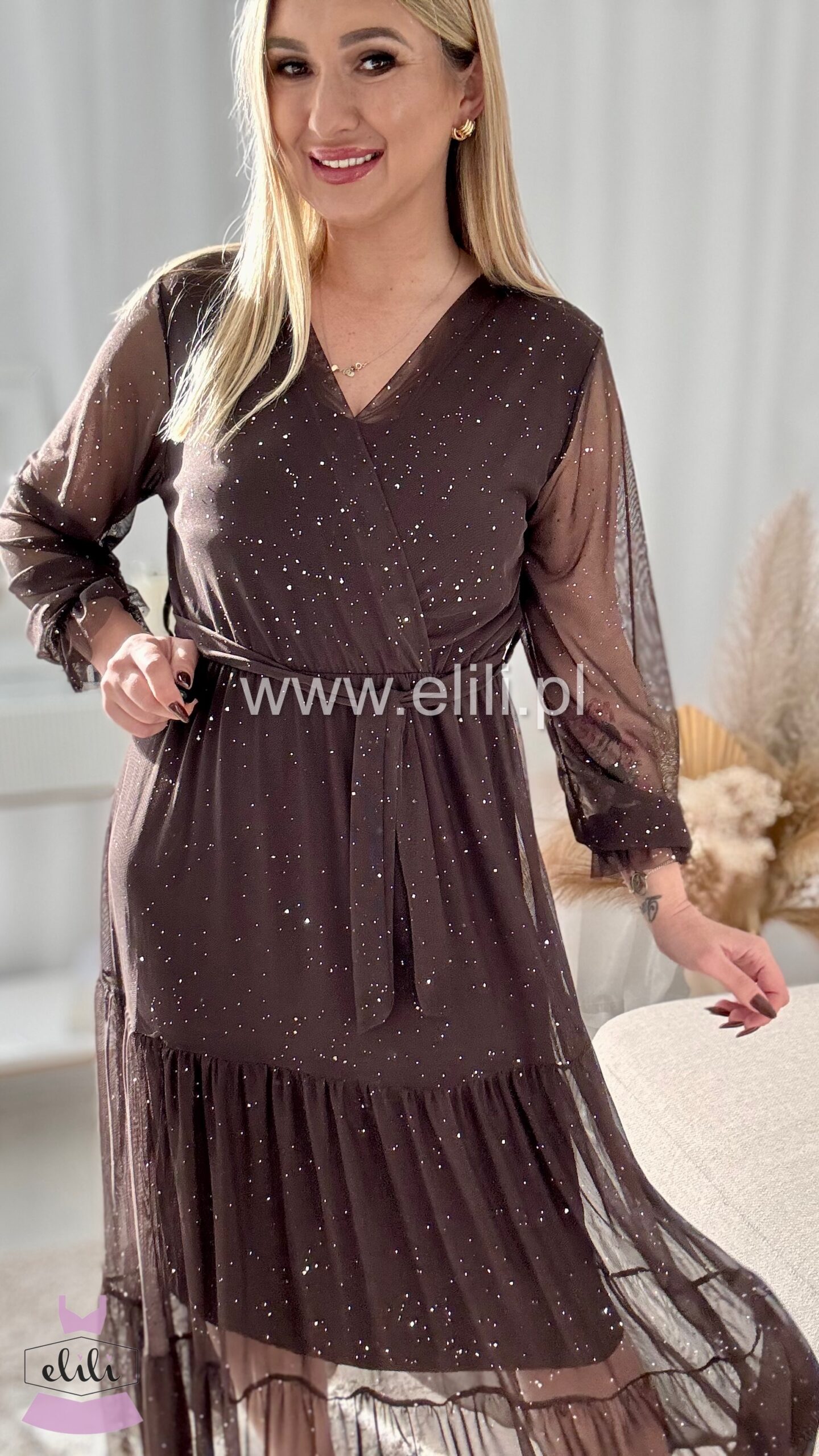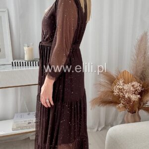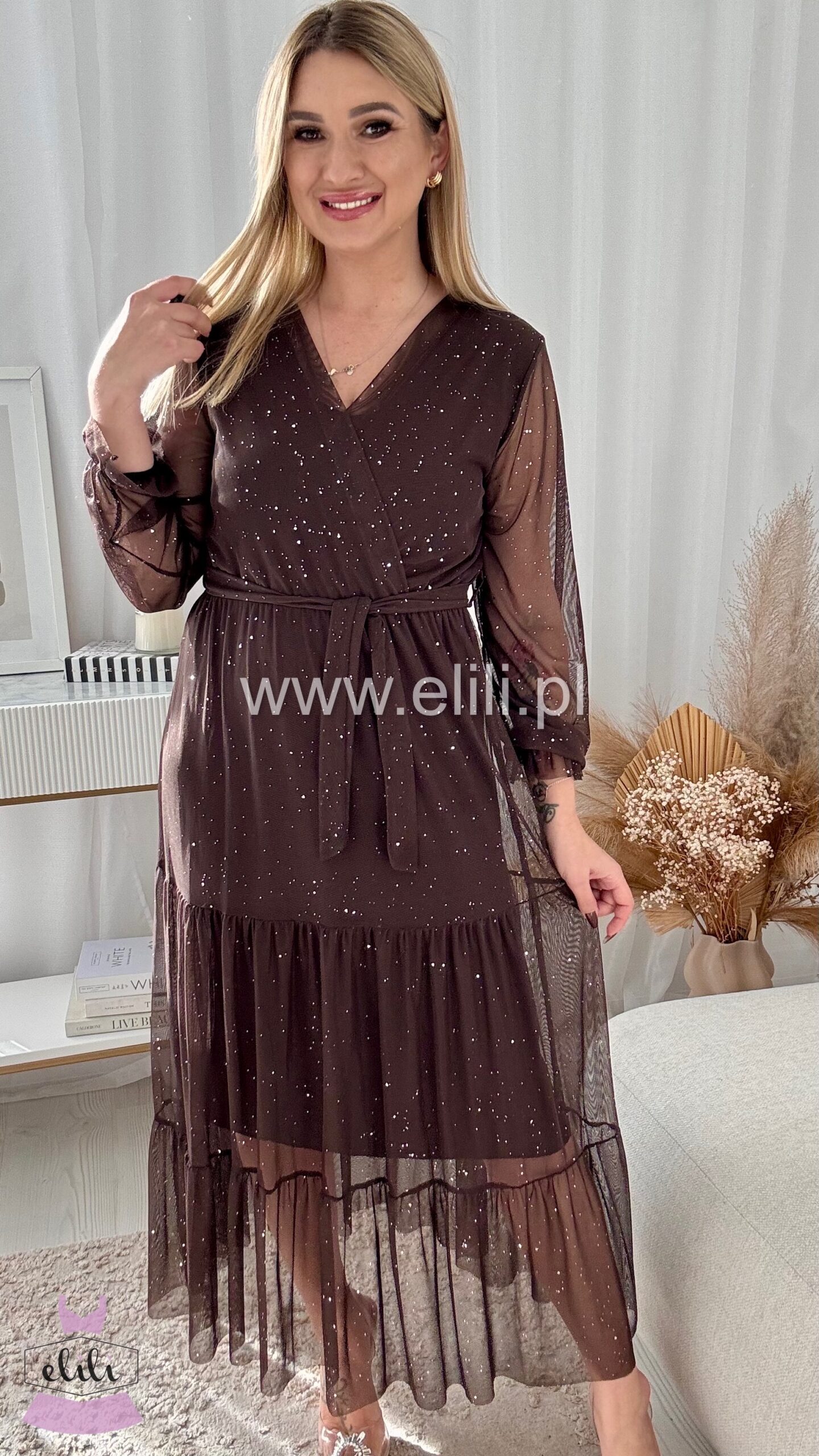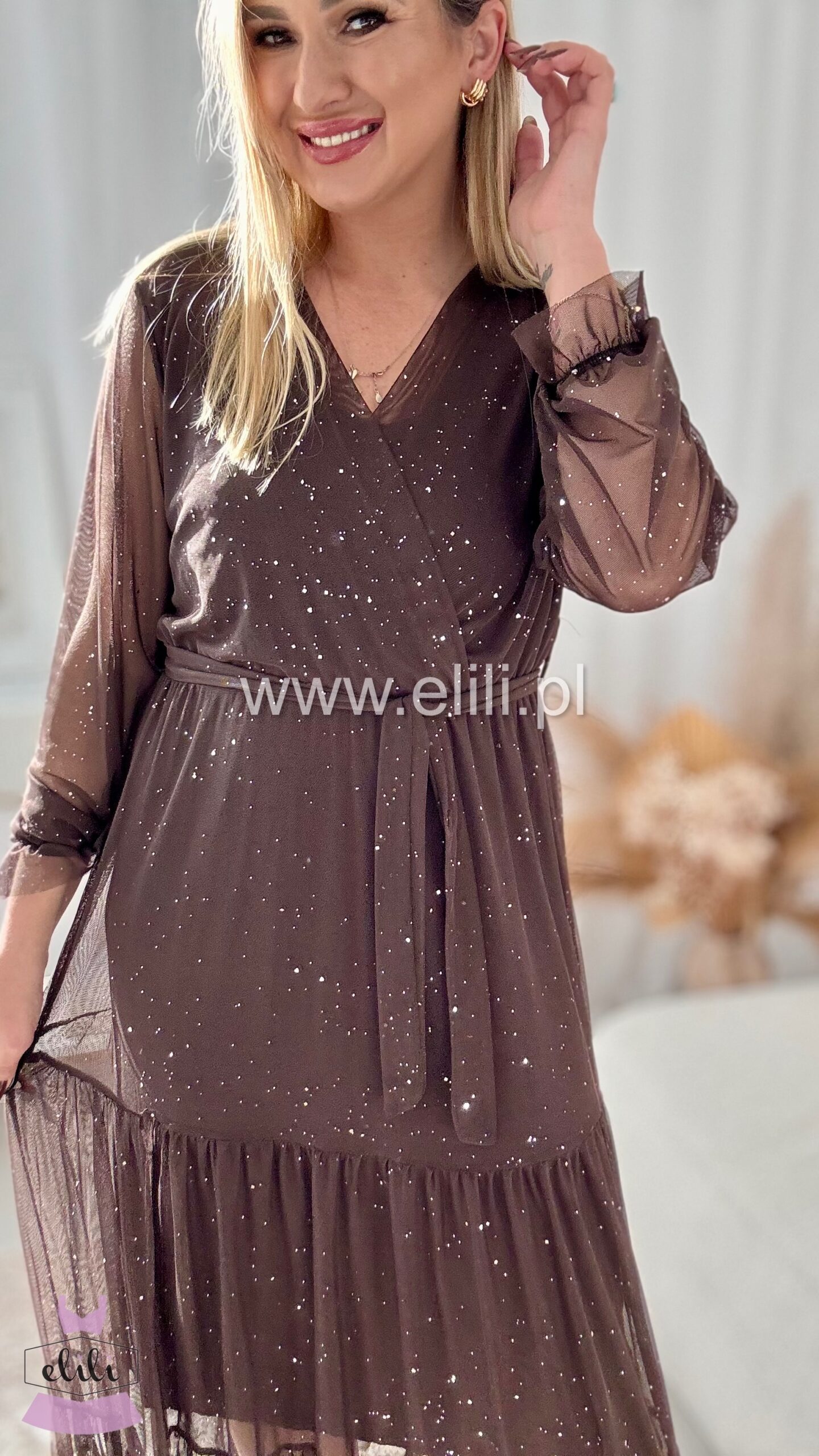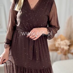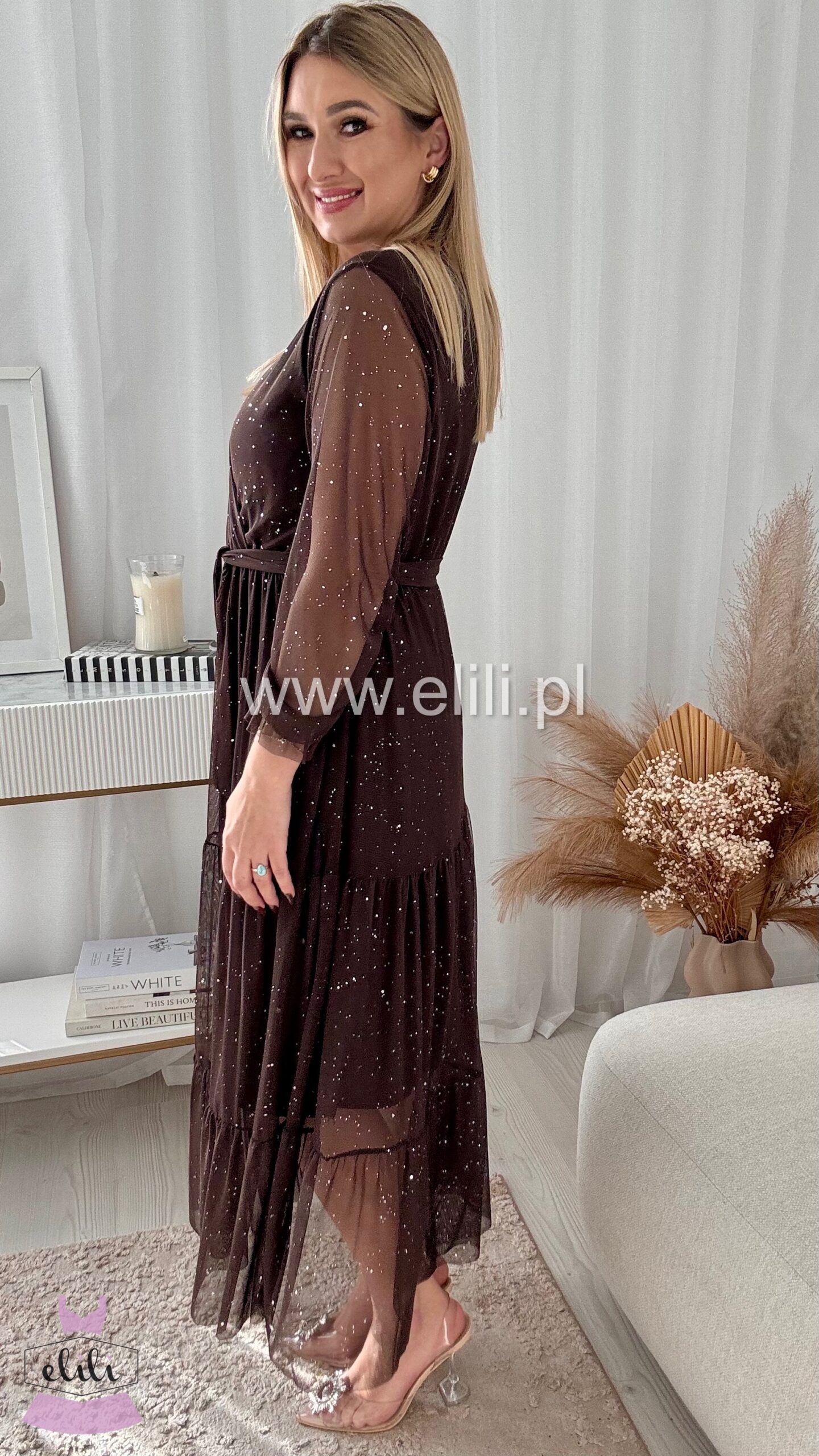 Model maxi na wiskozowej podszewce z błyszczącego materiału