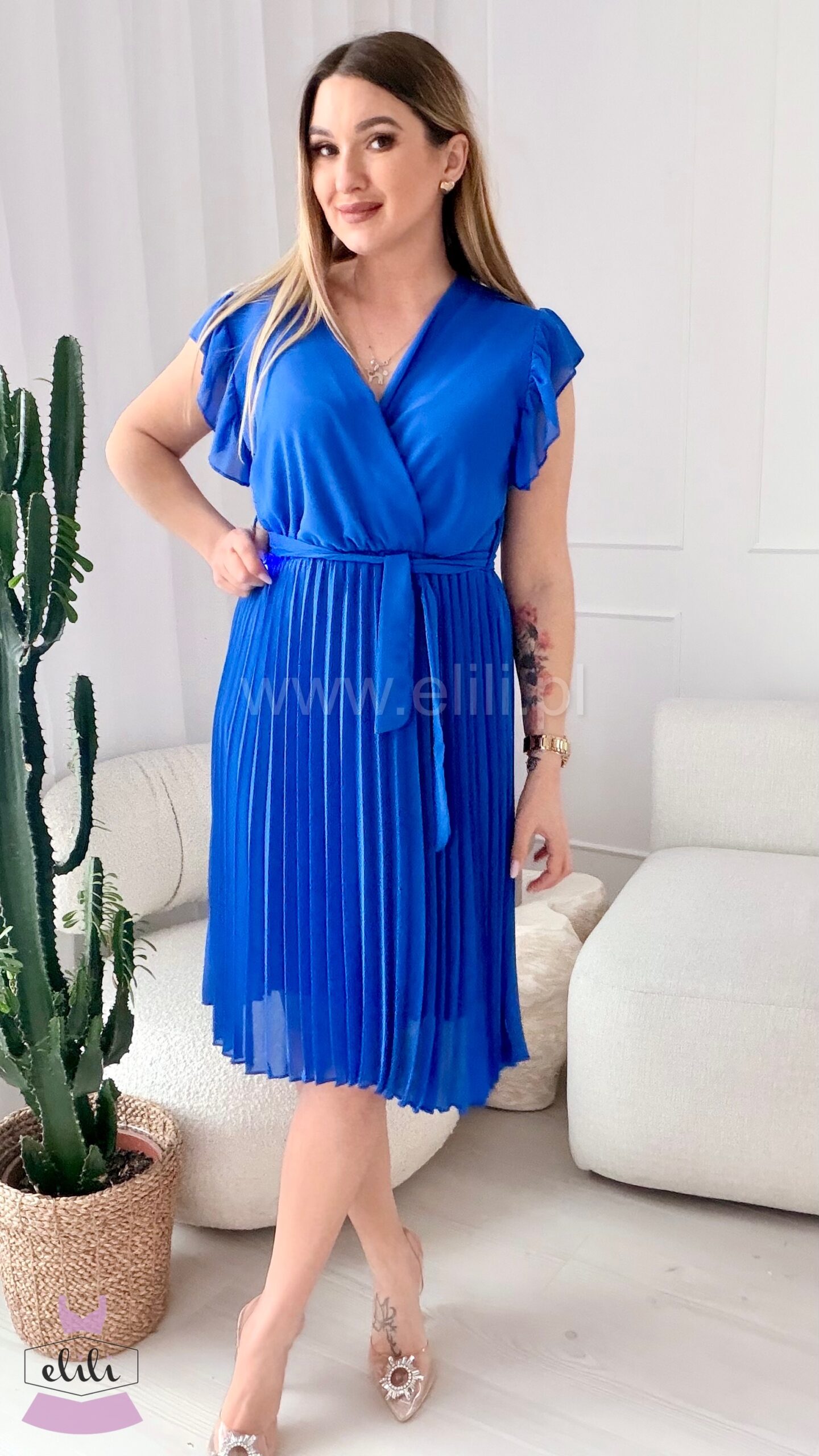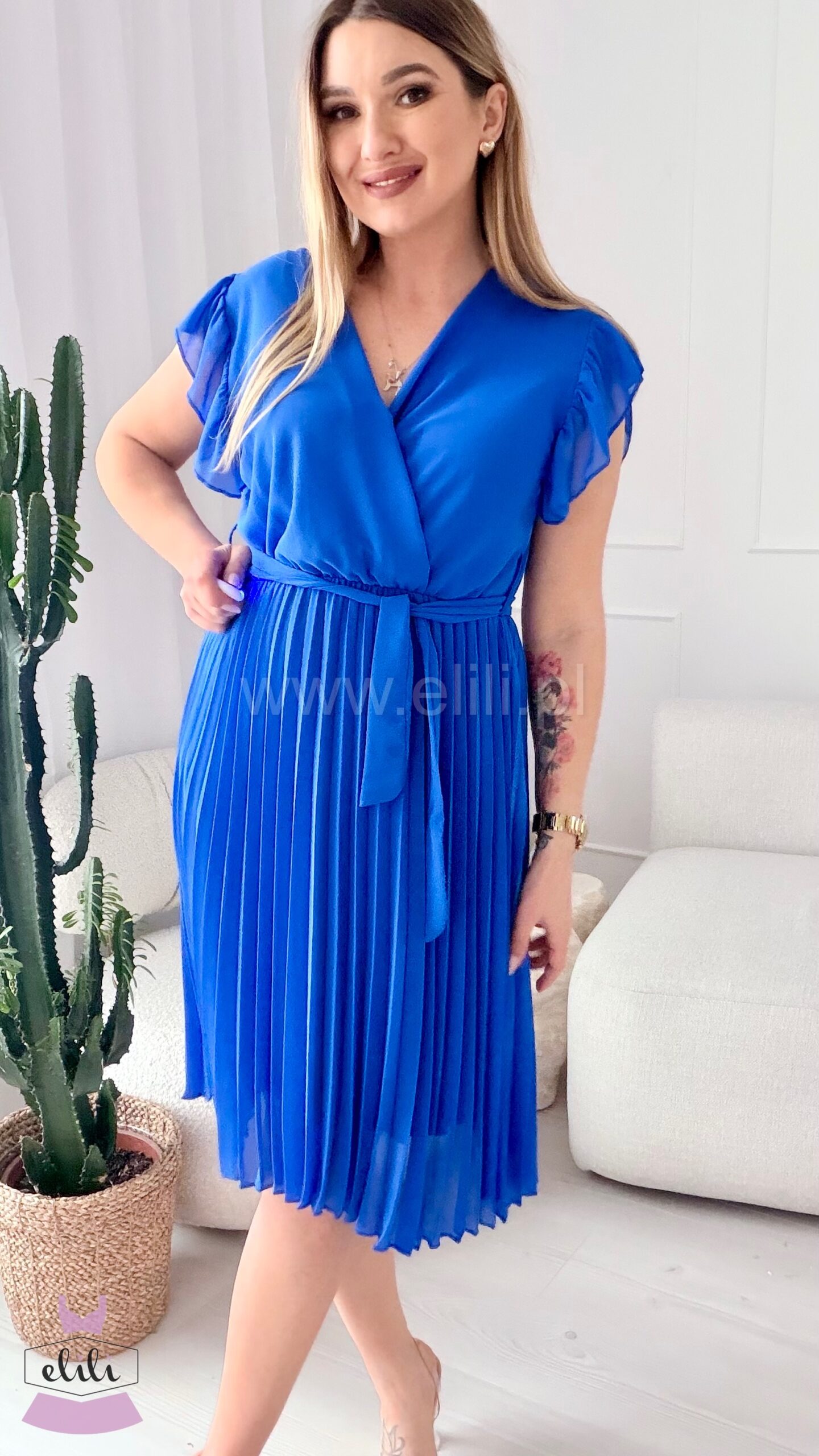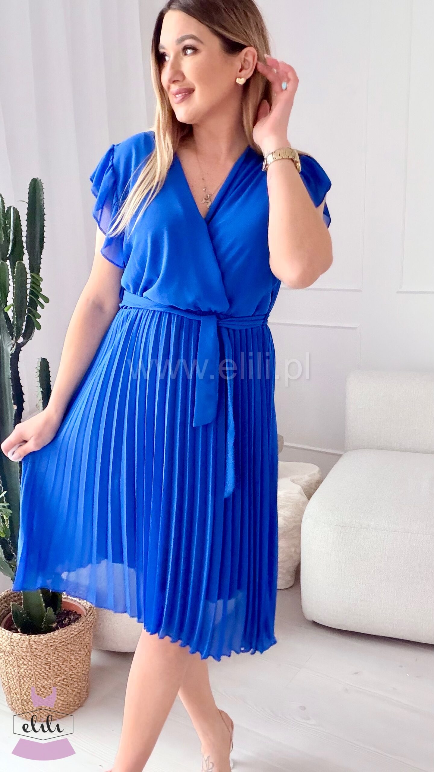 Sukienka Liwia gładka krótki rękaw niebieska