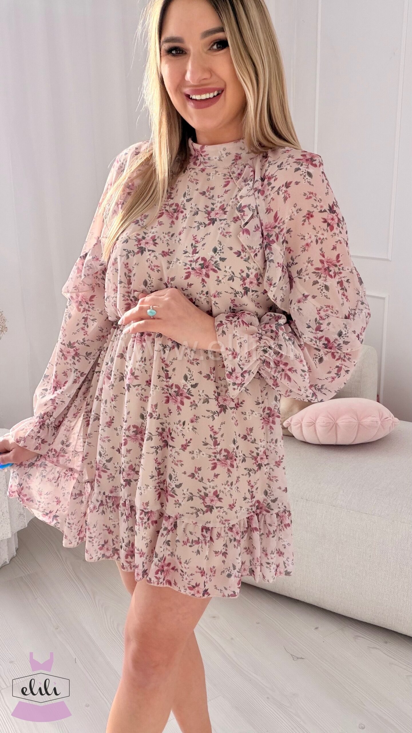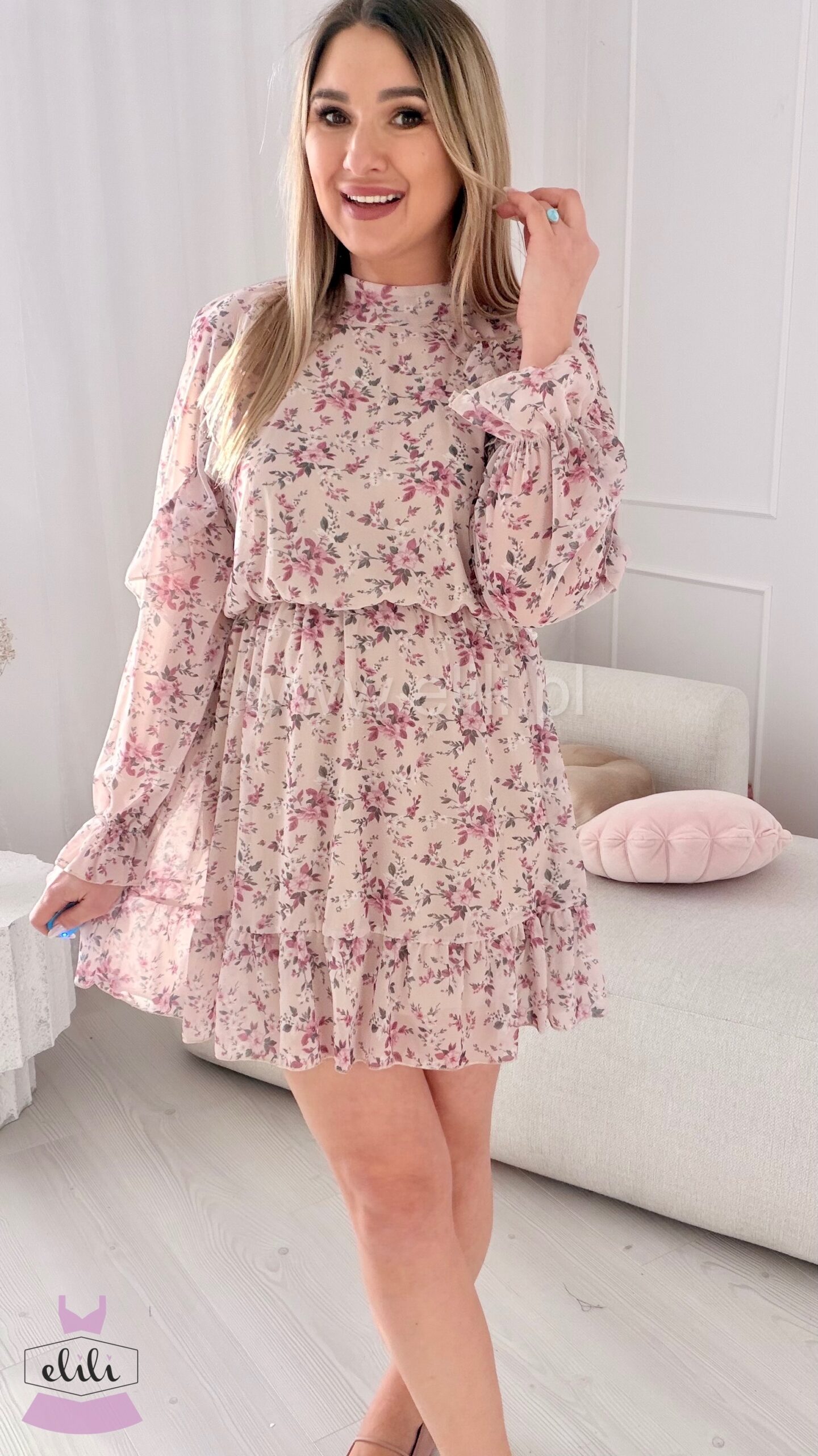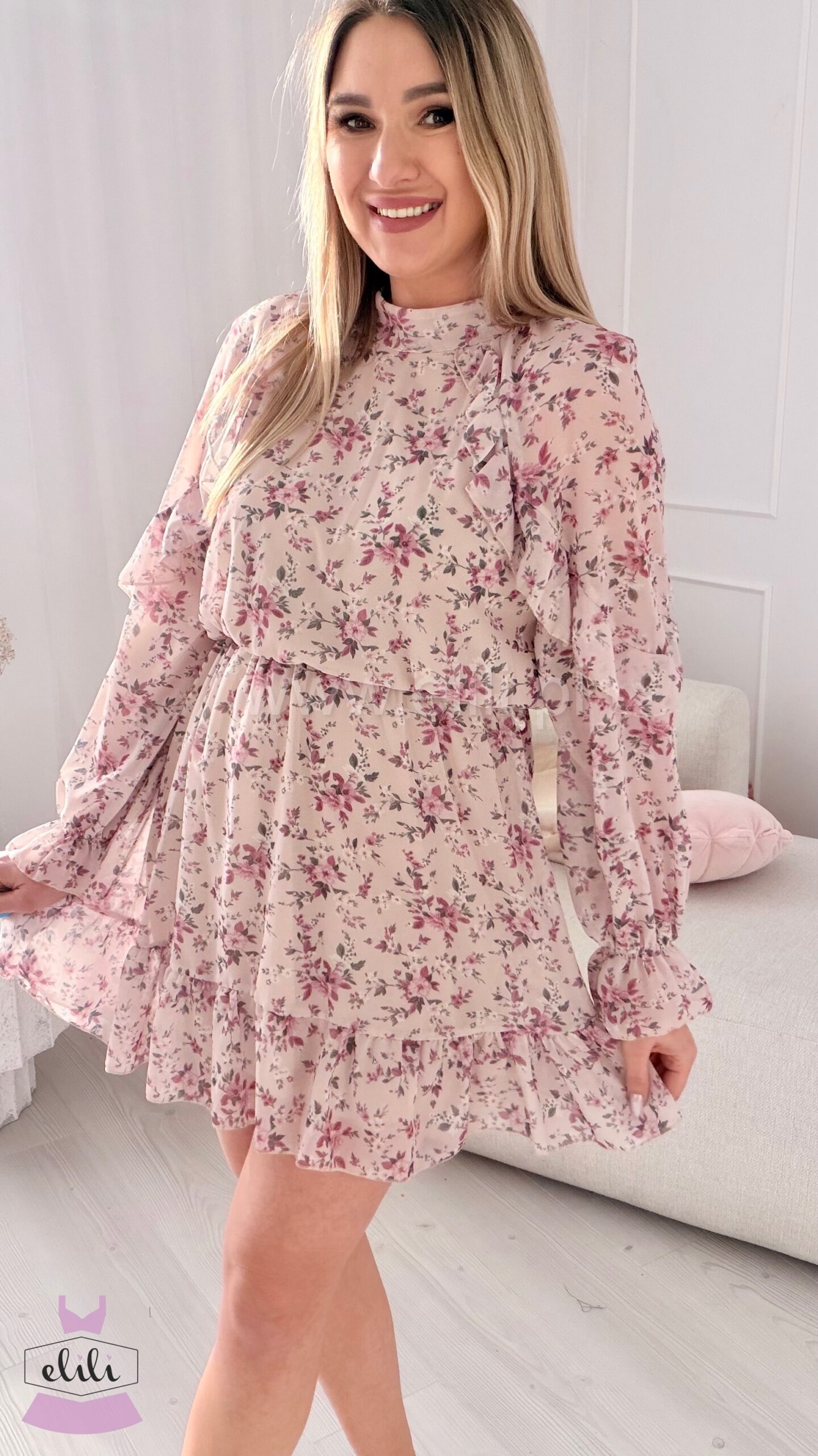 Szyfonowy model z gumka w tali. Posiada wiązanie z tyłu. Na podszewce