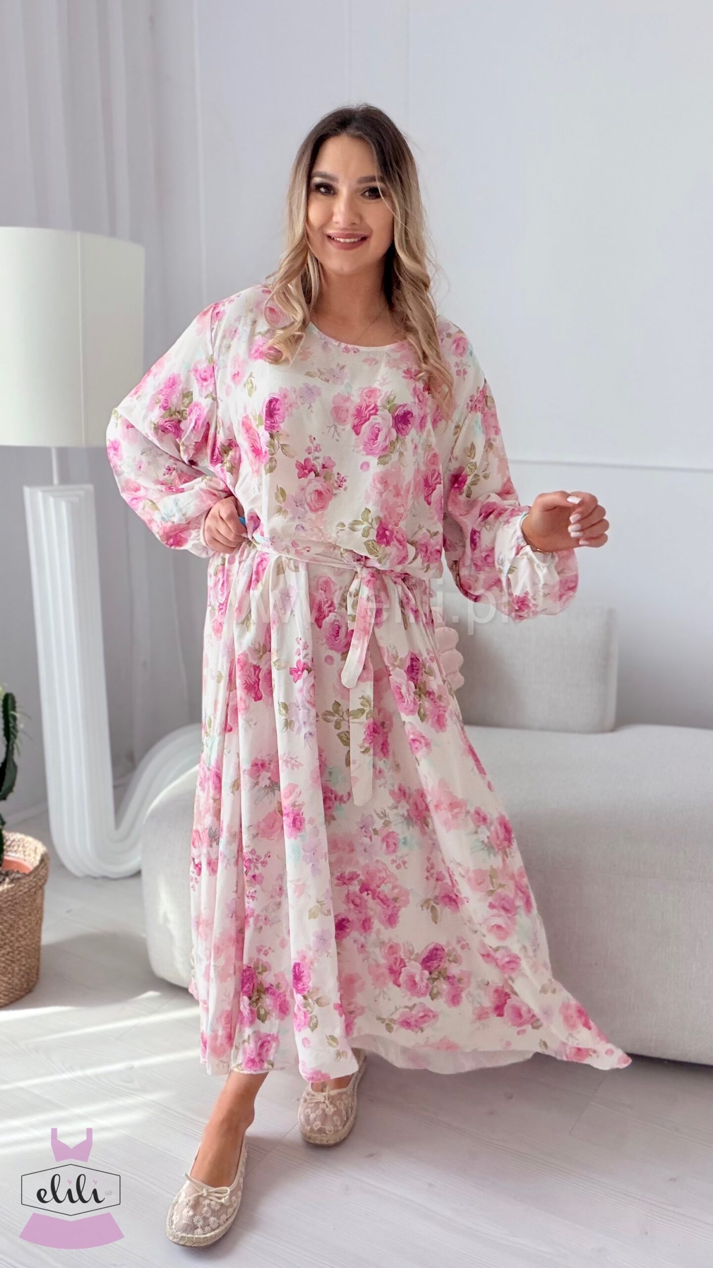 Magnolia to elegancka sukienka maxi w wersji plus size, stworzona z myślą o komforcie i kobiecym wyglądzie. Wykonana z lekkiej, przewiewnej wiskozy, pięknie układa się na sylwetce i sprawdzi się o każdej porze roku. Model bez gumki, z odcięciem w talii, pozwala na swobodne dopasowanie dzięki dołączonemu paskowi, który podkreśla figurę. To idealna propozycja dla kobiet ceniących wygodę, lekkość i ponadczasowy styl.