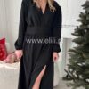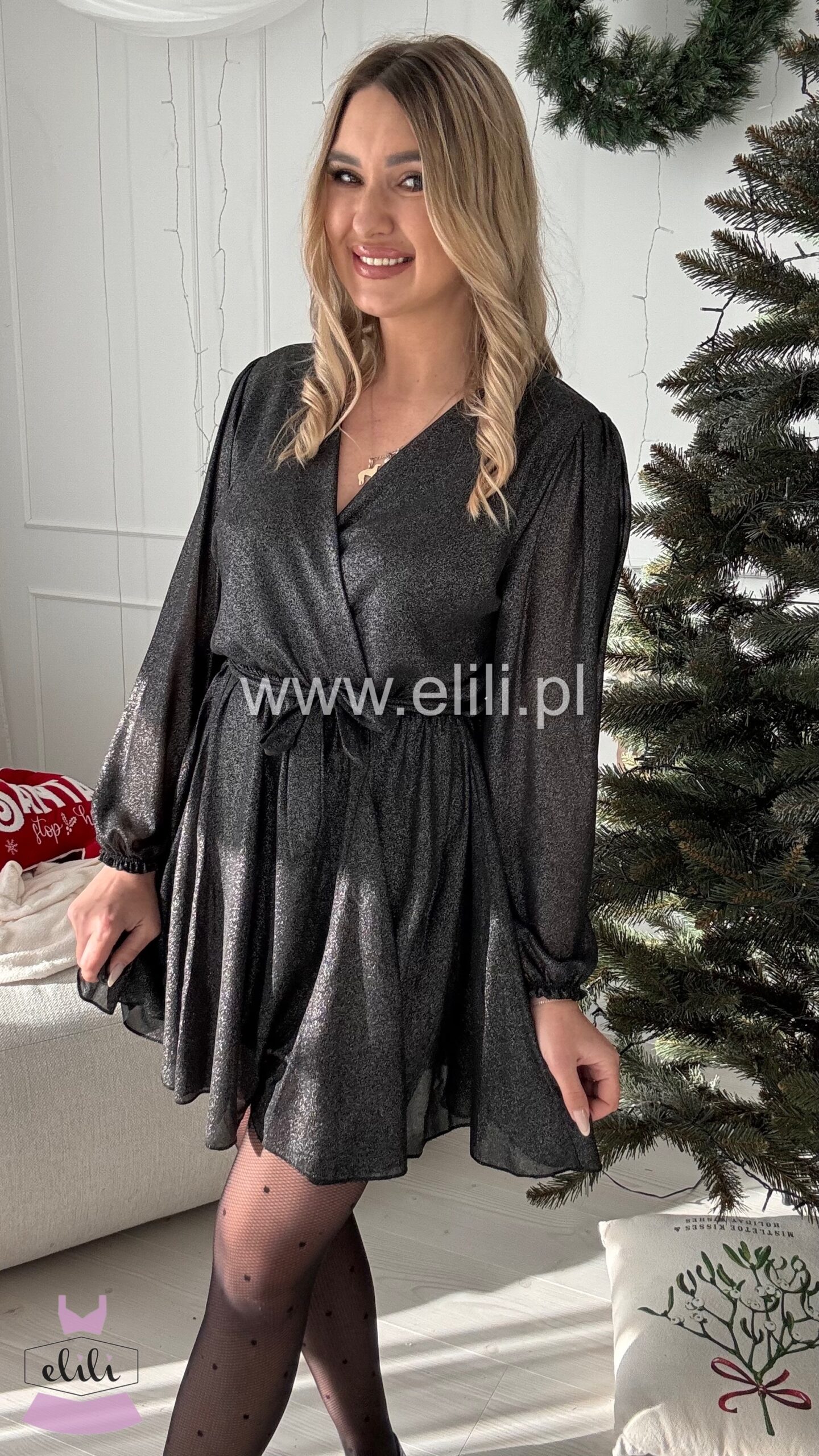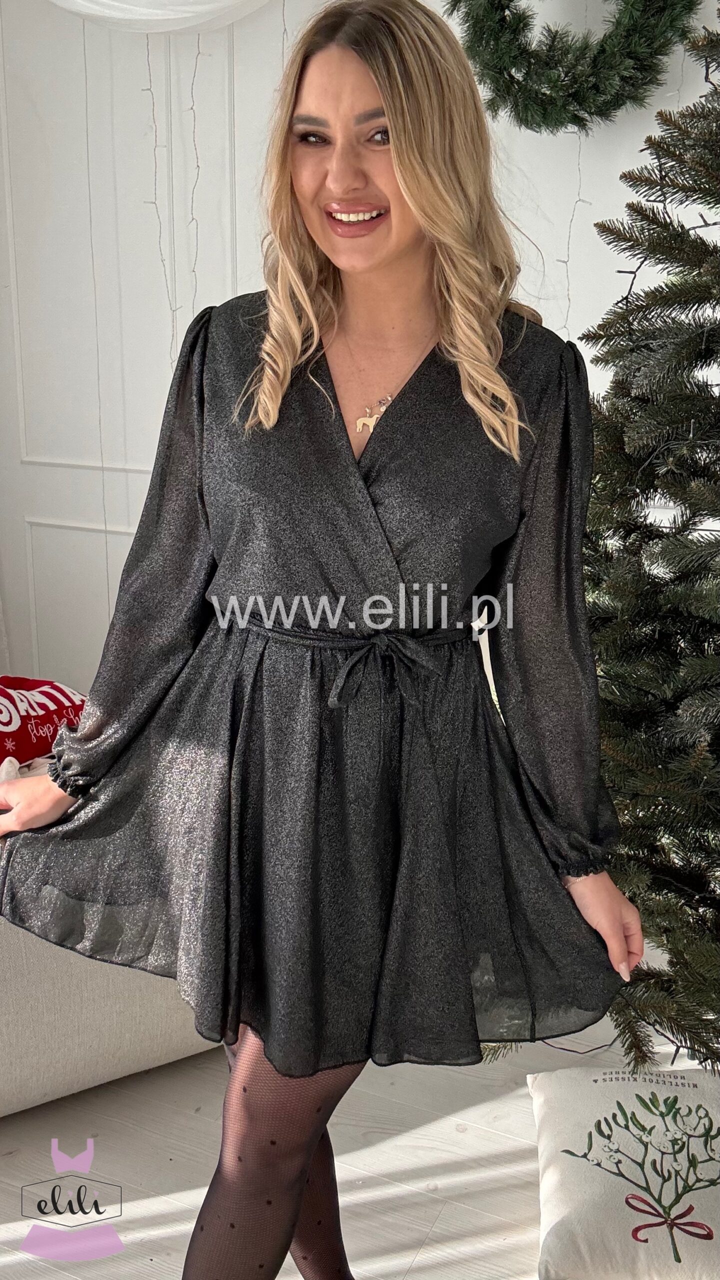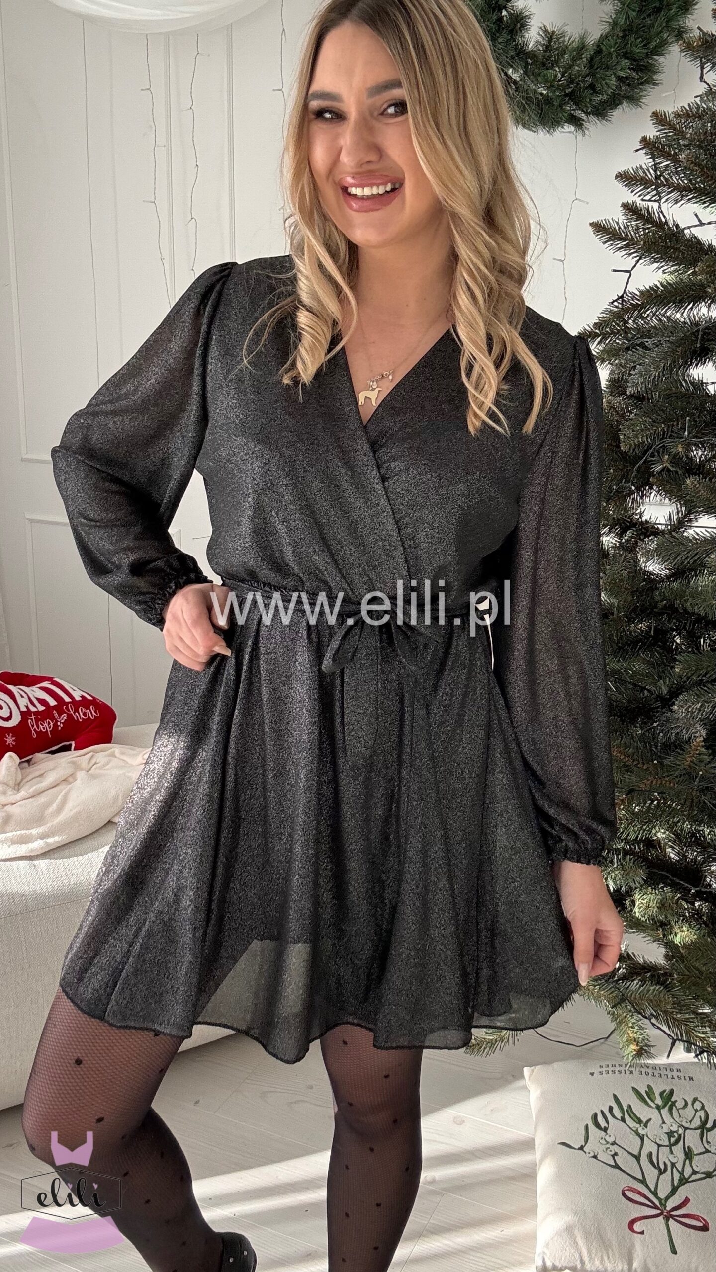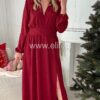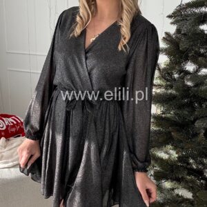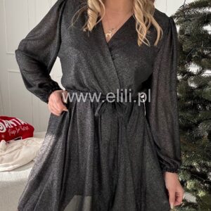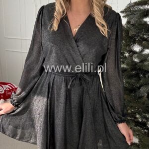 Elegancka gładka sukienka z kopertowym dekoltem oraz dołem składającym się z dwóch falbanek. Posiada gumke w talii
