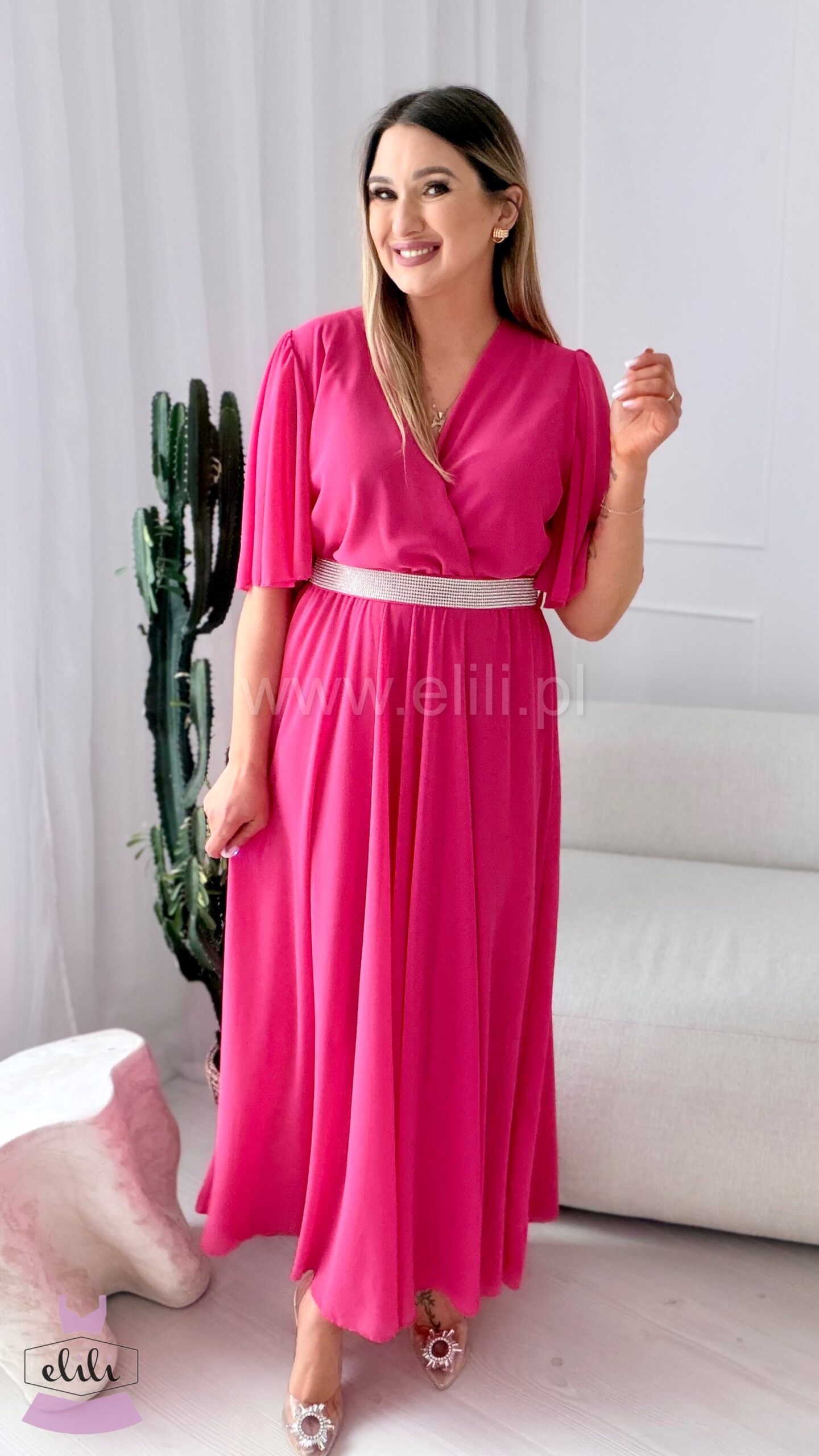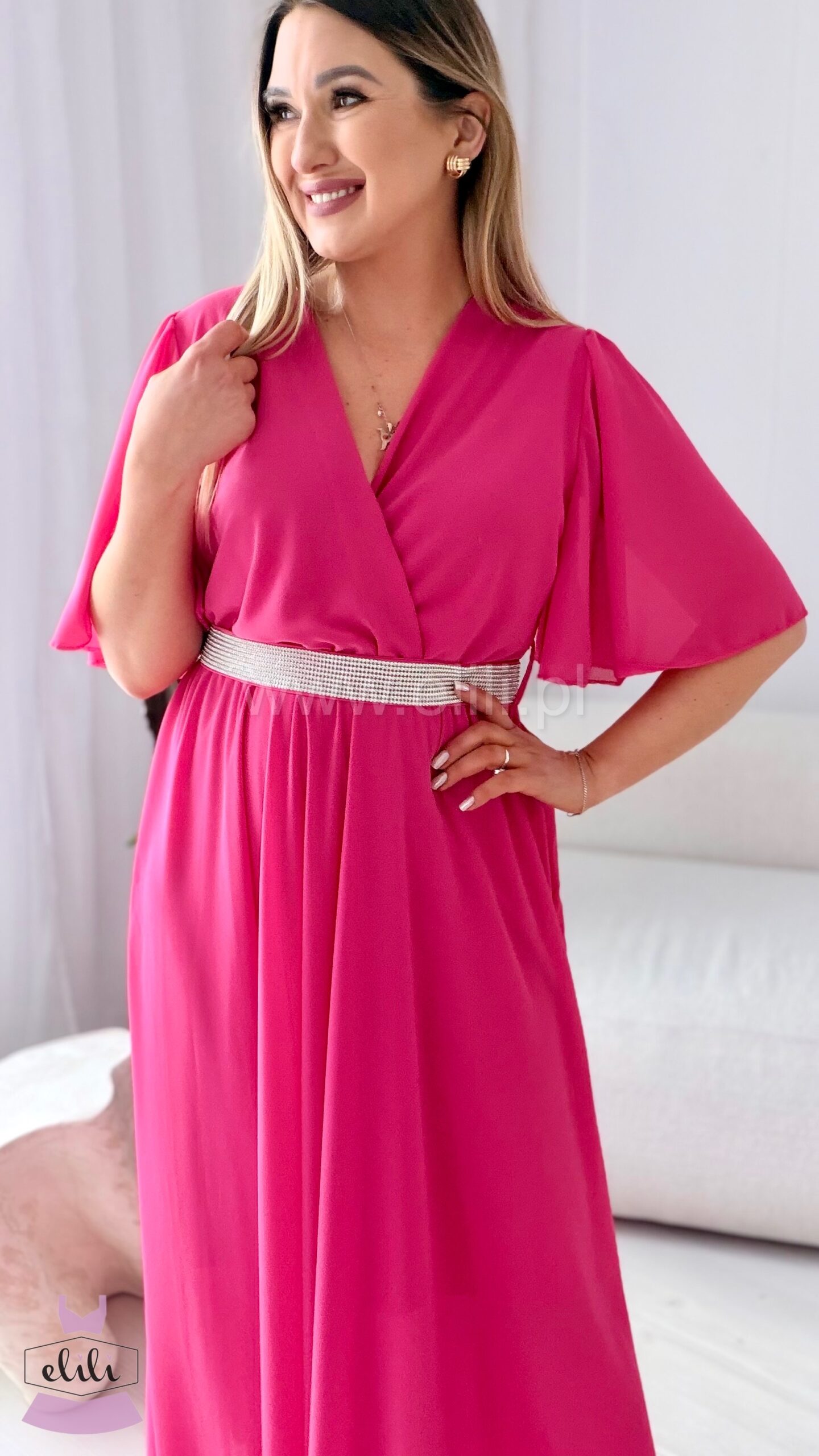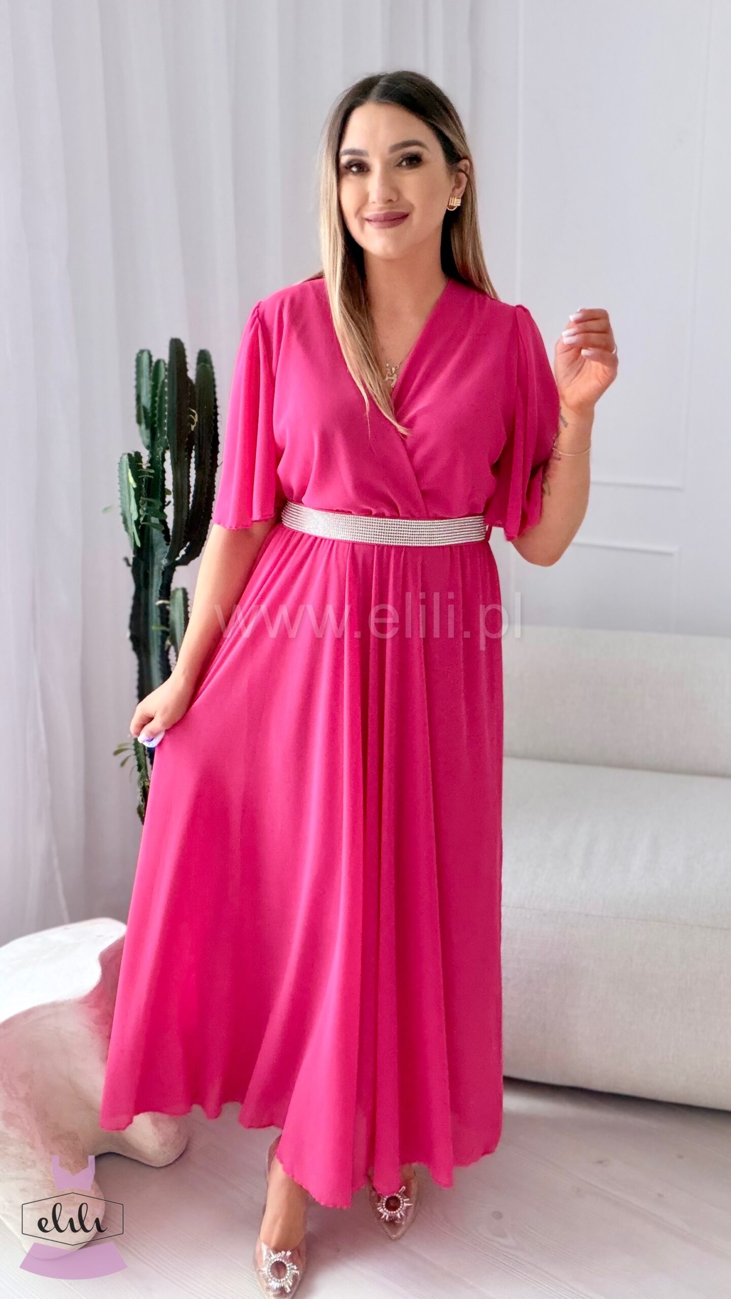 Sukienka Maxi z cyrkoniowym paskiem – elegancja i lekkość