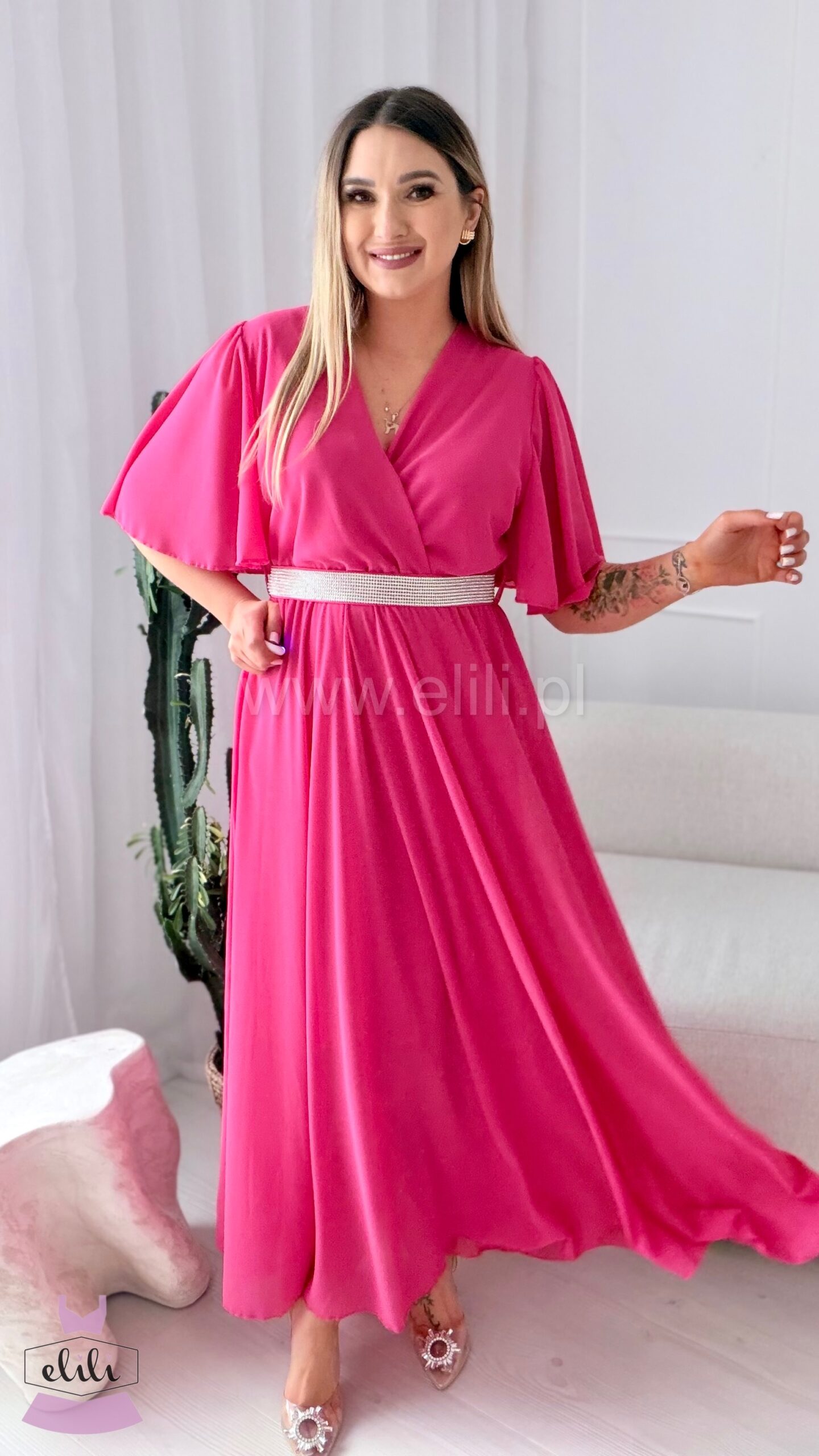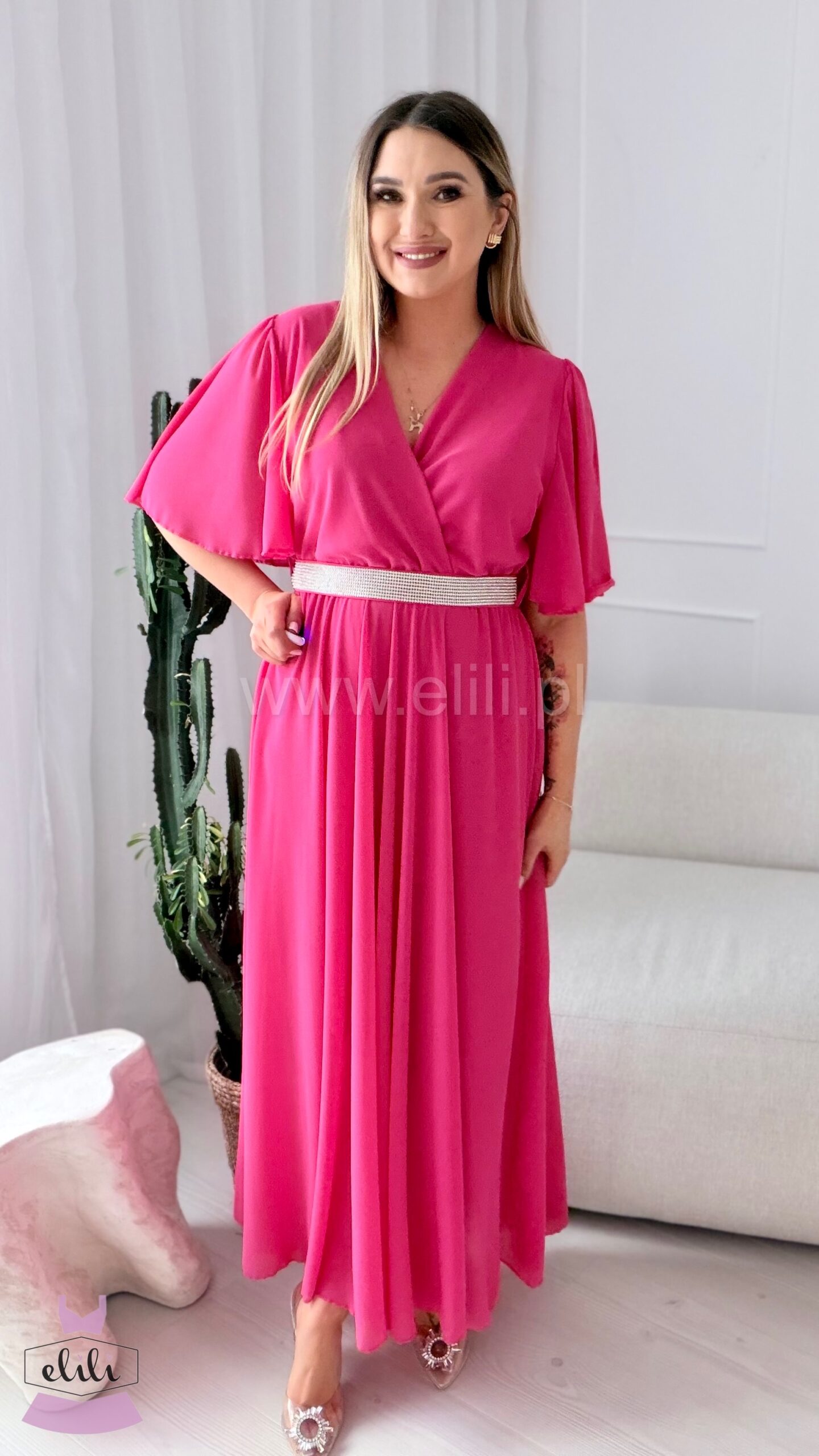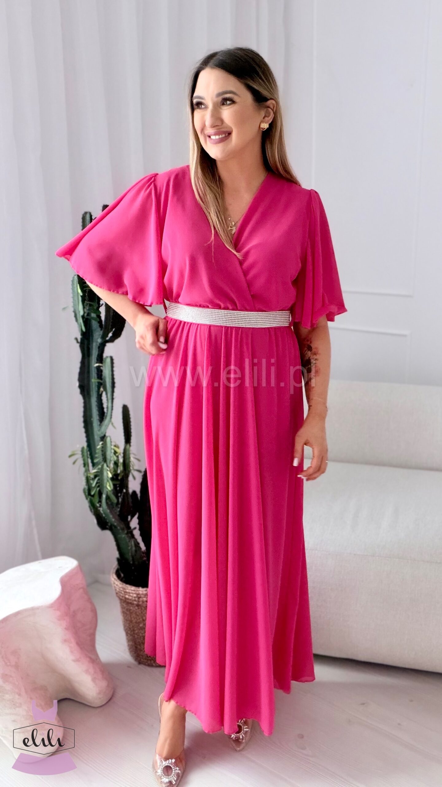 Sukienka Maxi z cyrkoniowym paskiem – elegancja i lekkość