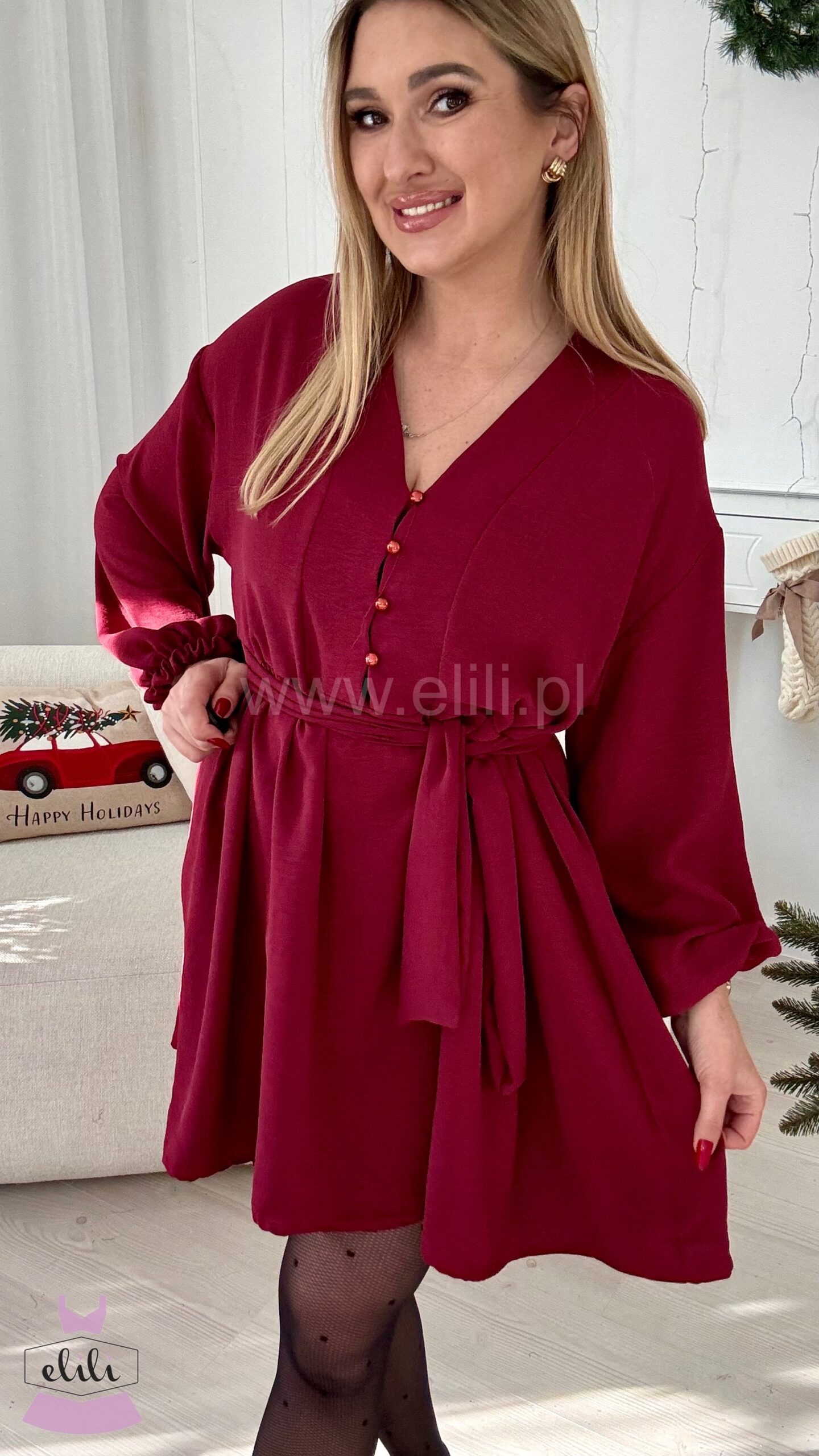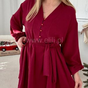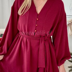 Ożyw swoją wiosenną garderobę tą wyjątkową sukienką plus size, stworzoną z myślą o komforcie i kobiecości! Wykonana w 100% z lekkiej, przewiewnej wiskozy, doskonale dopasowuje się do sylwetki, zapewniając swobodę ruchów i przyjemność noszenia. Sukienka zachwyca eleganckim dekoltem w serek, subtelnie rozpinanym na guziki, co dodaje jej delikatnego uroku. Talia podkreślona wiązanym paskiem pięknie modeluje figurę, nadając jej harmonijne proporcje. Posiada rozpinane guziki