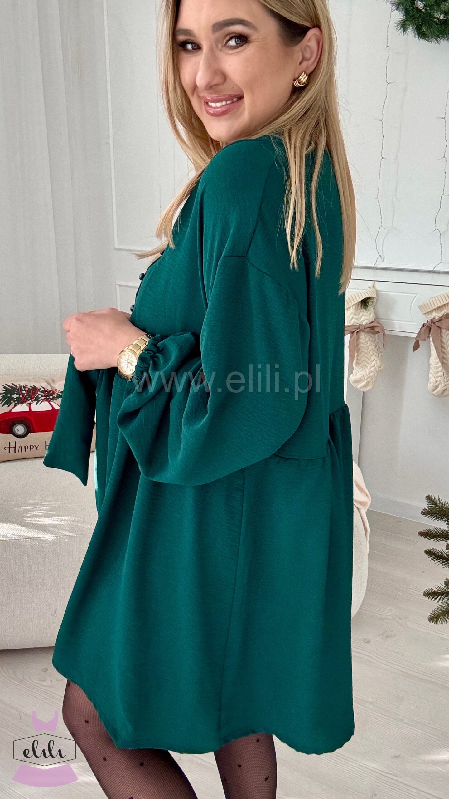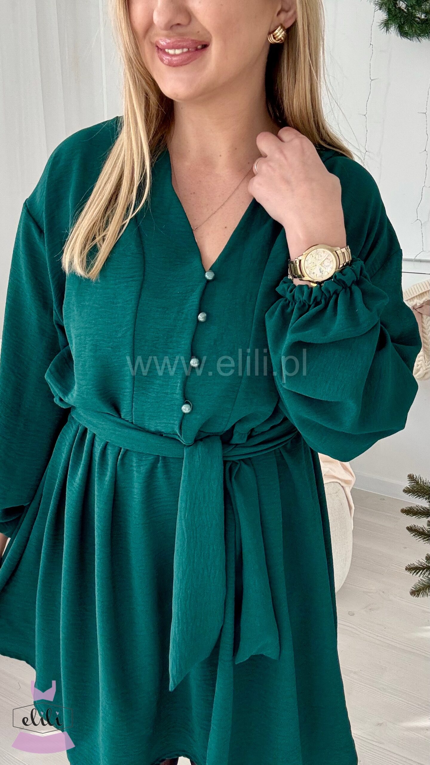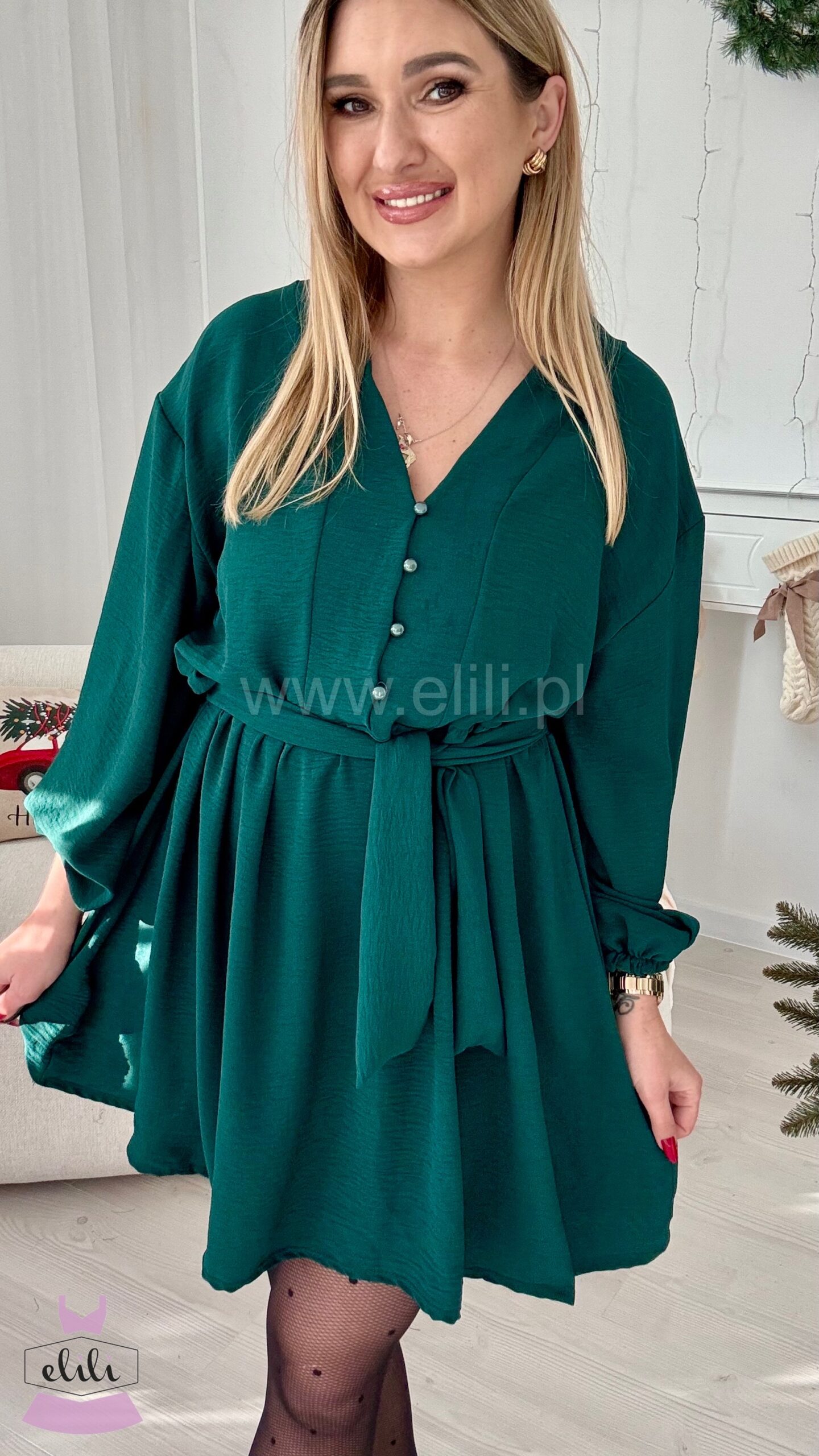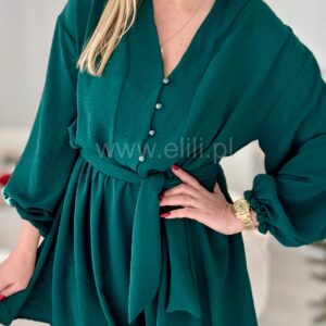 Ożyw swoją wiosenną garderobę tą wyjątkową sukienką plus size, stworzoną z myślą o komforcie i kobiecości! Wykonana w 100% z lekkiej, przewiewnej wiskozy, doskonale dopasowuje się do sylwetki, zapewniając swobodę ruchów i przyjemność noszenia. Sukienka zachwyca eleganckim dekoltem w serek, subtelnie rozpinanym na guziki, co dodaje jej delikatnego uroku. Talia podkreślona wiązanym paskiem pięknie modeluje figurę, nadając jej harmonijne proporcje. Posiada rozpinane guziki