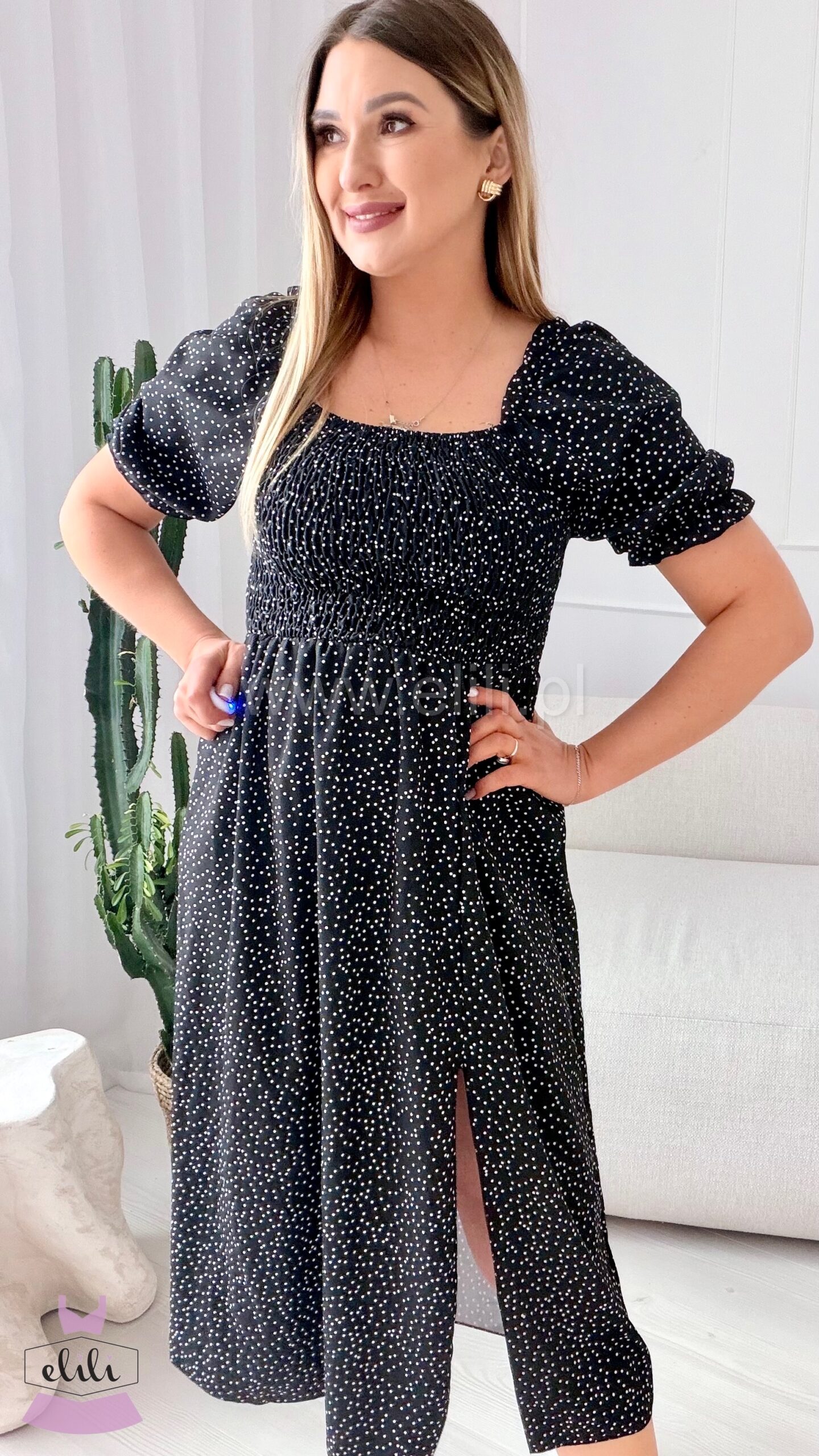Sukienka Milano midi czarna w kropeczki