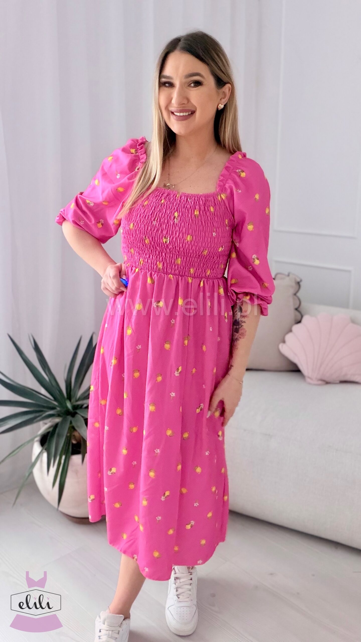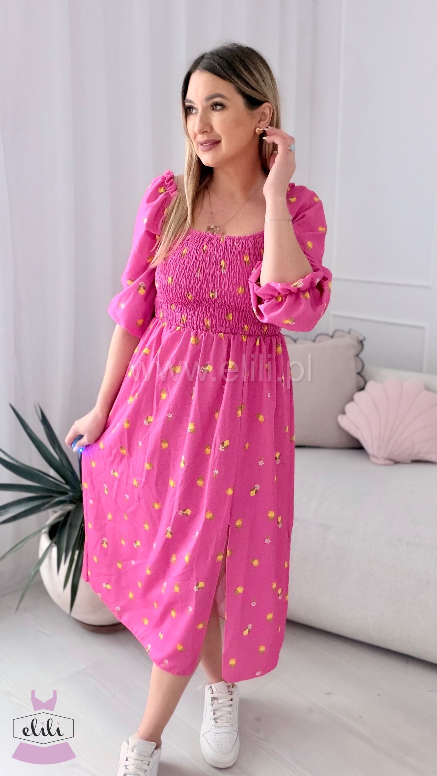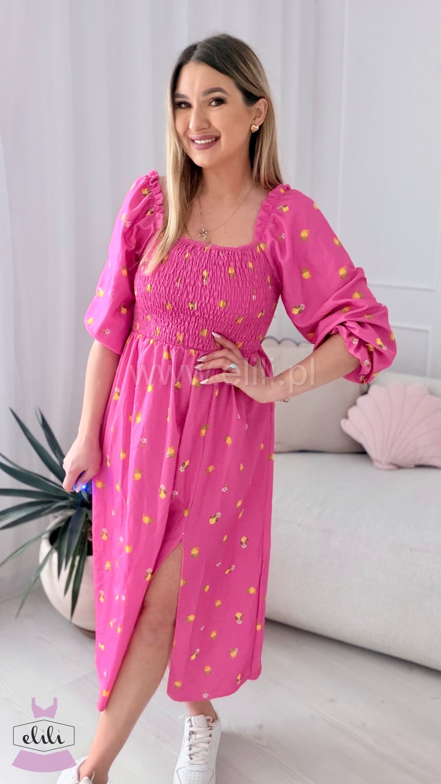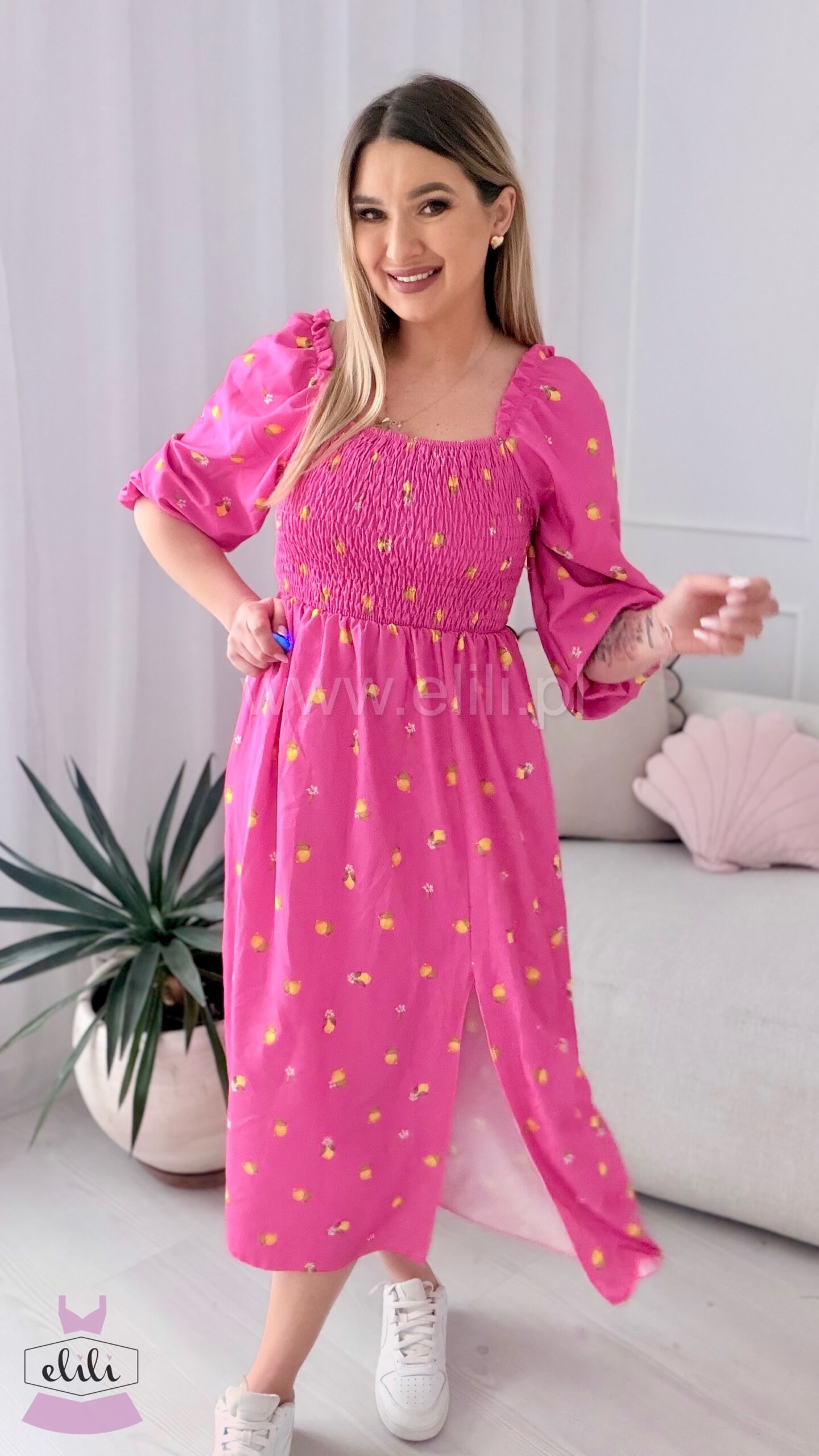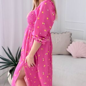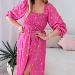 Sukienka Milano midi różowa w cytrynki