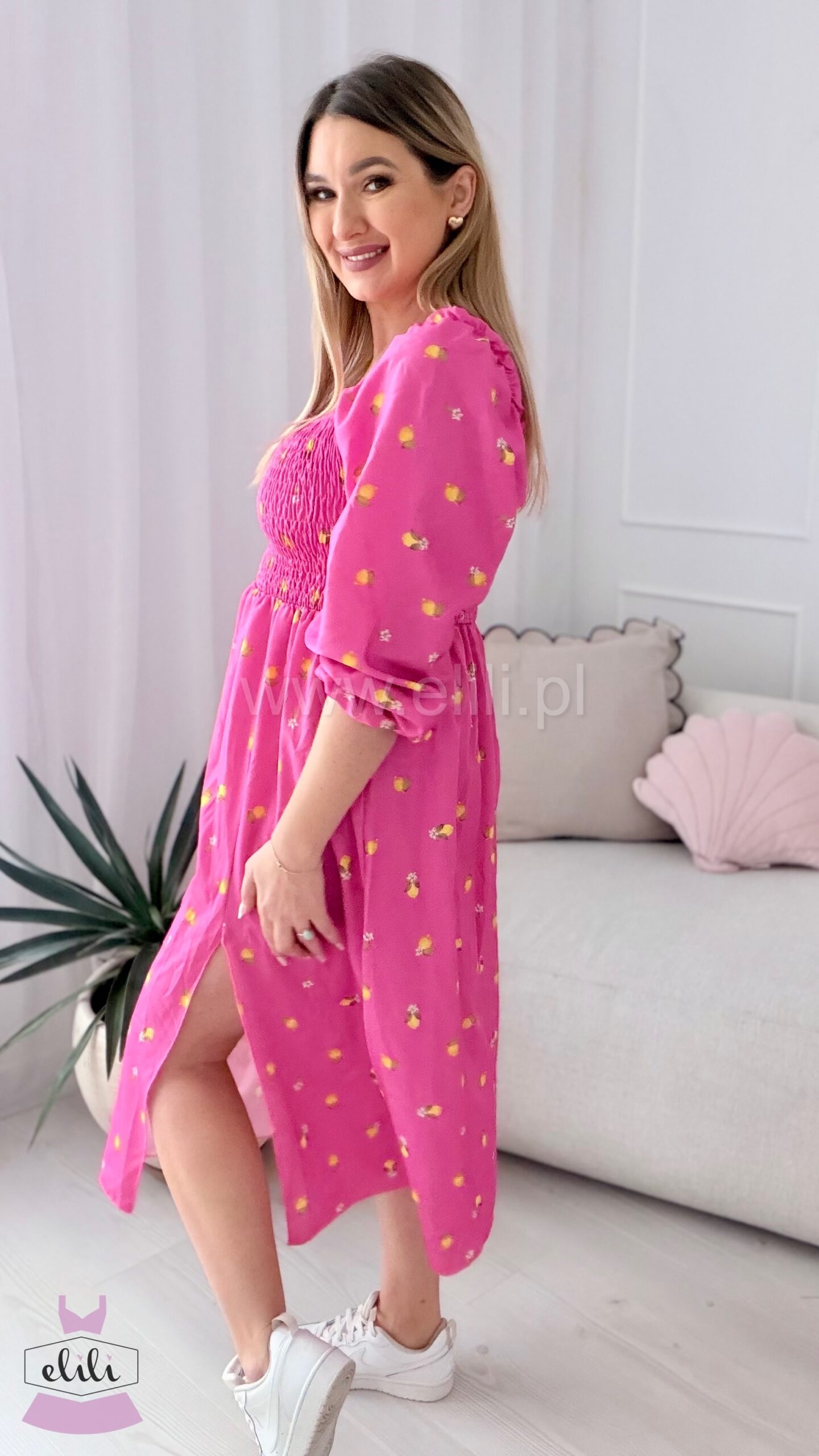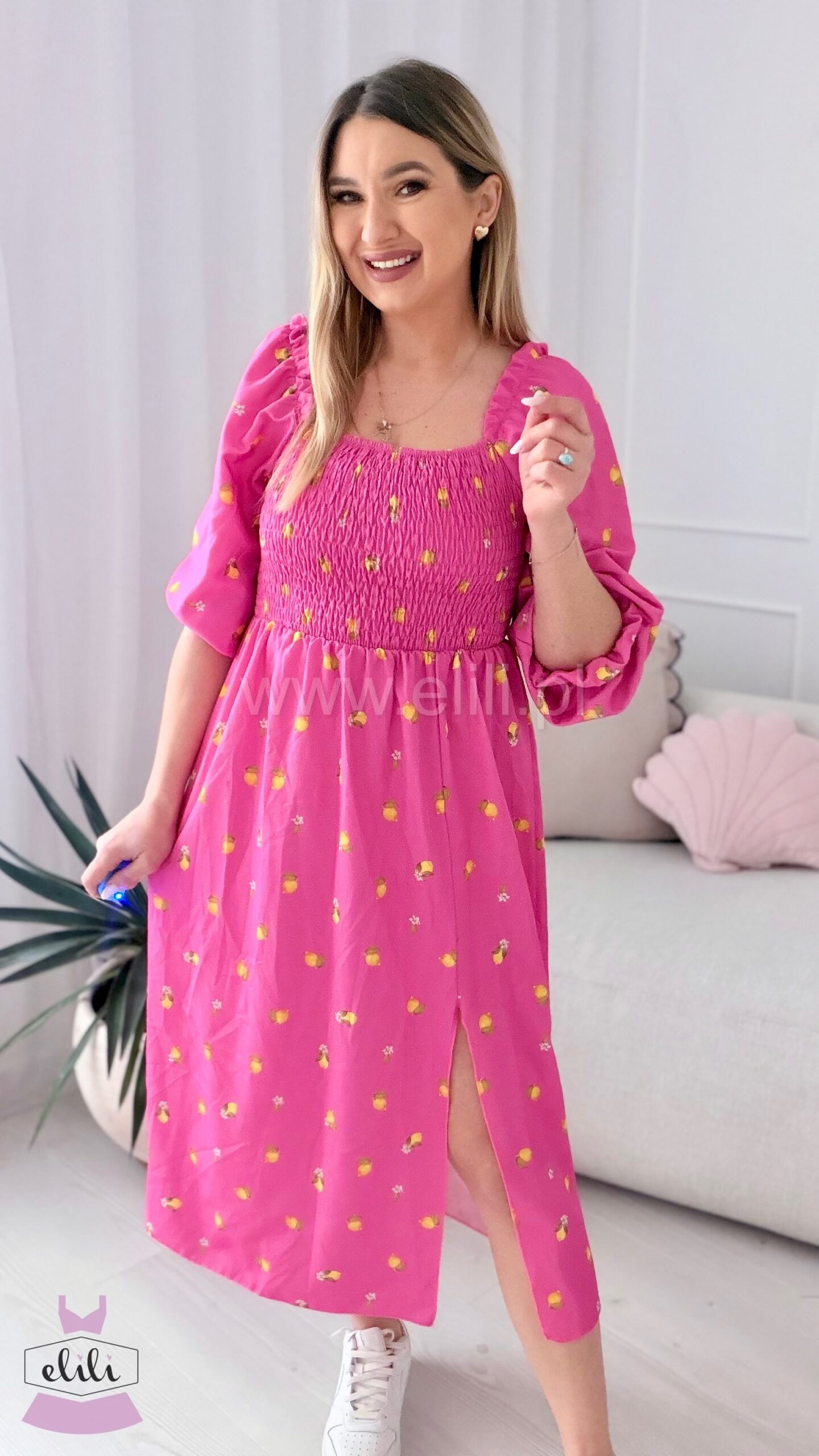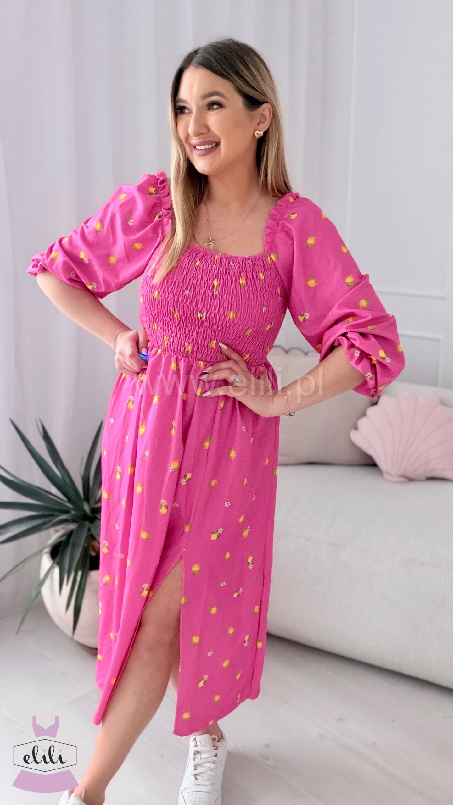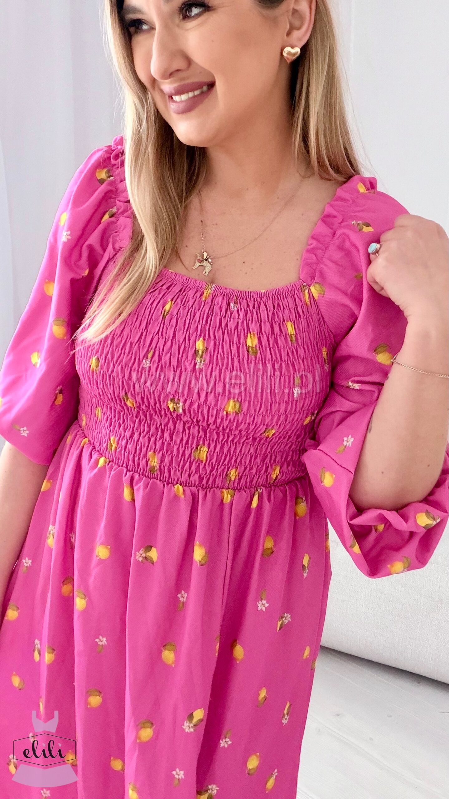 Sukienka Milano midi różowa w cytrynki