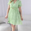Subtelna, elegancka i niezwykle wygodna. Sukienka Nadia zachwyca tłoczonymi kwiatami, które nadają jej wyjątkowej faktury i romantycznego charakteru. Kopertowy dekolt pięknie podkreśla sylwetkę, a gumka w talii dopasowuje się do figury, zapewniając komfort noszenia. Dodatkowy pasek pozwala jeszcze bardziej zaakcentować talię i stworzyć idealne proporcje