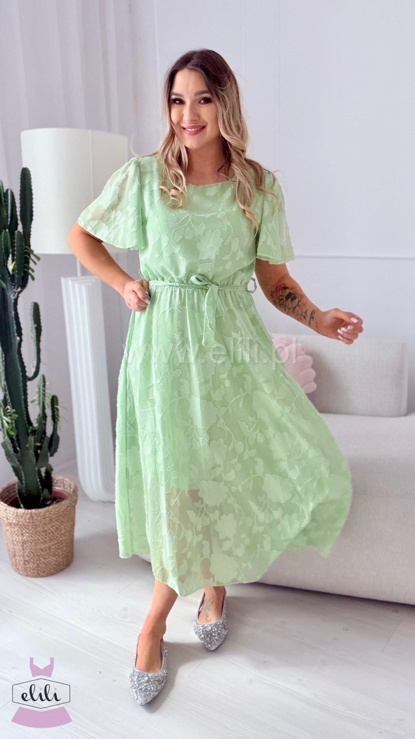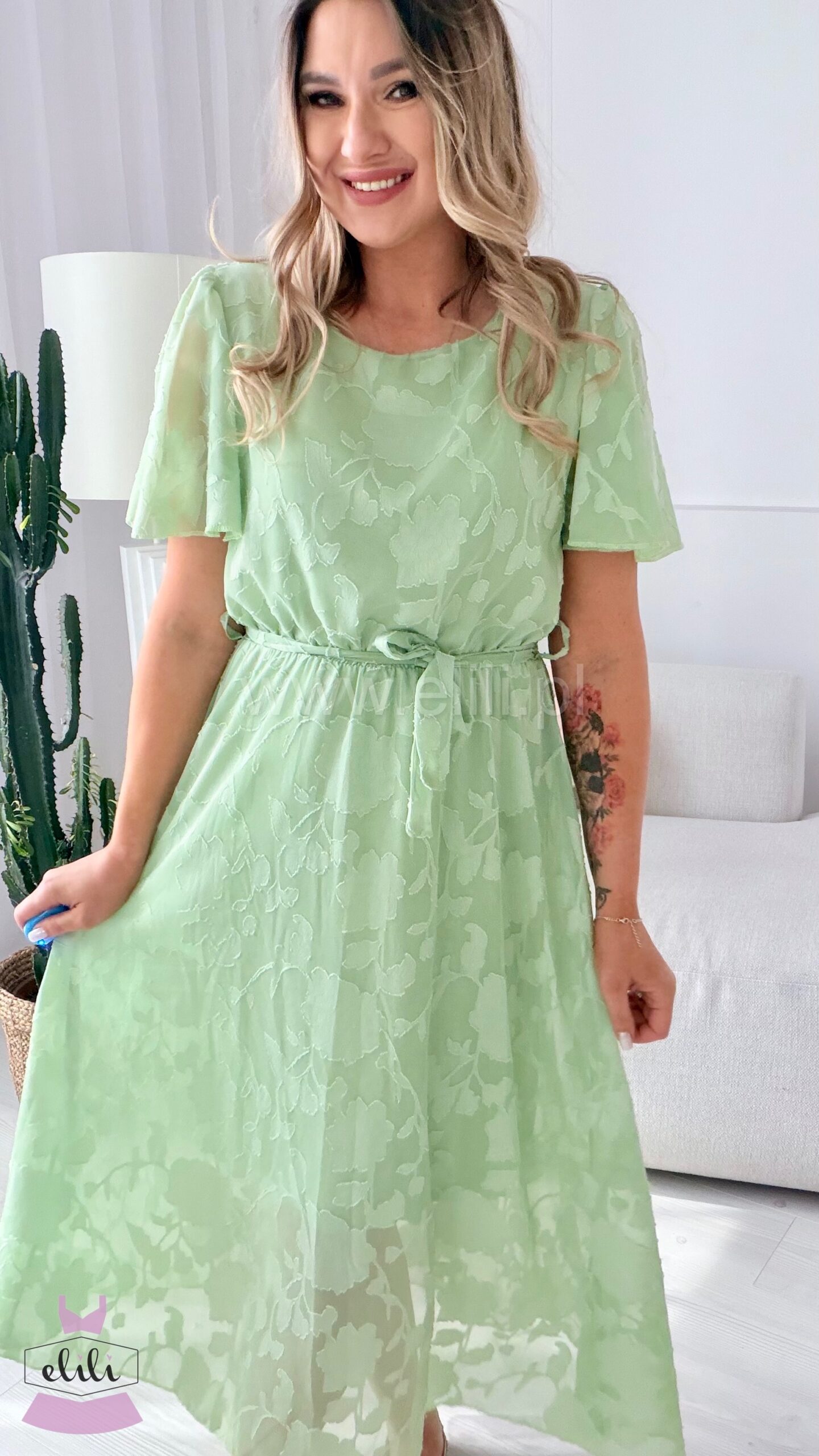 Nala to elegancka odsłona modelu Nel, stworzona z myślą o wyjątkowych okazjach. Sukienka ma zabudowany dekolt pod szyję, co nadaje jej szyku i klasy. Elastyczna gumka w talii oraz pasek do przewiązania pięknie podkreślają sylwetkę i pozwalają na idealne dopasowanie. Wiskozowa podszewka zapewnia komfort noszenia i lekkość. To ponadczasowy, kobiecy model idealny na uroczystości i eleganckie wyjścia.