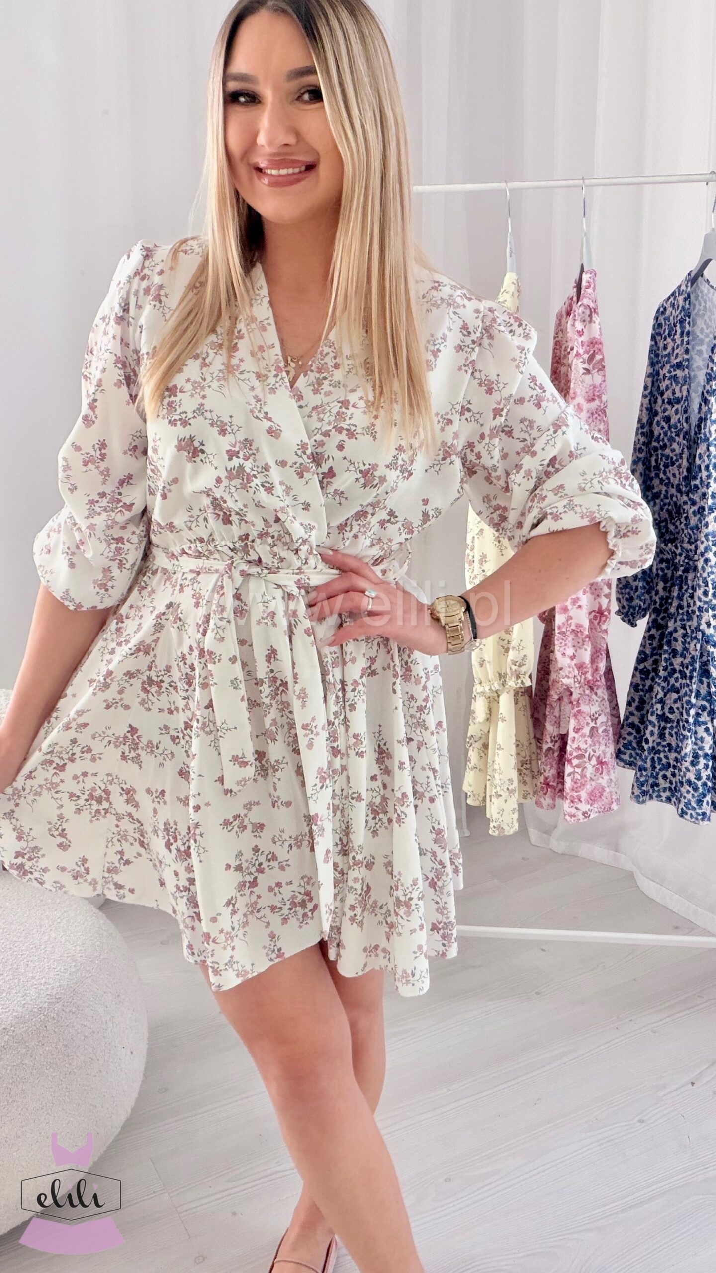 Sukienka Oliwia biała w kwiatuszki