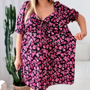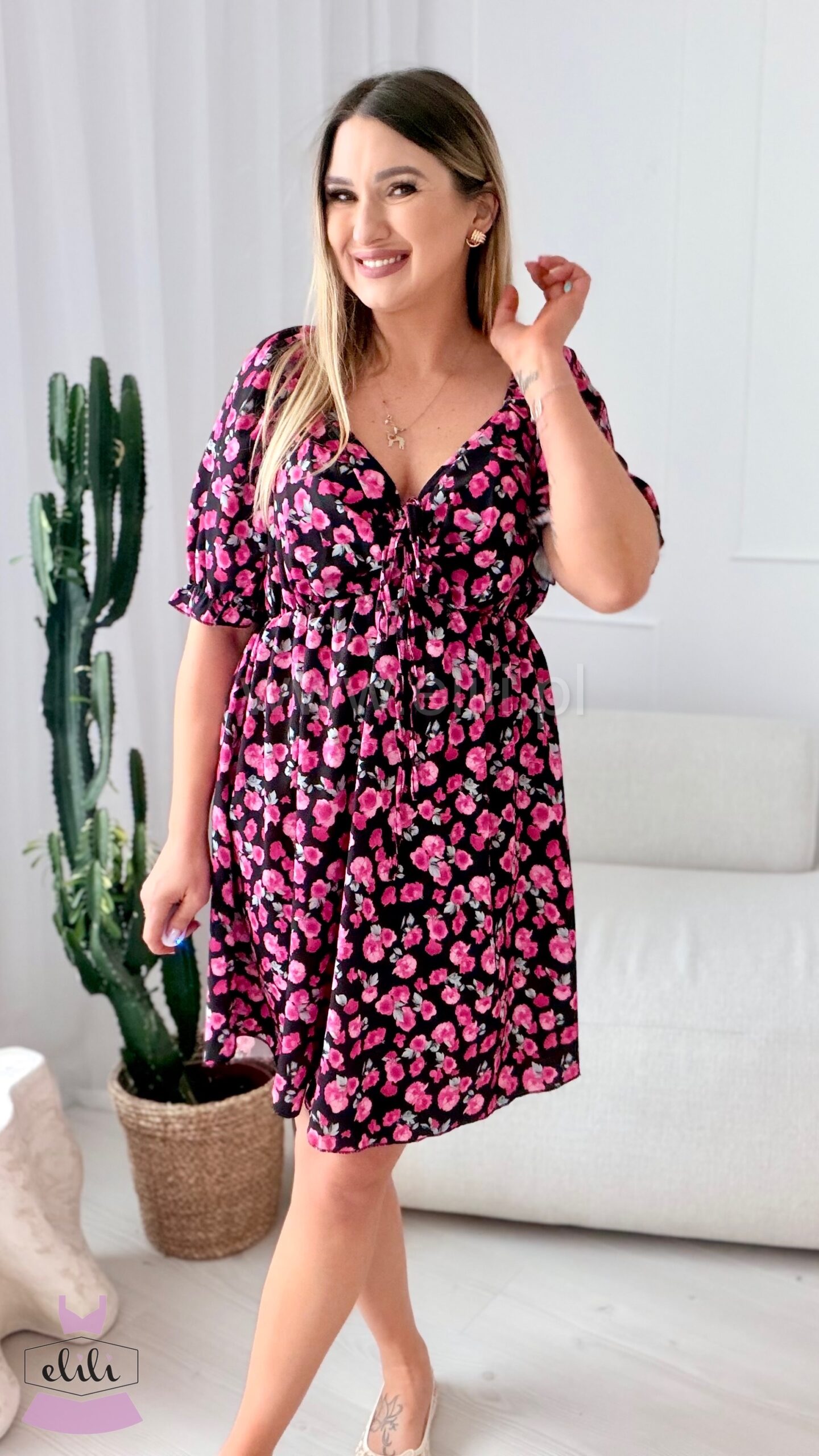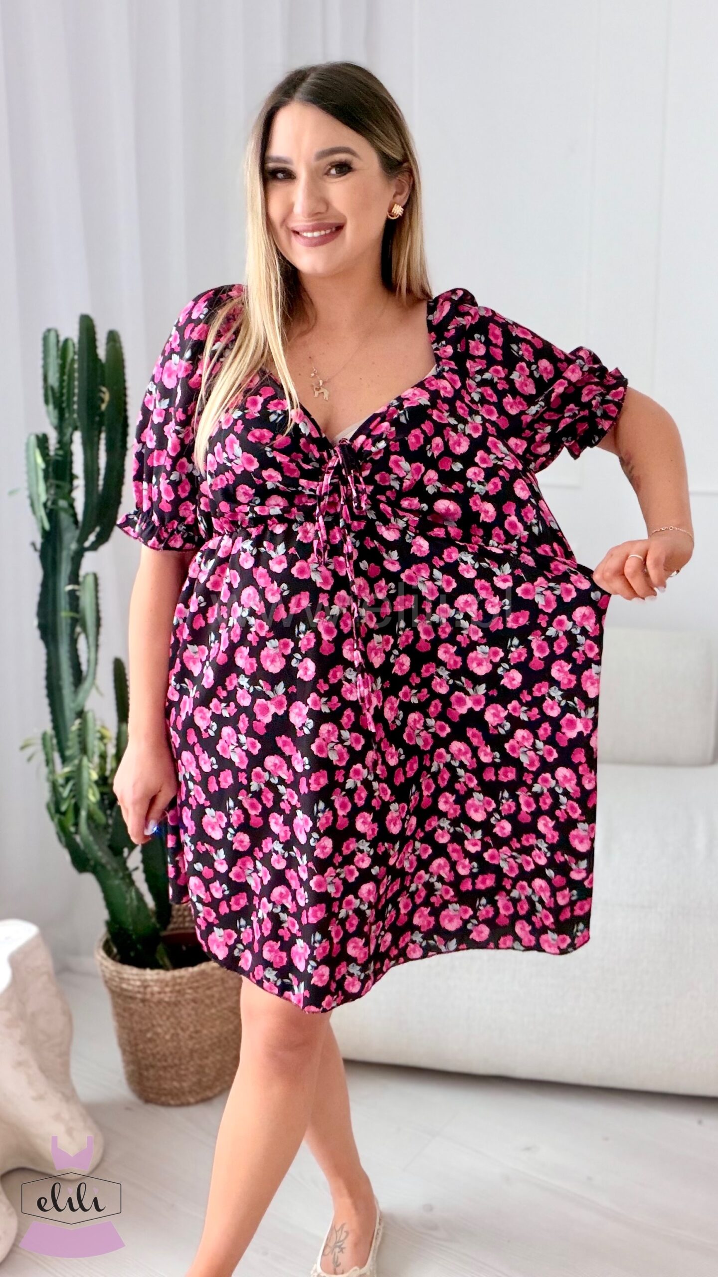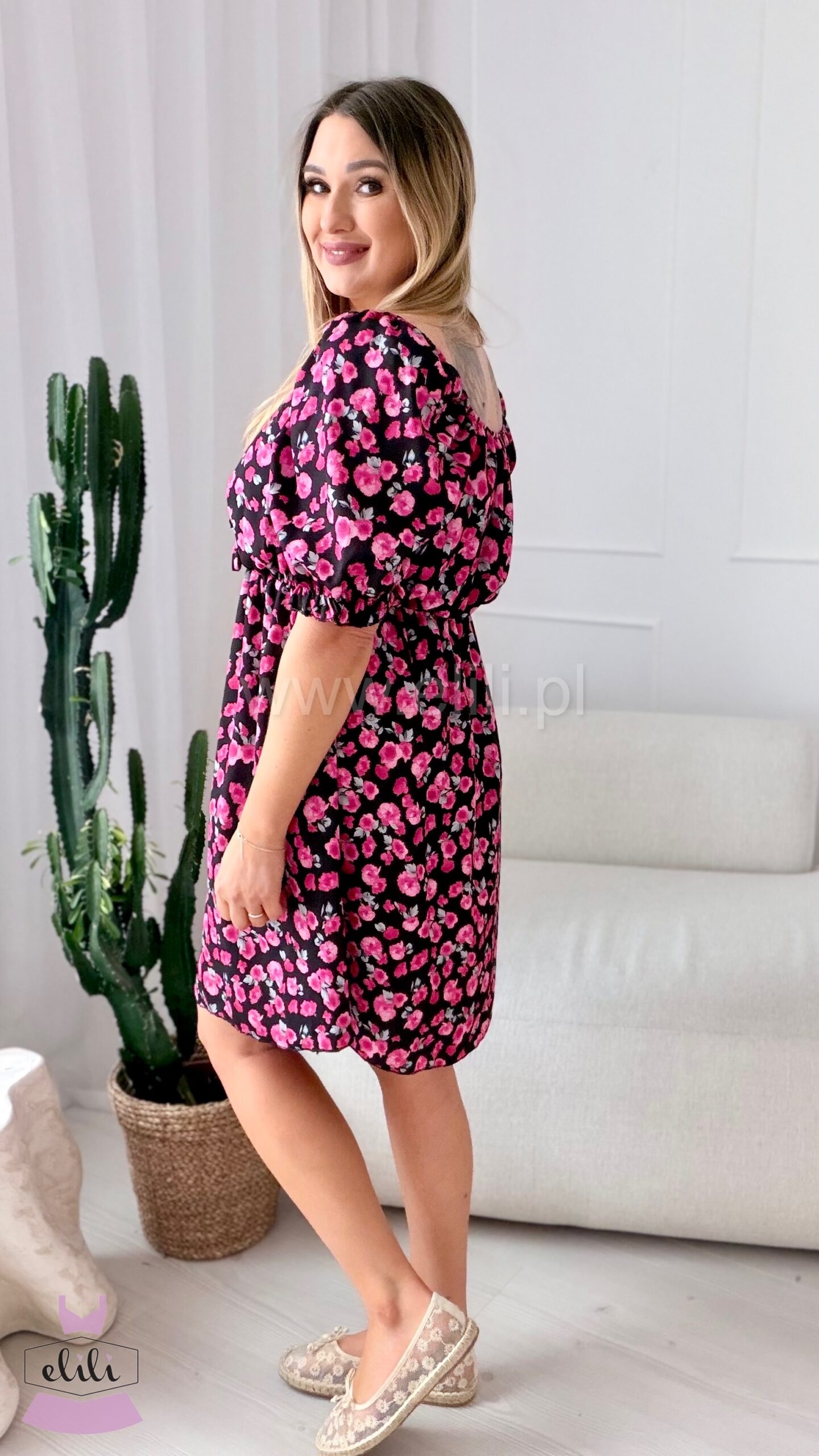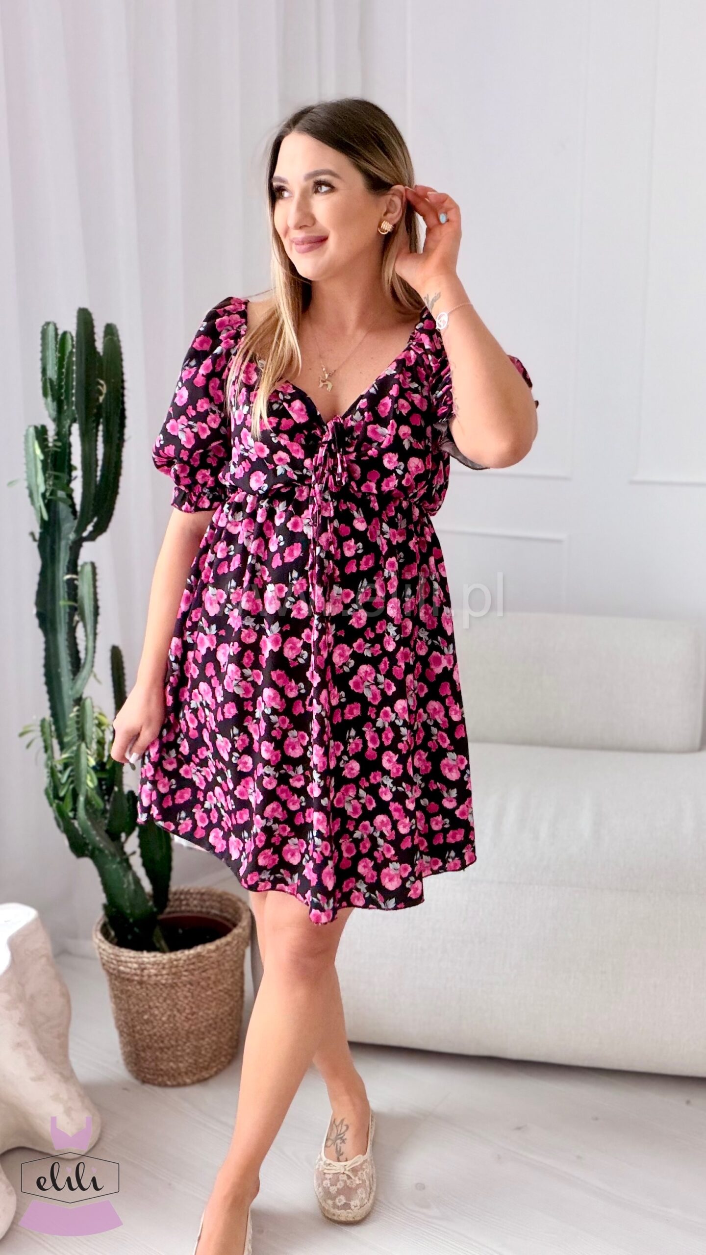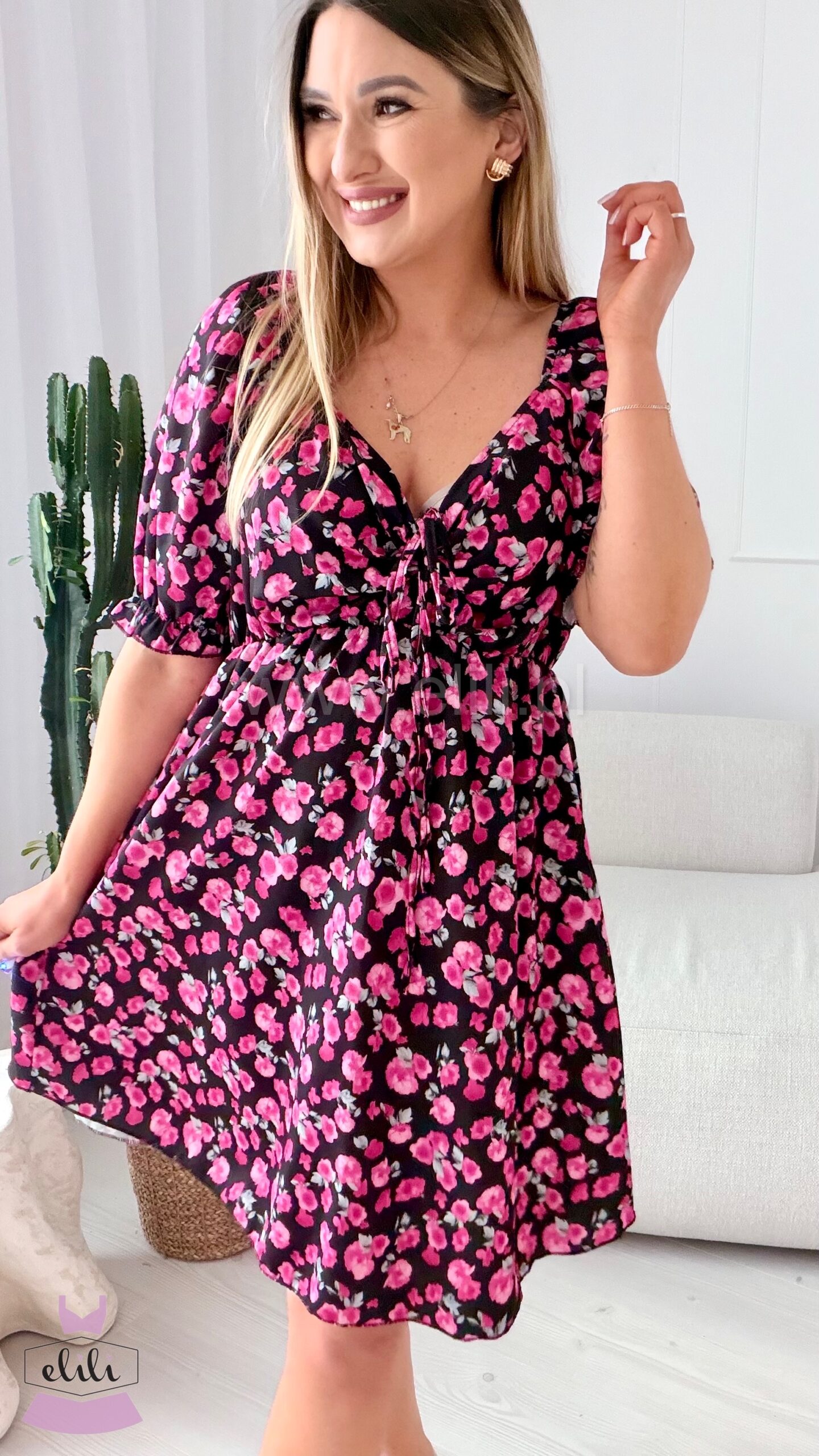 Sukienka uszyta z bardzo miękkiej i przyjemnej w dotyku bawełny. Dekolt ściągany troczkiem