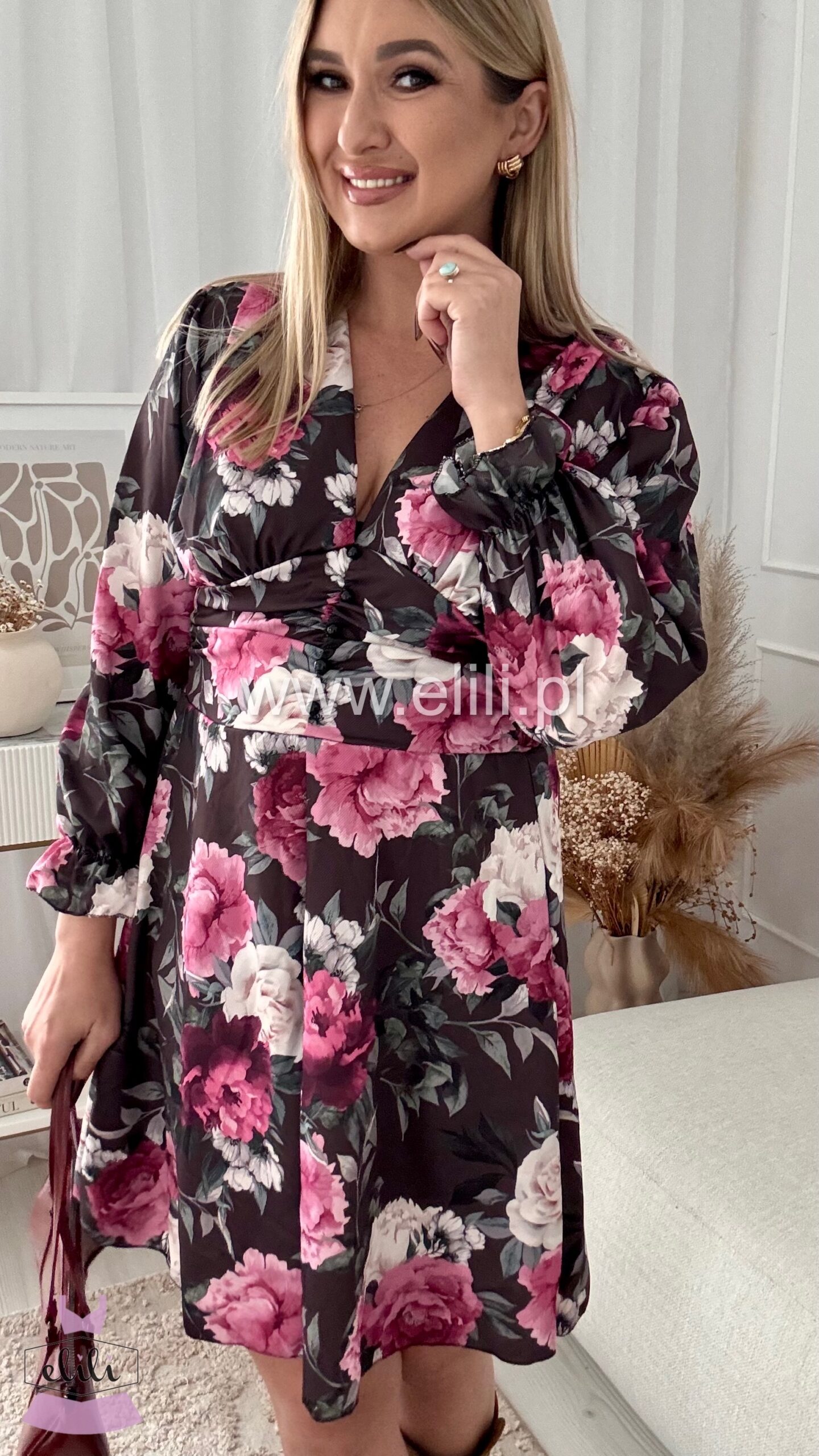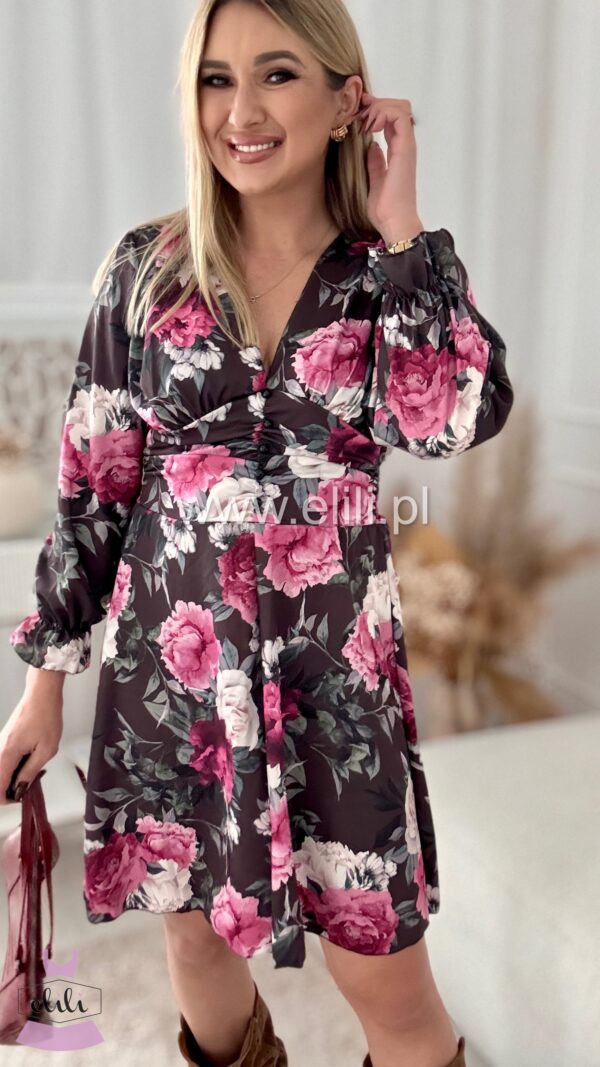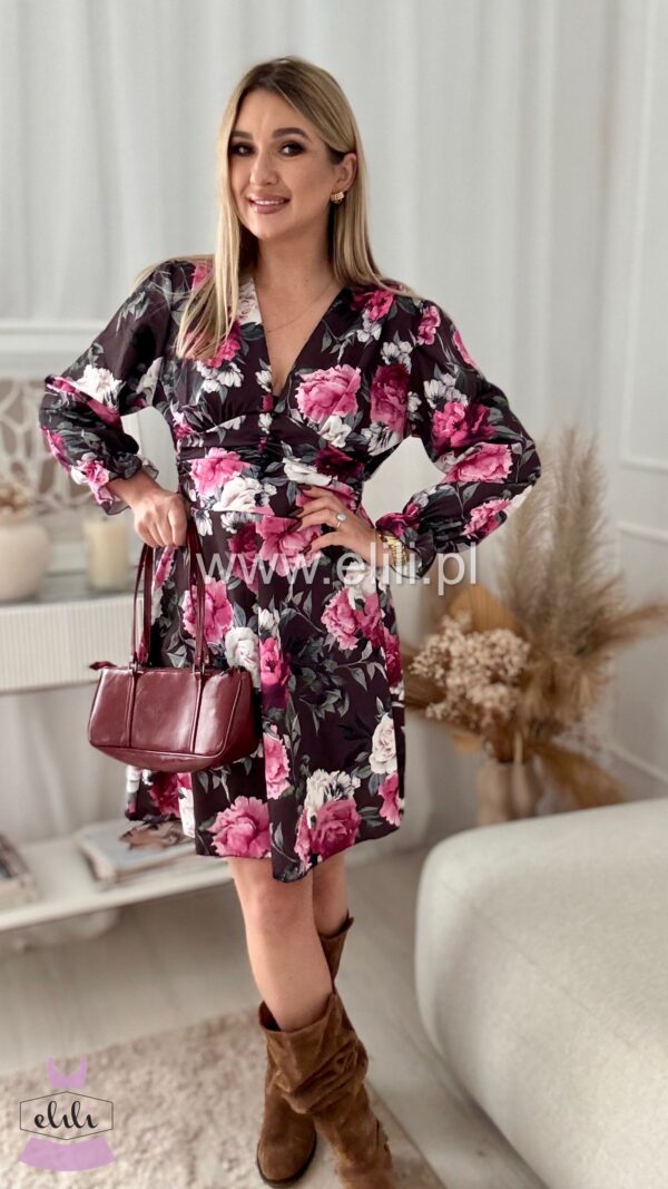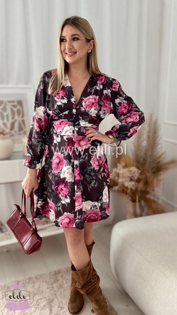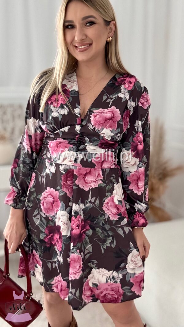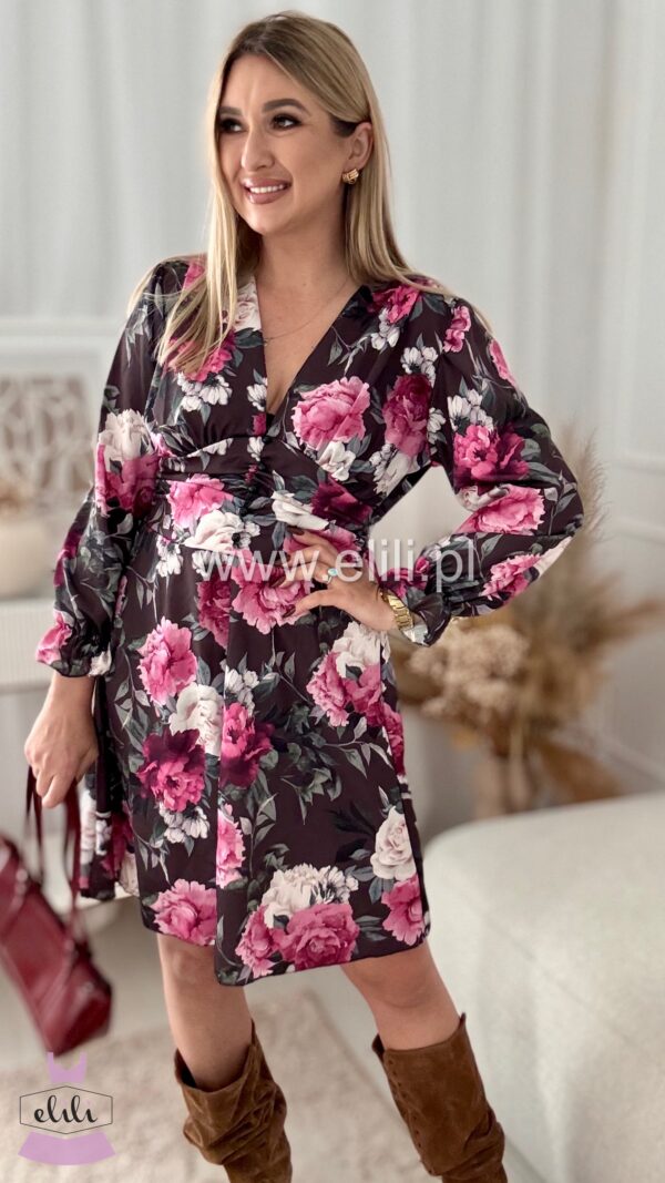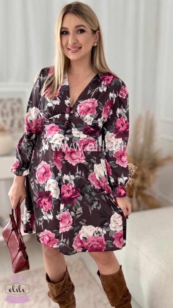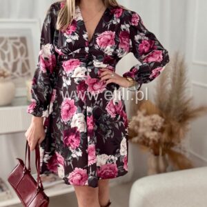 Nasz bestseller! Urocza sukienka z dopasowanym wcięciem w talii, przepięknie ją podkreślającym. Z tyłu posiada gumonici dzięki czemu pięknie dopasowuje sie do sylwetki. Posiada dekolt w ksztaŁcie LITERY v.
