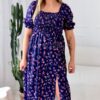 Plisowany dół dodaje jej klasy i sprawia, że sylwetka prezentuje się smukło i harmonijnie. W zestawie znajduje się pasek, który podkreśla talię i pozwala idealnie dopasować sukienkę do figury. Tkanina w wytłaczane kwiaty nadaje całości wyjątkowej tekstury i romantycznego wyrazu.