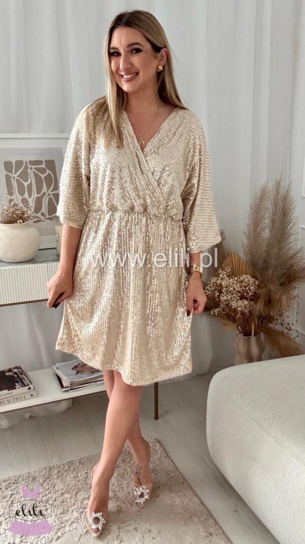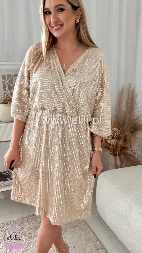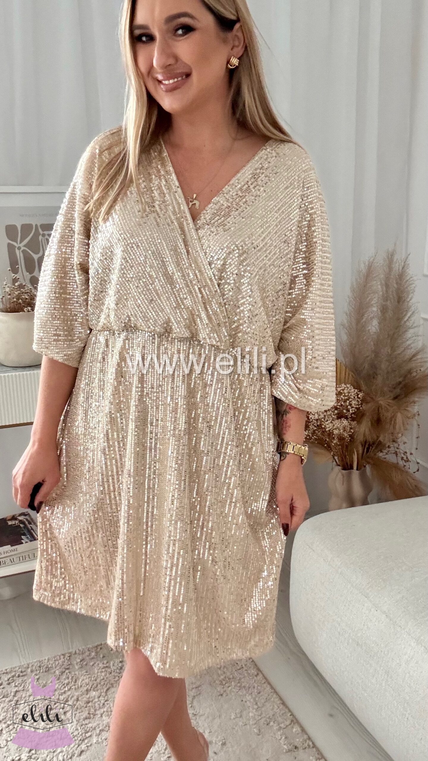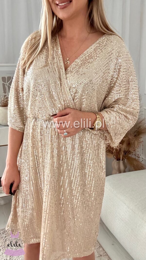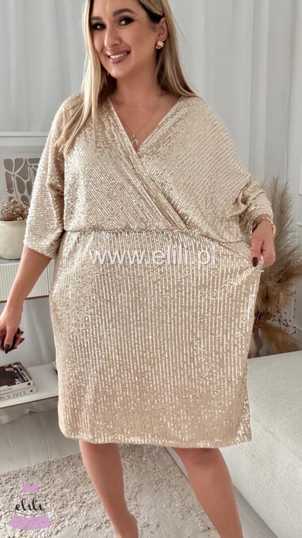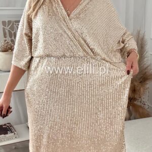 Cekinowa sukienka w rozmiarze plus size z kopertowym dekoltem i gumką w talii