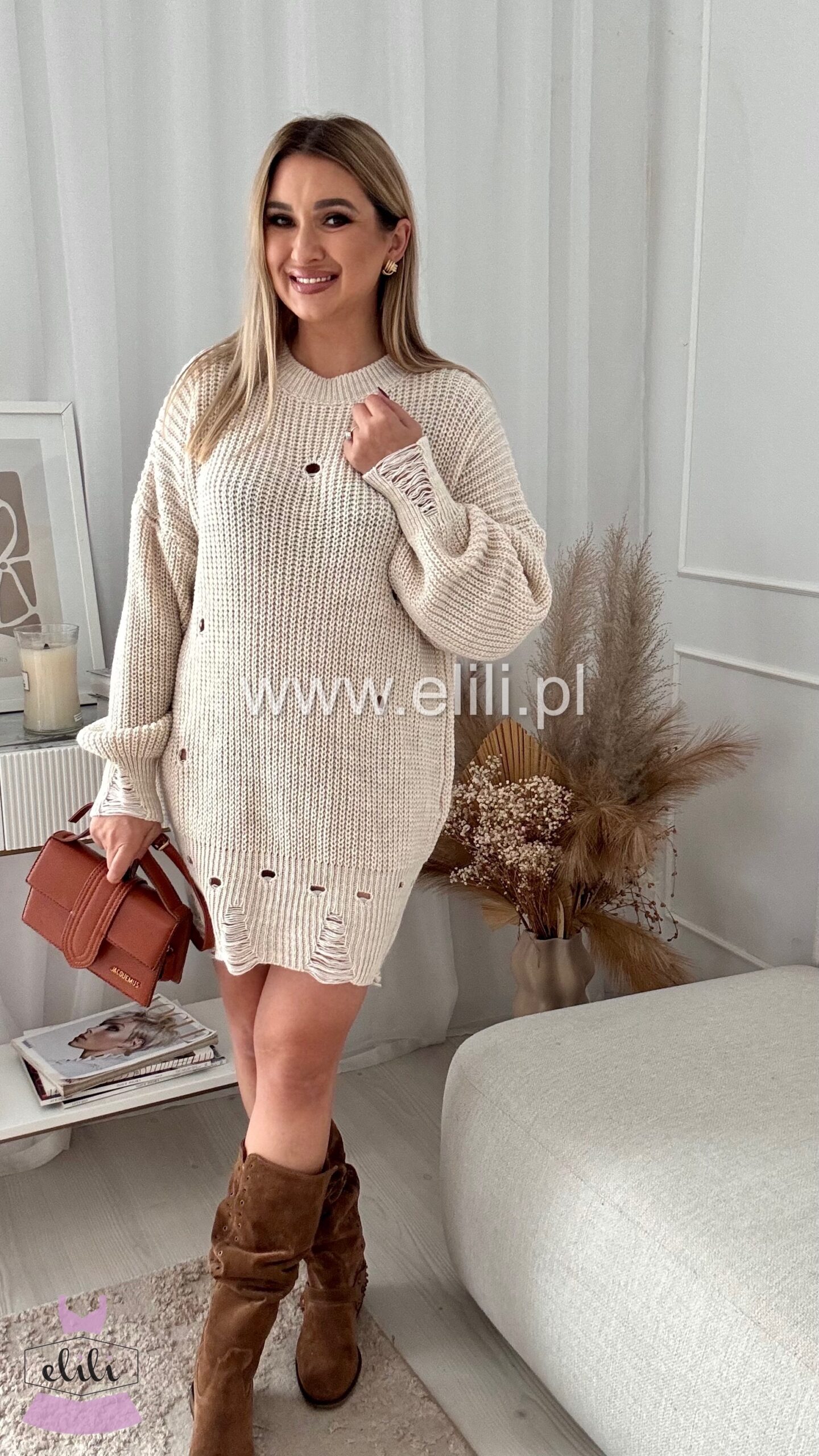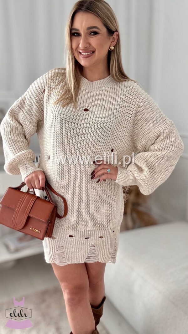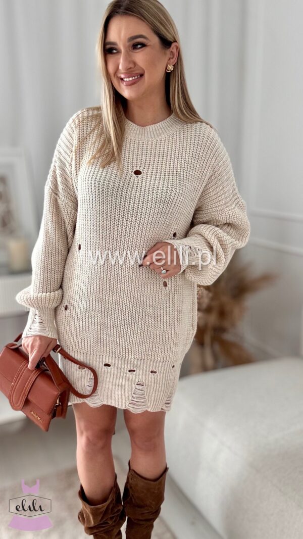 Sweterkowy bardzo elastyczny model sukienki która możesz nosić równiez jako tunika