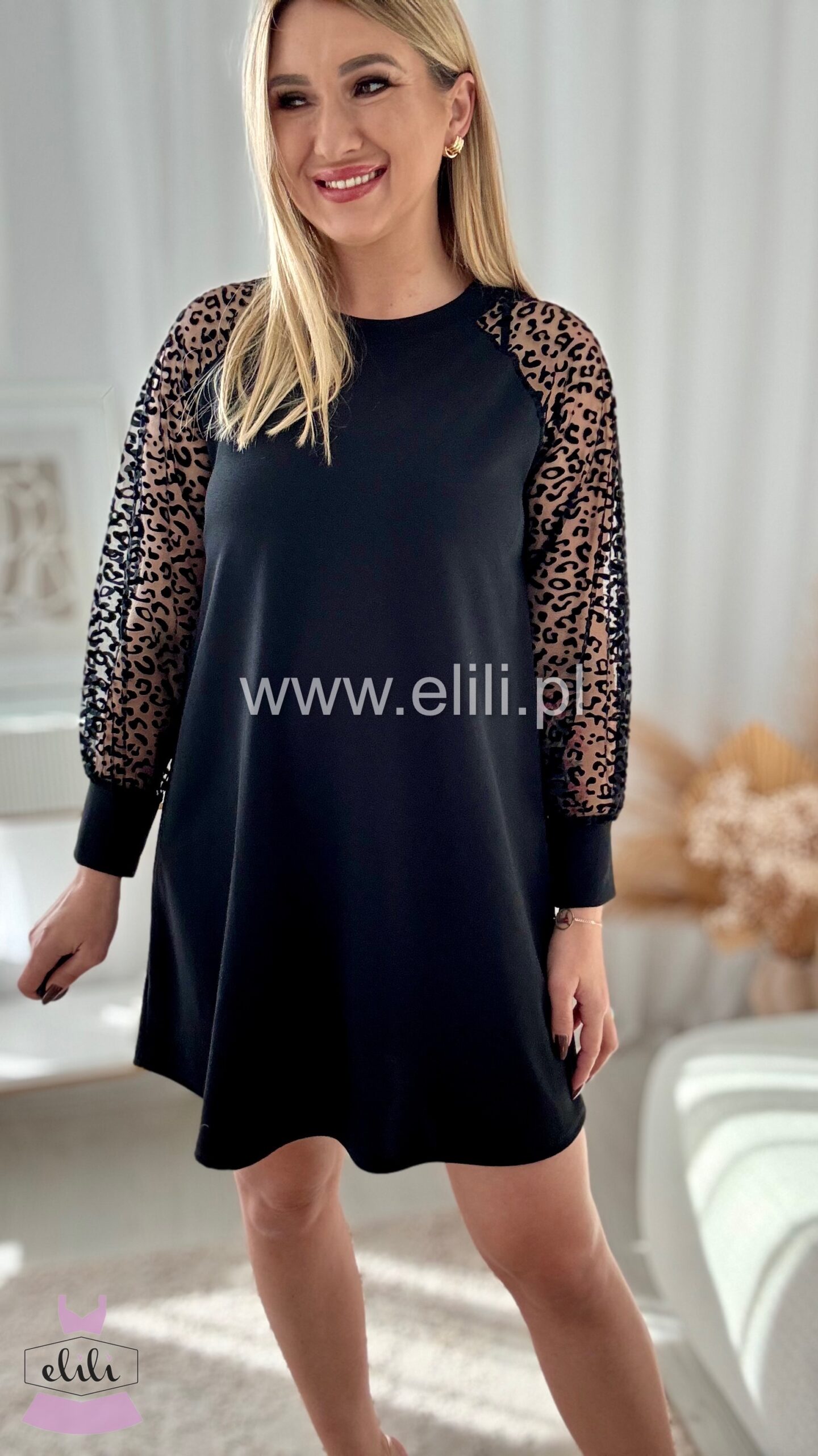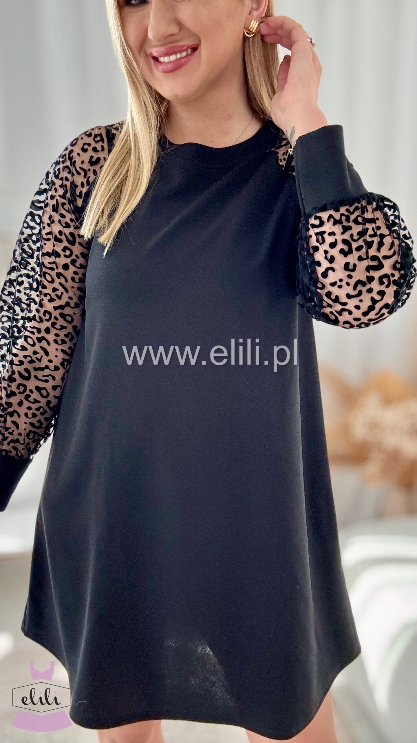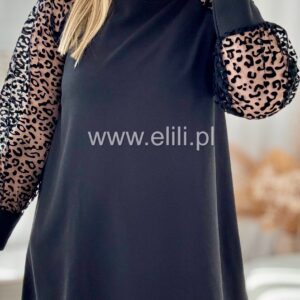 Trapezowy model z panterkowymi rękawami