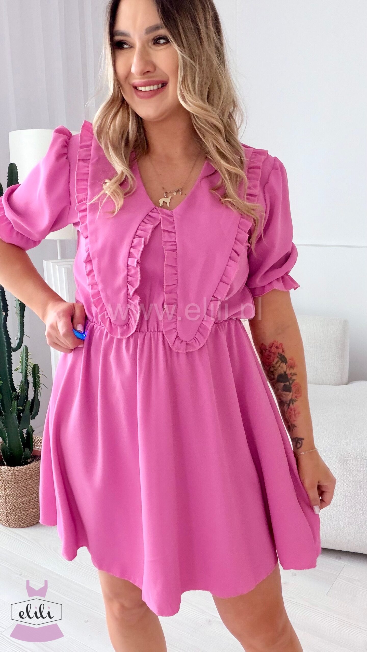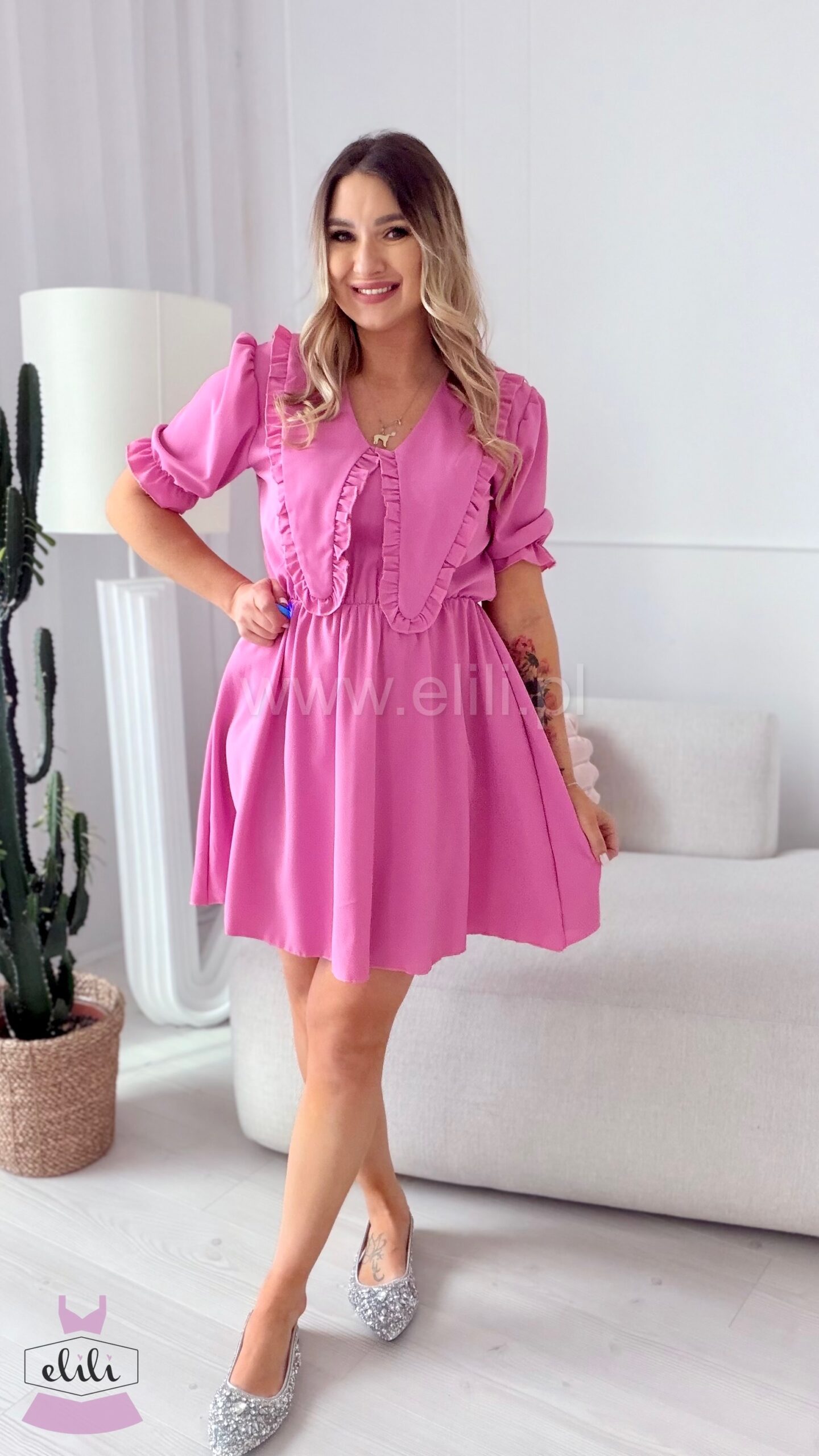 Valencia to stylowa sukienka, która łączy elegancję z nowoczesnym trendem. Wykonana z gładkiego, wysokiej jakości materiału, pięknie układa się na sylwetce i zapewnia komfort noszenia. Gumka w talii subtelnie podkreśla figurę, a najmodniejszy kołnierzyk dodaje całości szyku i charakteru. Idealna zarówno na co dzień, jak i na bardziej eleganckie wyjścia.