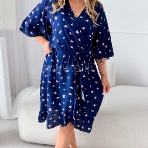 Verona to elegancka sukienka plus size inspirowana krojem szlafrokowym, która pięknie podkreśla kobiecą sylwetkę. Kopertowy dekolt subtelnie eksponuje biust, a elastyczna gumka w talii zapewnia wygodne dopasowanie i zaznacza proporcje. Szerokie rękawy dodają lekkości i swobodnego charakteru, a optymalna długość sprawia, że model jest uniwersalny i komfortowy w noszeniu. Idealna na co dzień, do pracy i na specjalne okazje.