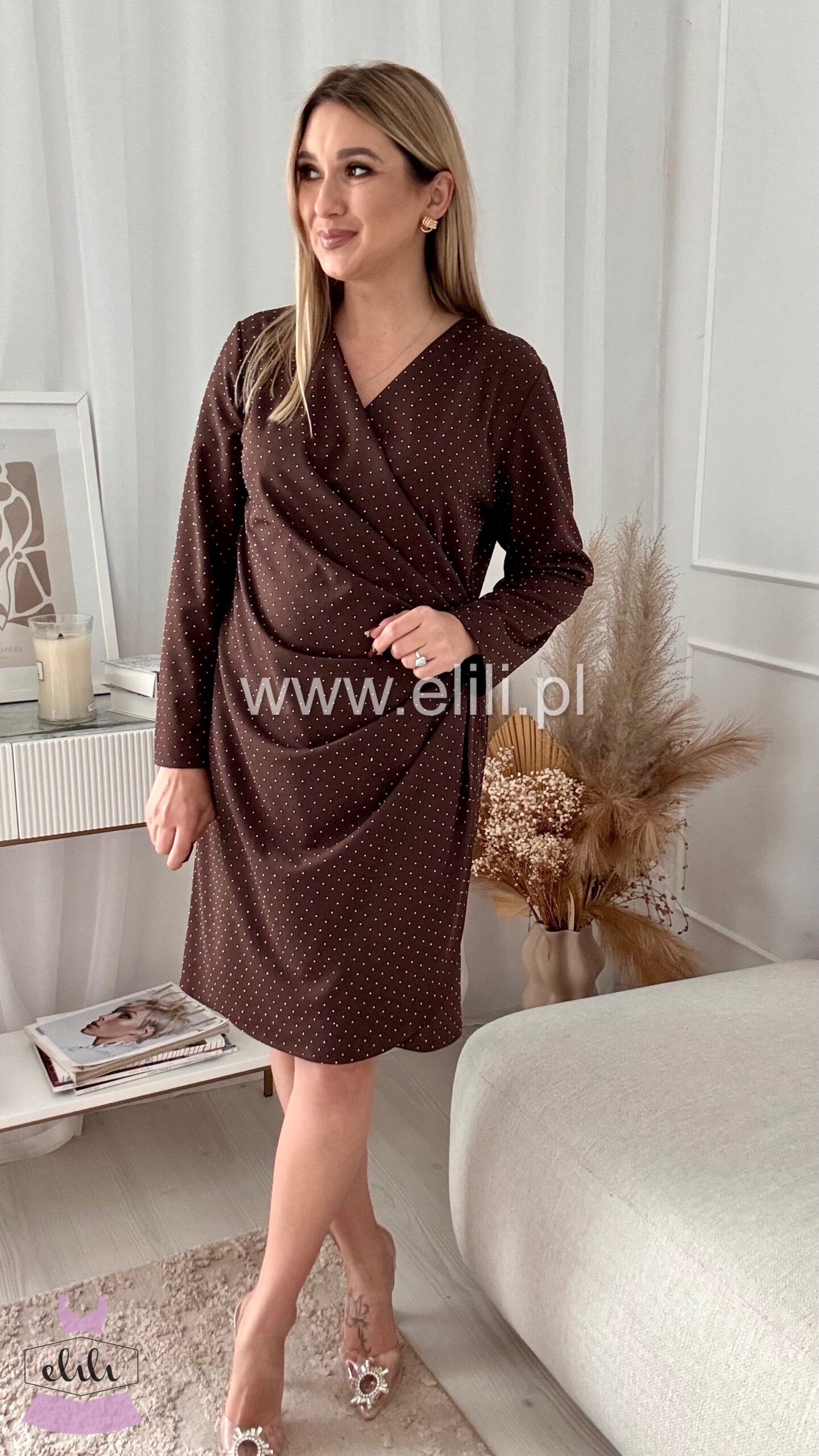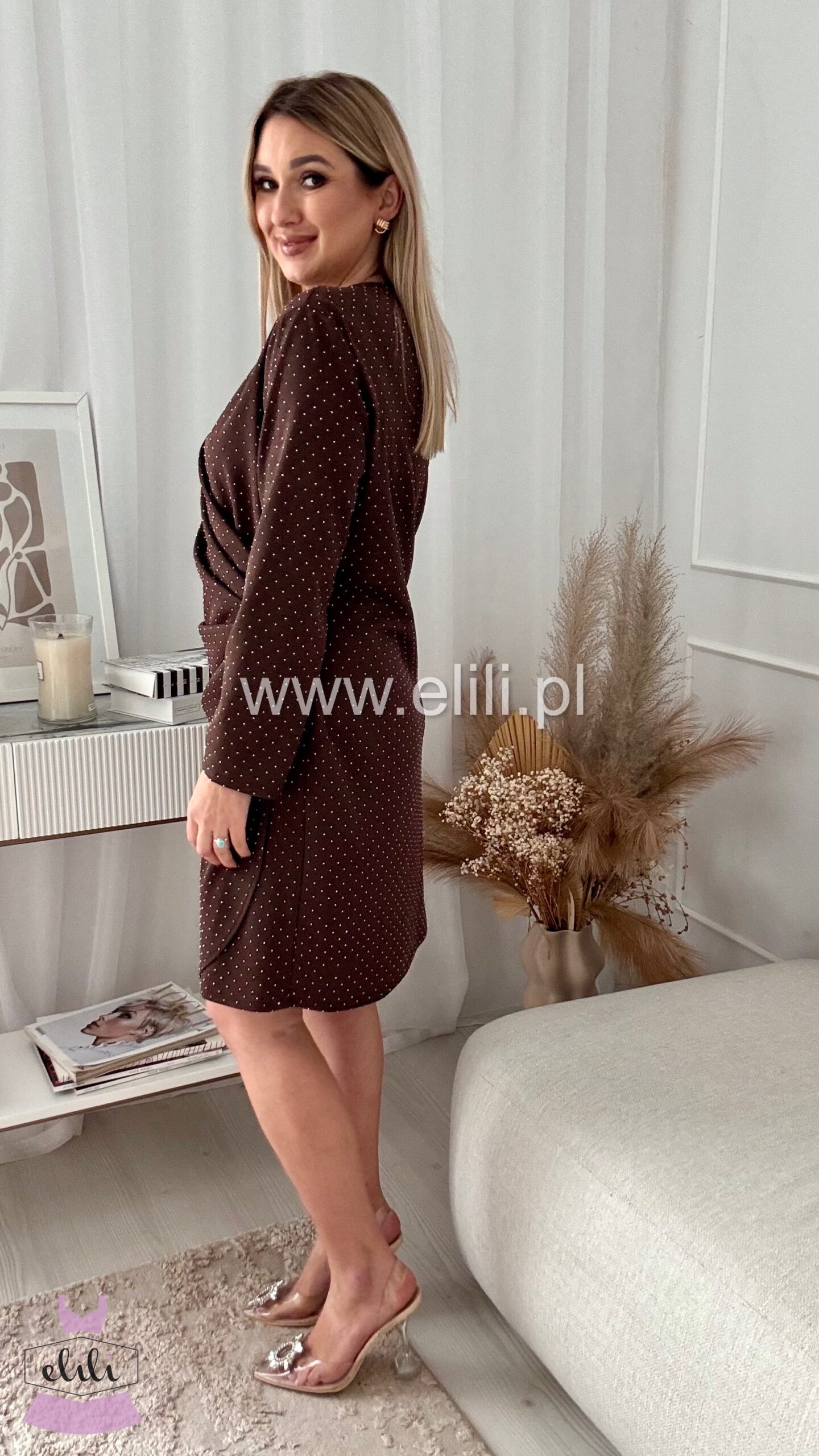Sukienka Wonder w cyrkonie plus size czekolada