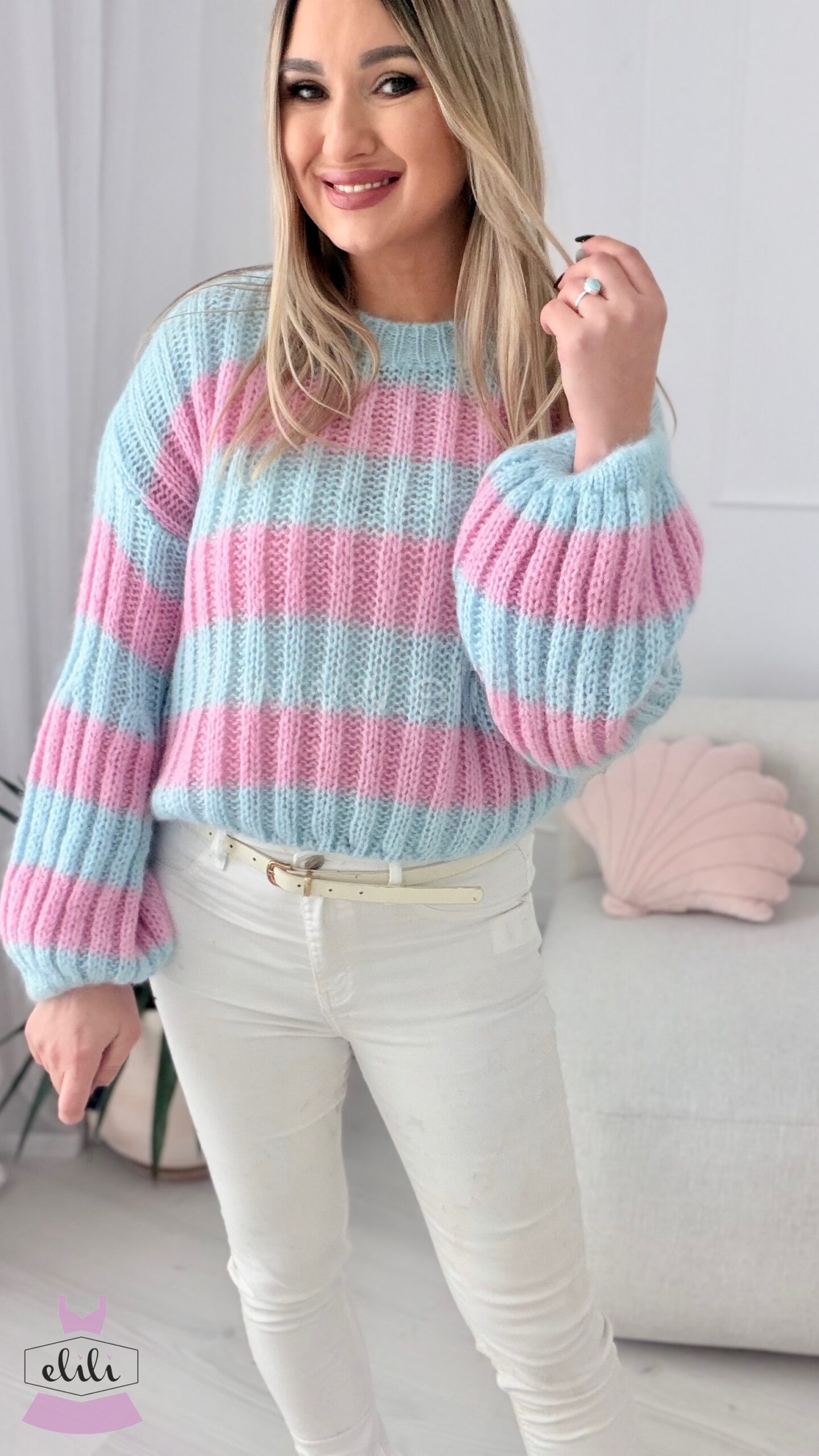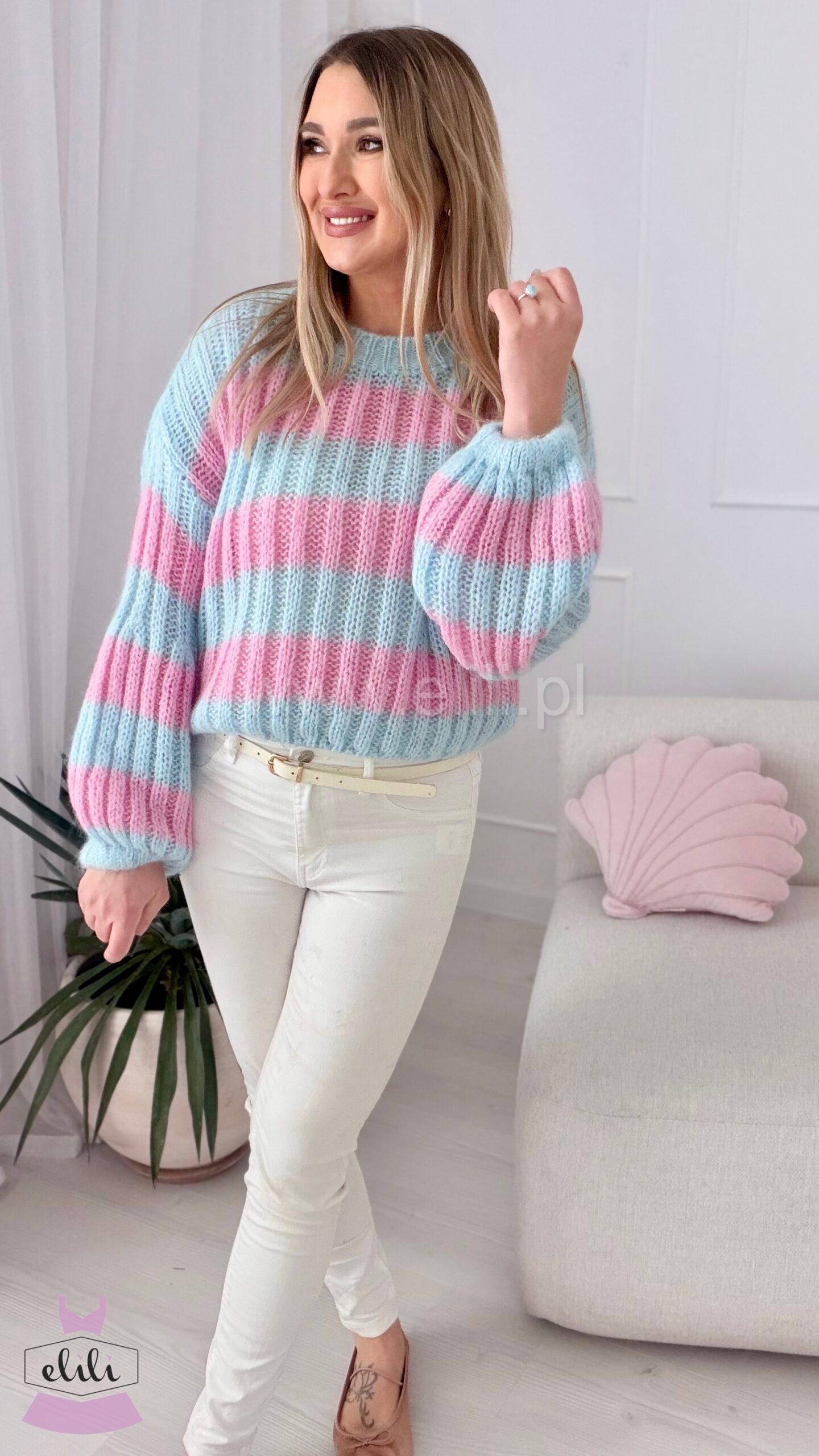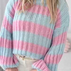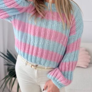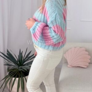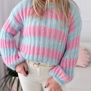 Miękki sweterek wykonany z wysokiej jakości, moherowej włóczki to propozycja, której nie może zabraknąć w żadnej jesienno-zimowej garderobie! Całość jest niezwykle przyjemna w dotyku, zapewni komfort i ciepło podczas zimniejszych dni. To model o skróconym fasonie z zaokrąglonym dekoltem. Uroku nadają mu rękawy, które w górnej części są dopasowane, a rozszerzają się ku dołowi. Ta opcja zaprezentuje się naprawdę modnie w stylizacjach w codziennej odsłonie.