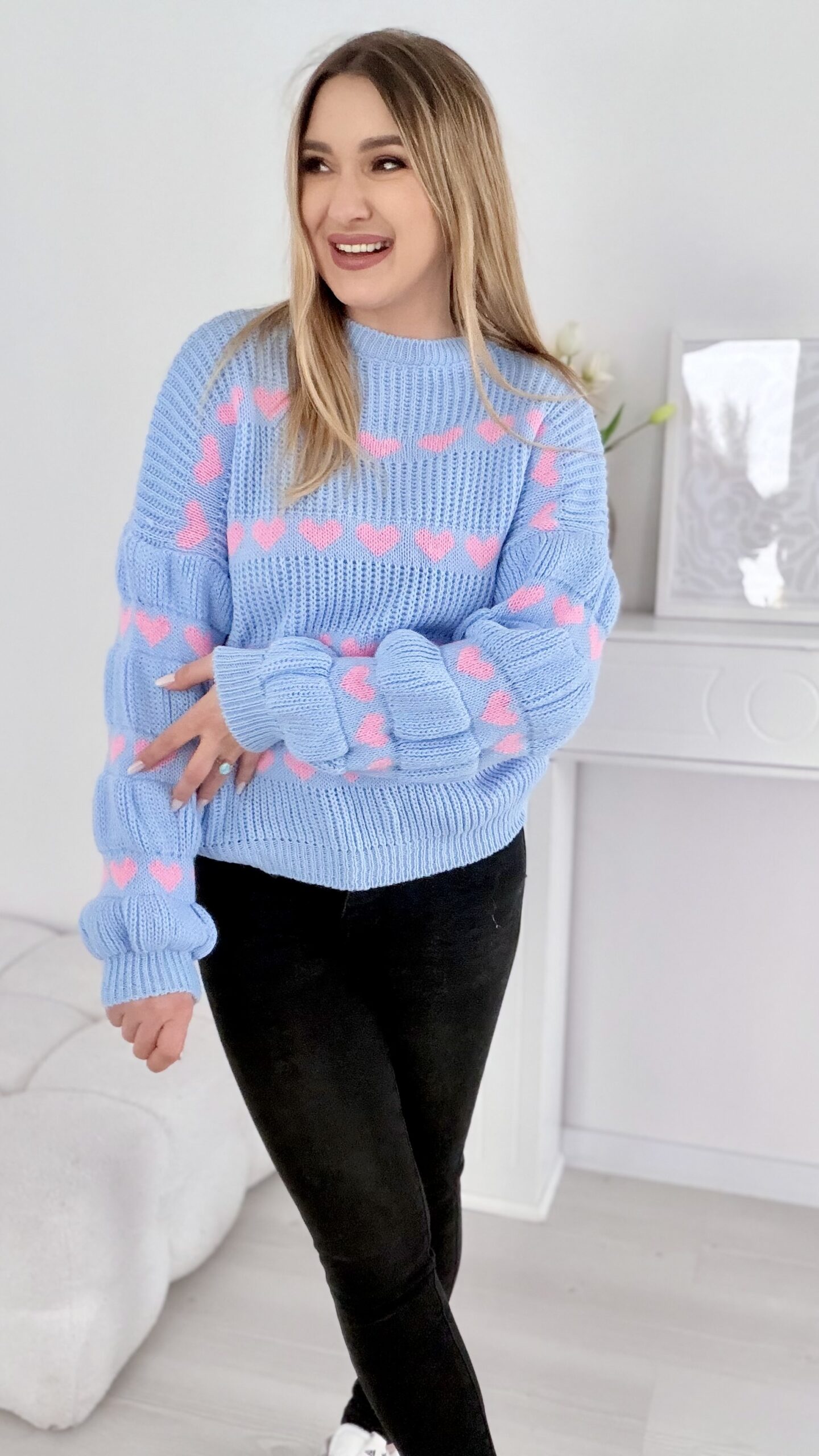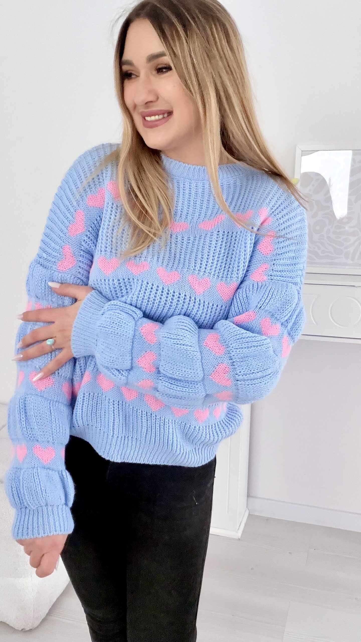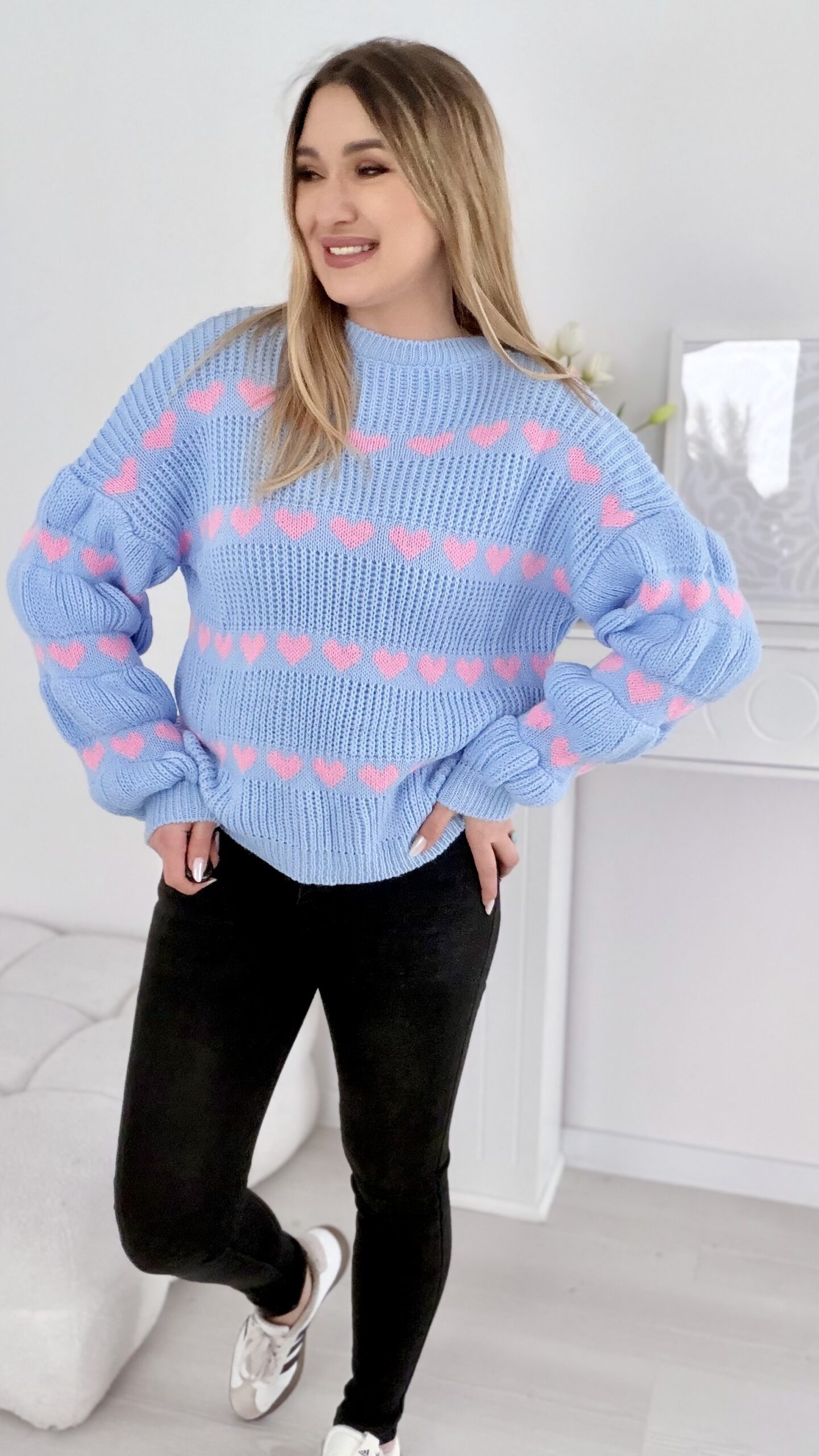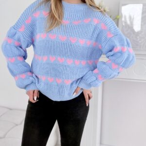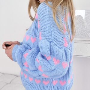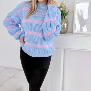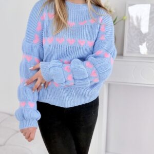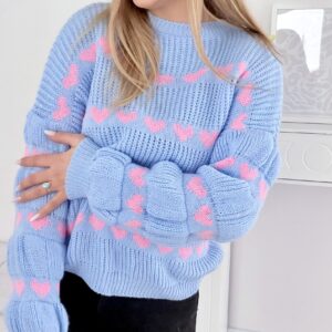 Sweter w serduszka baby blue