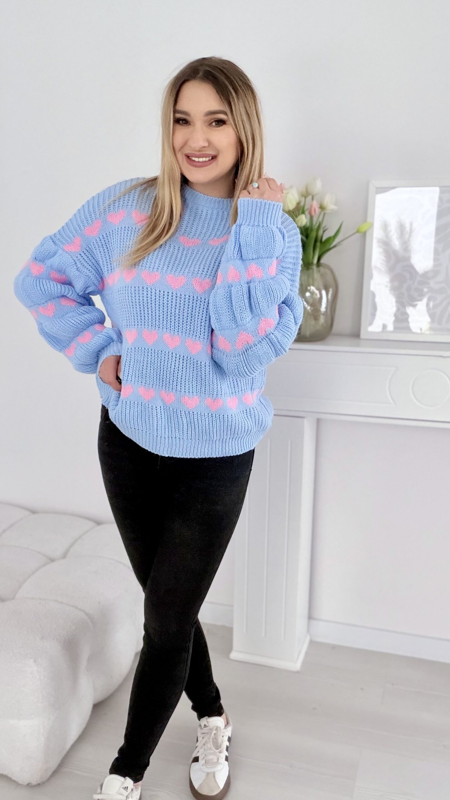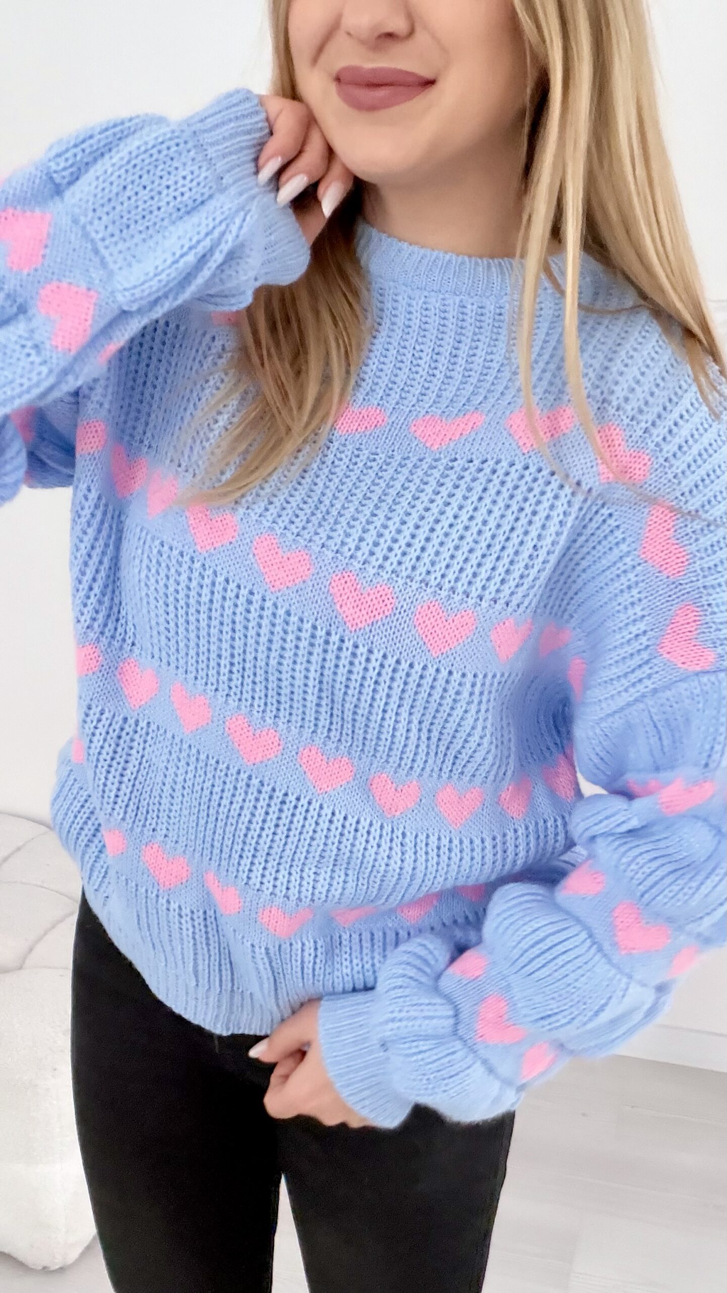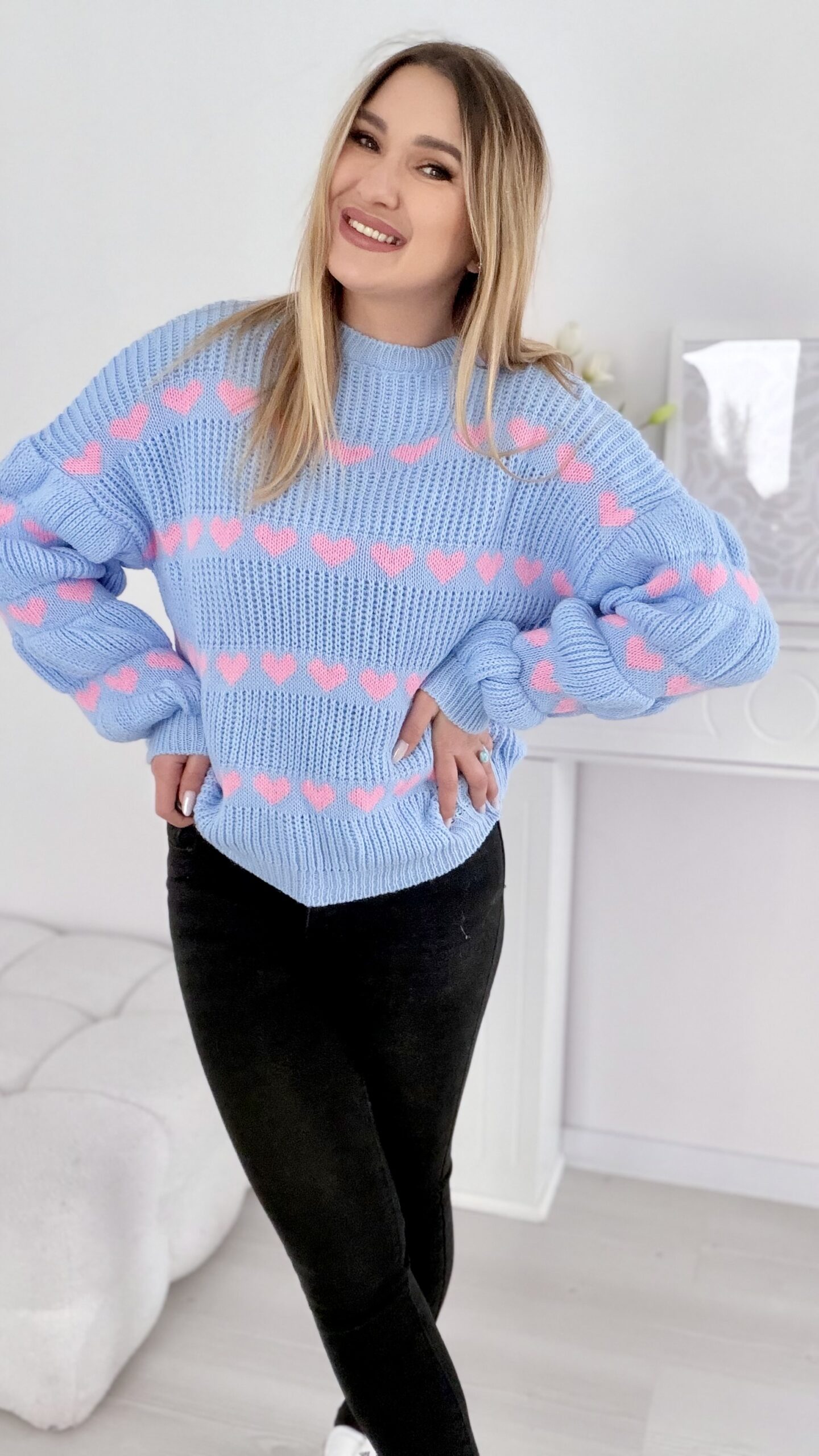 Sweter w serduszka baby blue