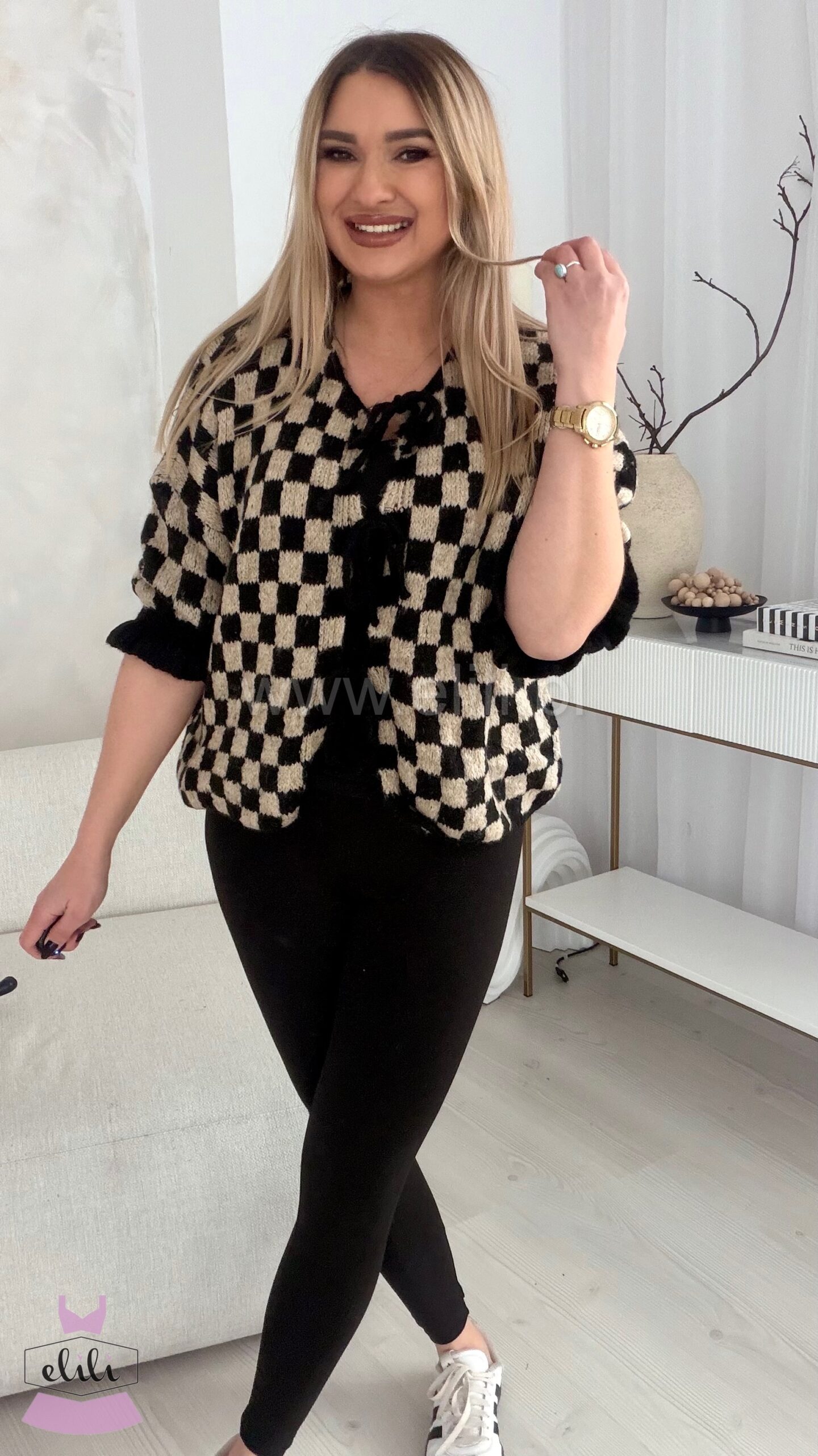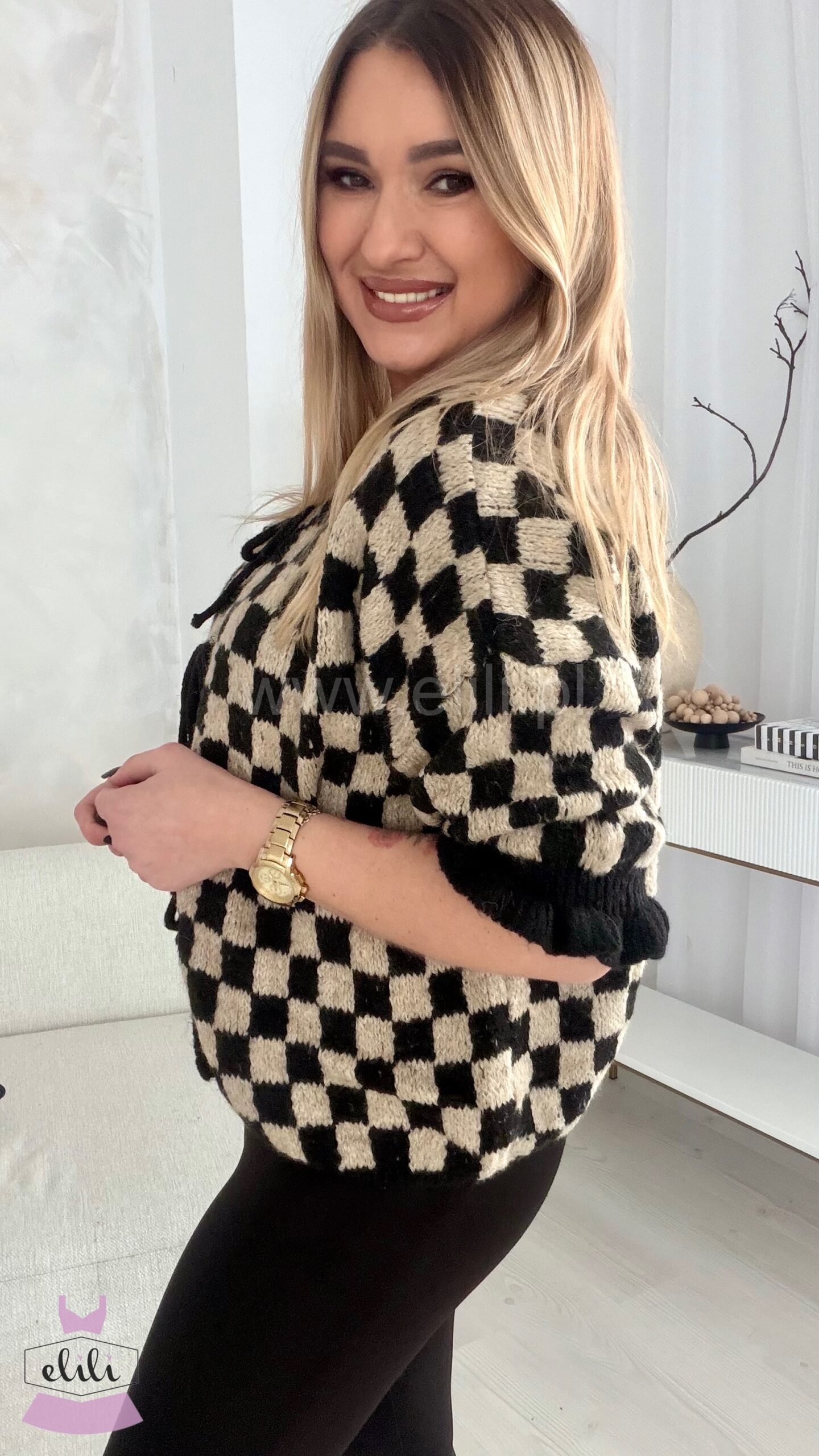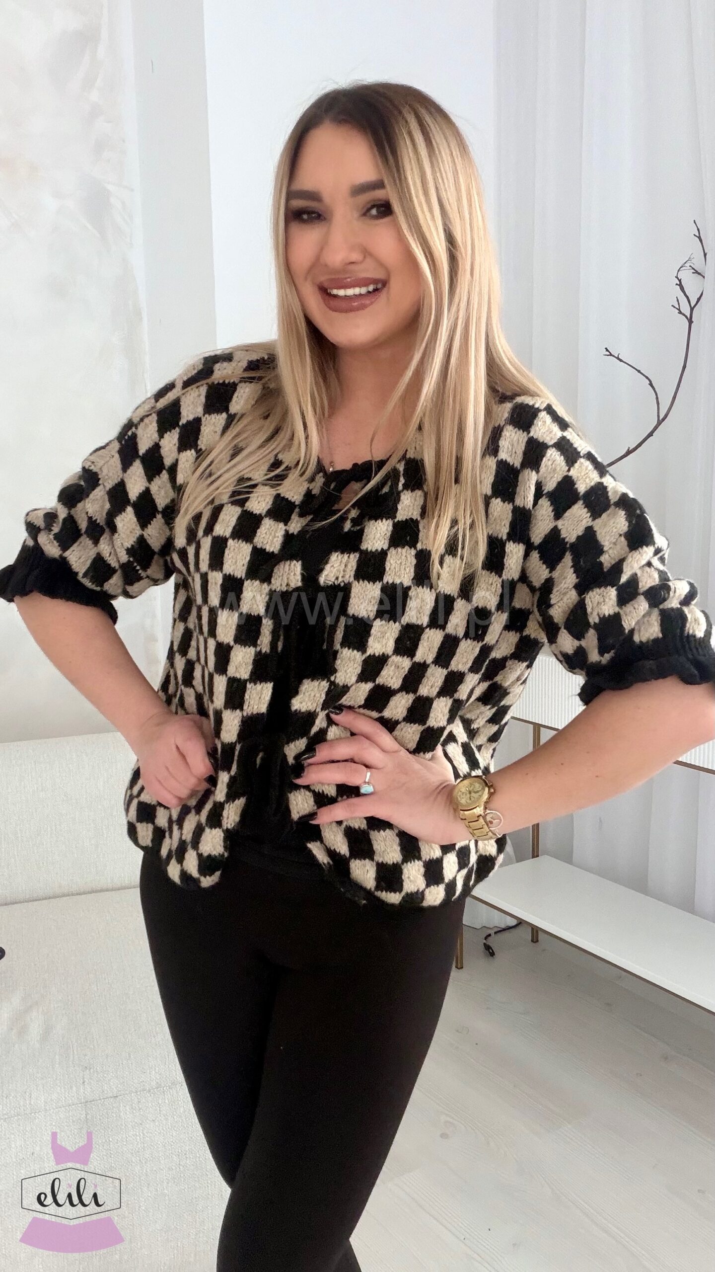 Sweterek z rękawem 3/4 i falbankami na mankietach który mozesz nosić na dwa sposoby